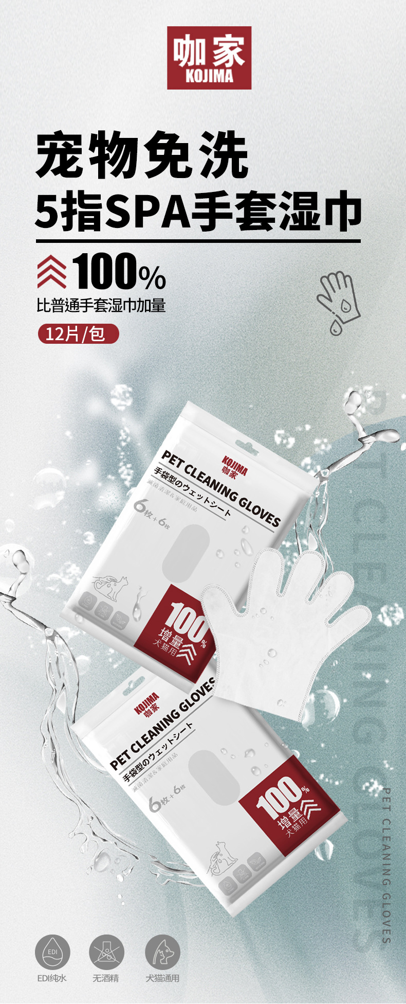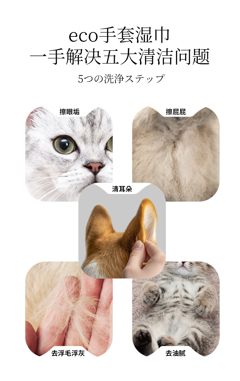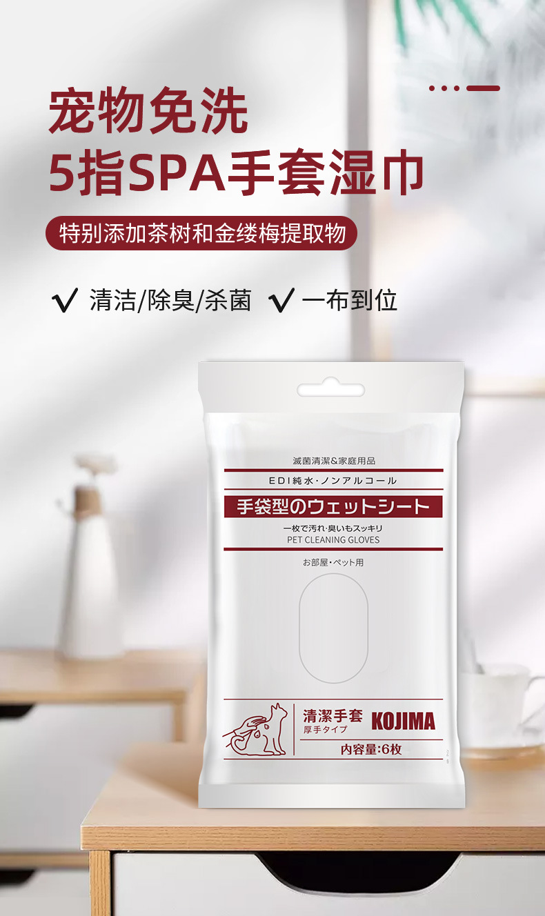 일본 KOJIMA 워시프리 장갑 닦아 애완 동물 탈취제 청소 개와 고양이 목욕 청소 드라이 클리닝 애완 동물 용품스토어 가기