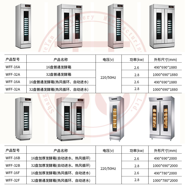 • 16 판 발효 탱크 (뜨거운 공기 순환)