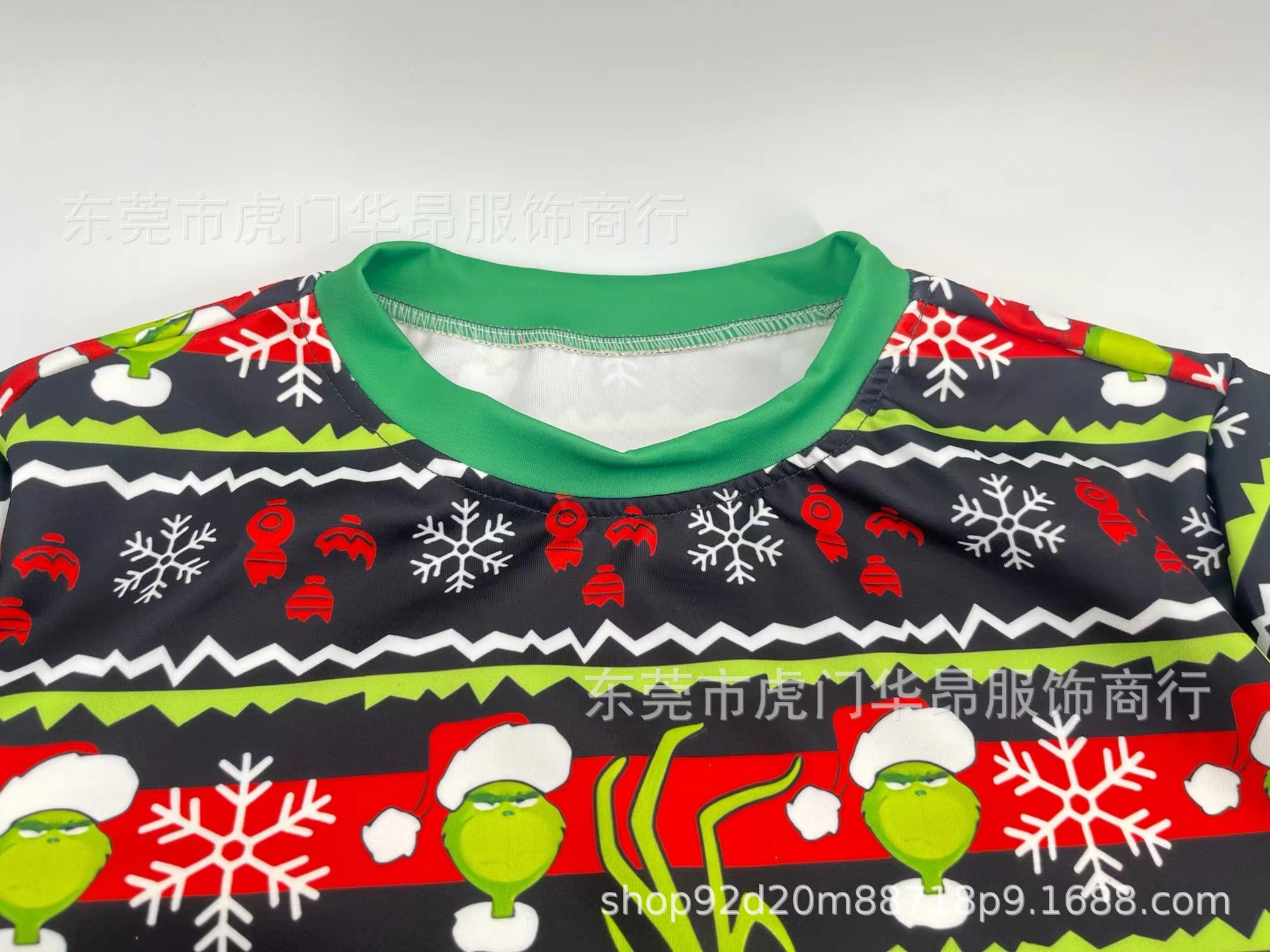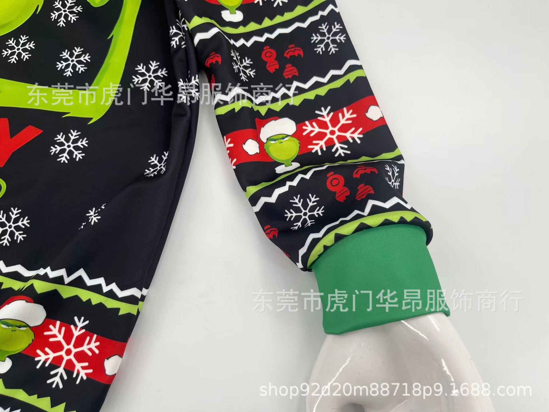 유럽과 미국의 크리스마스 괴짜 그린치 그린 헤어 괴짜 크루 넥 스웨터 남성용 3D 디지털 인쇄 캐주얼 긴 소매베이스 여성