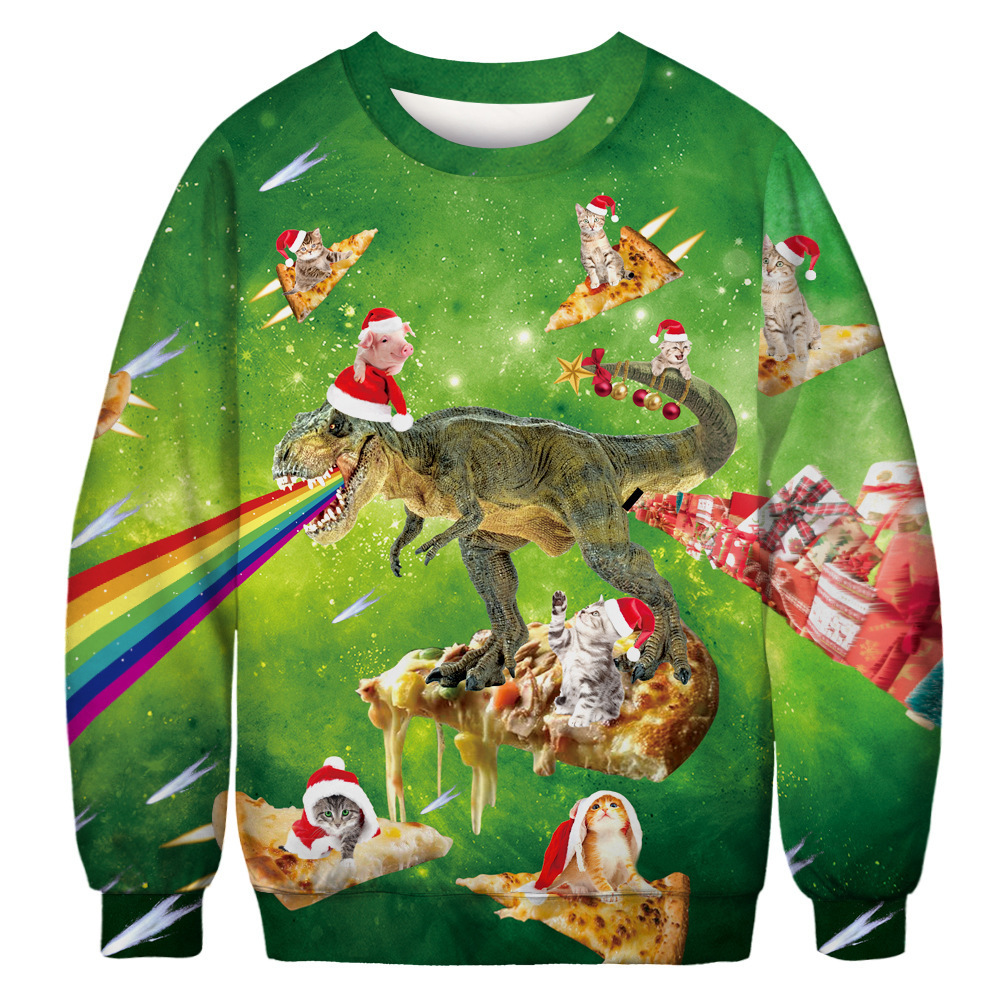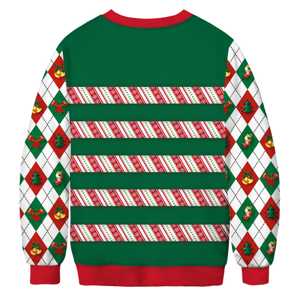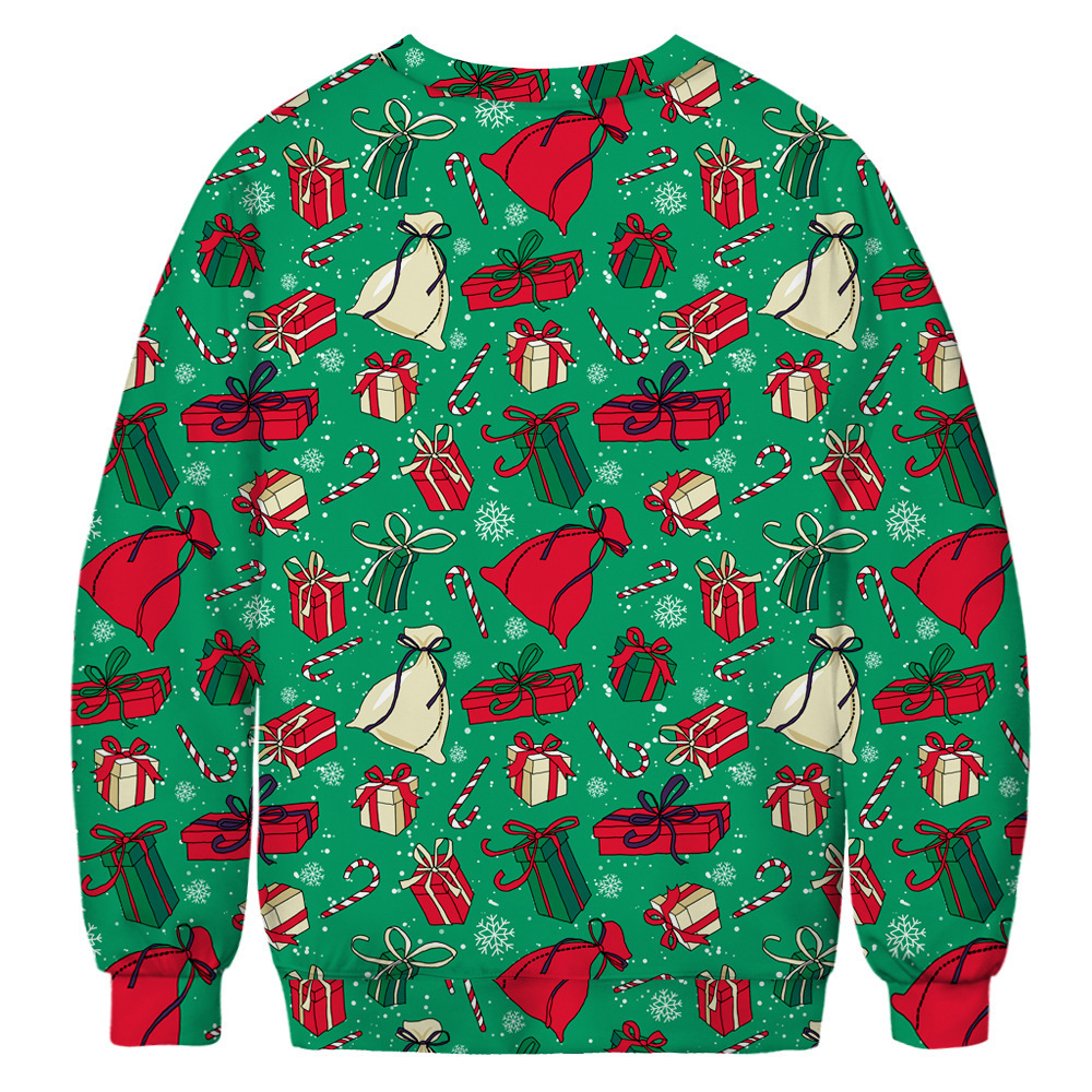 유럽과 미국의 크리스마스 괴짜 그린치 그린 헤어 괴짜 크루 넥 스웨터 남성용 3D 디지털 인쇄 캐주얼 긴 소매베이스 여성스토어 가기