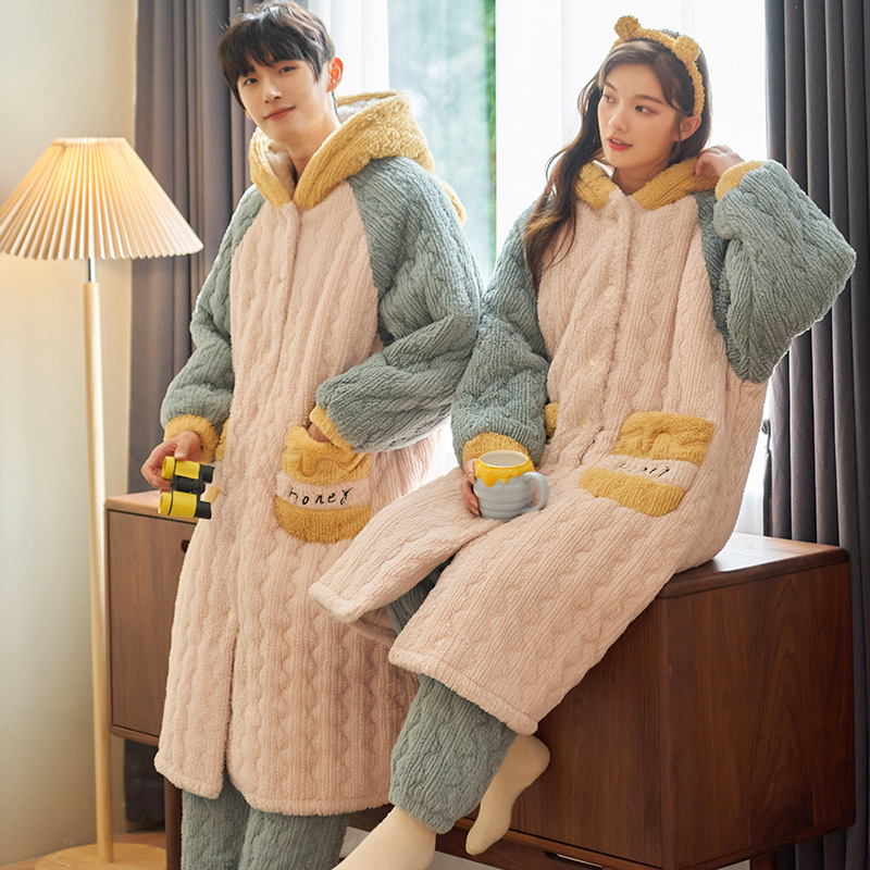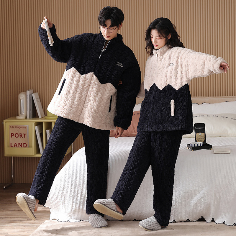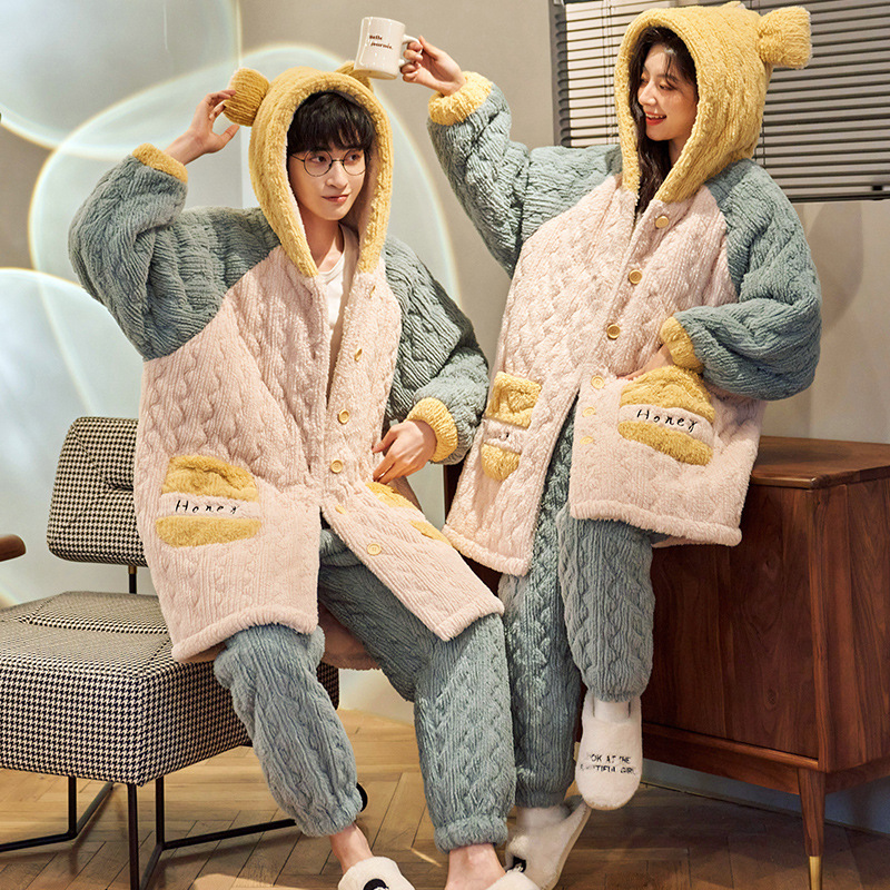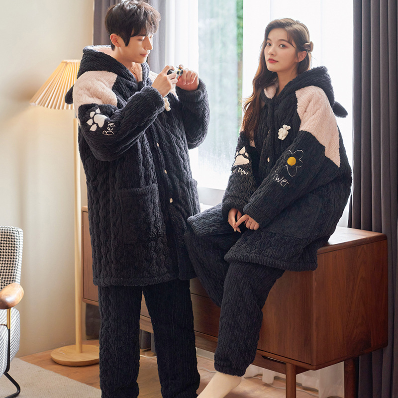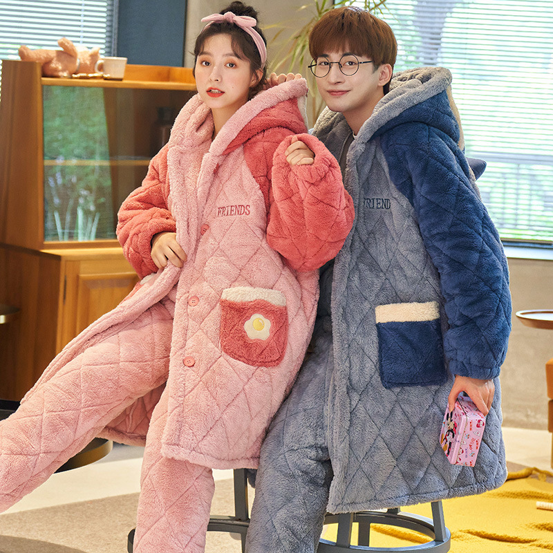 커플 잠옷 여자의 가을과 겨울 3 층 면 산호 양털 두꺼운 기모 겨울 따뜻한 플란넬 홈 의류 남성용스토어 가기