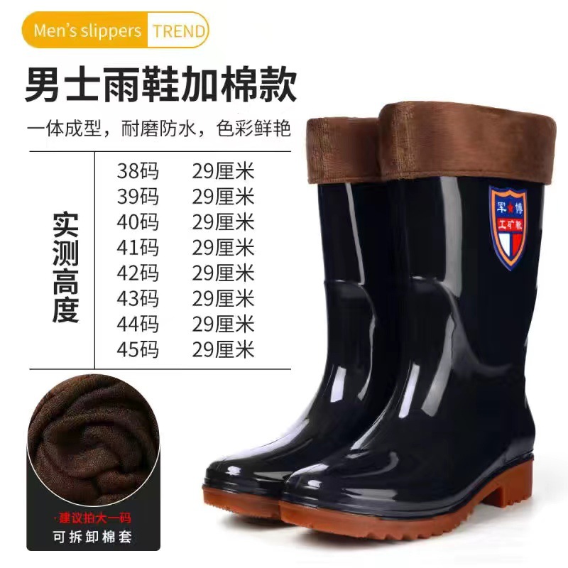 장화 남성용 논슬립 워터 슈즈 패딩 하이 배럴 면산 및 알칼리 방지 장화 공사 현장 워터 부츠 고무 신발 도매스토어 가기