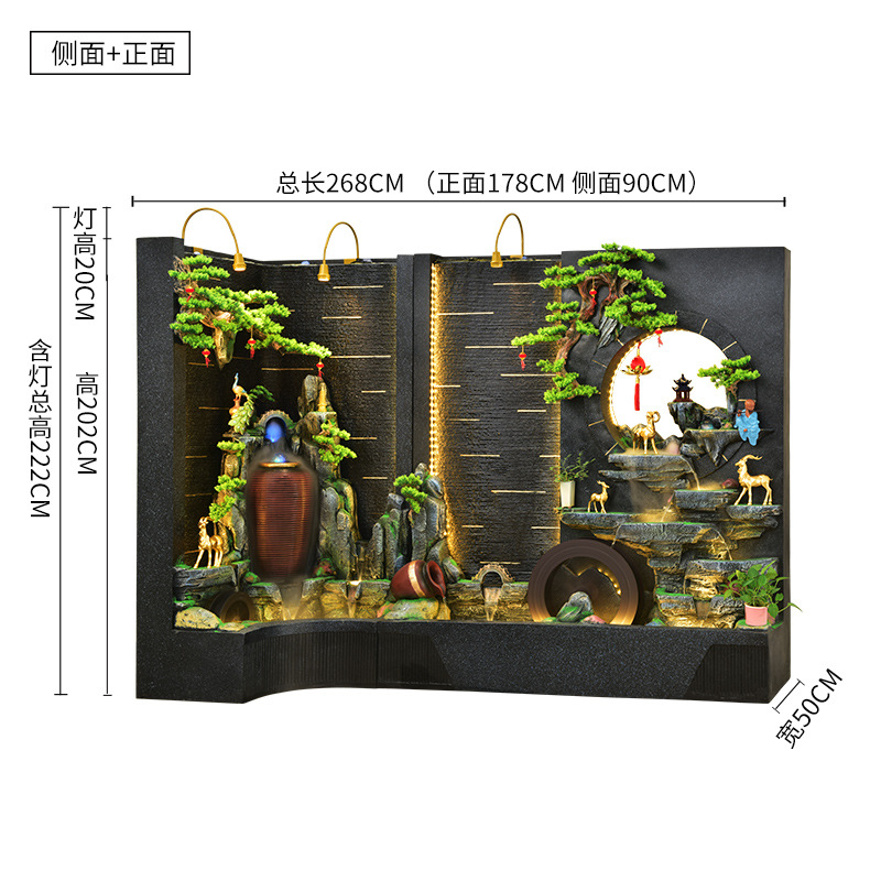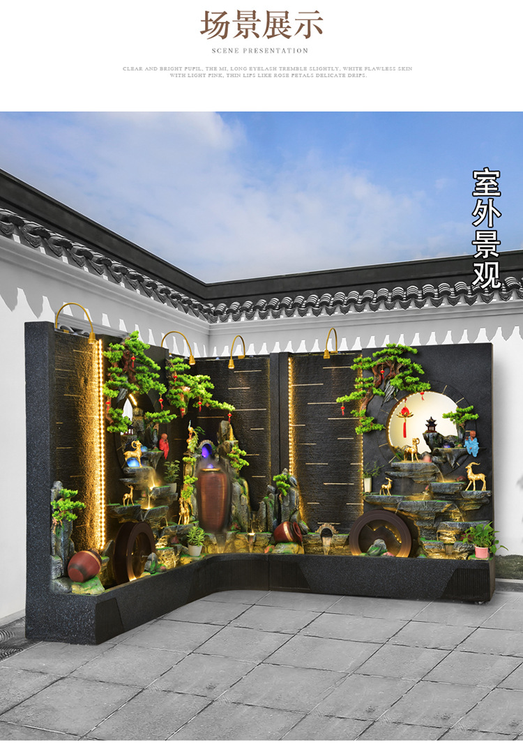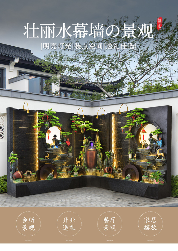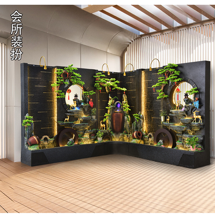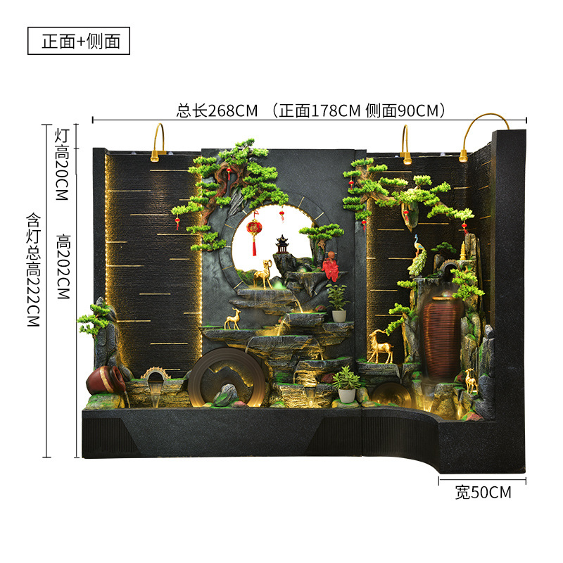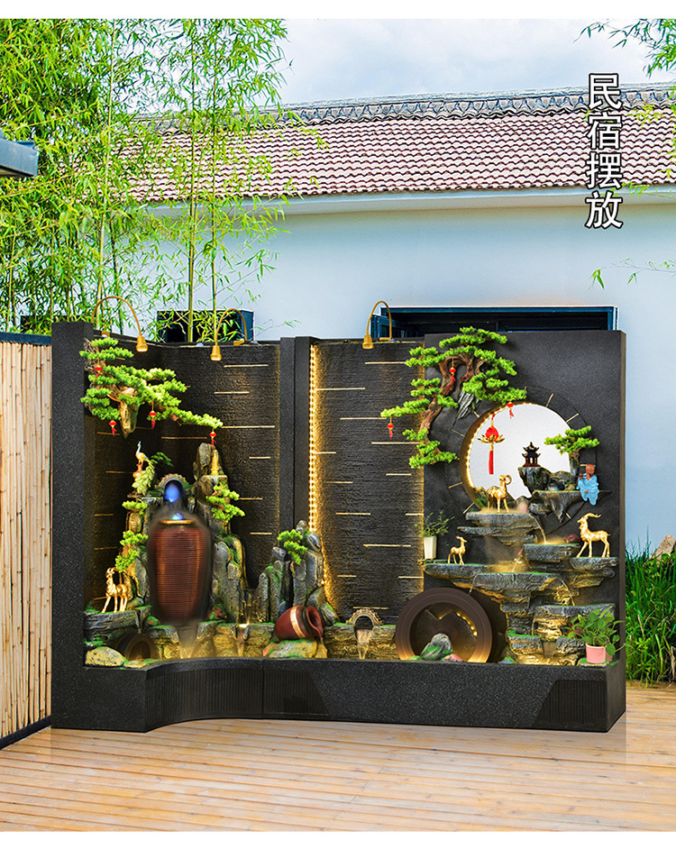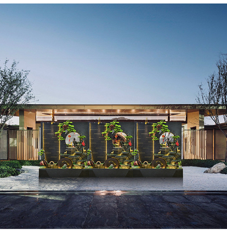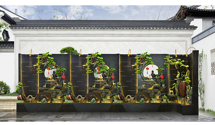 순환 물 장식품 풍수 휠 파티션 중공 스크린 물 커튼 벽 야외 정원 안뜰 레이아웃 물고기 연못 풍경