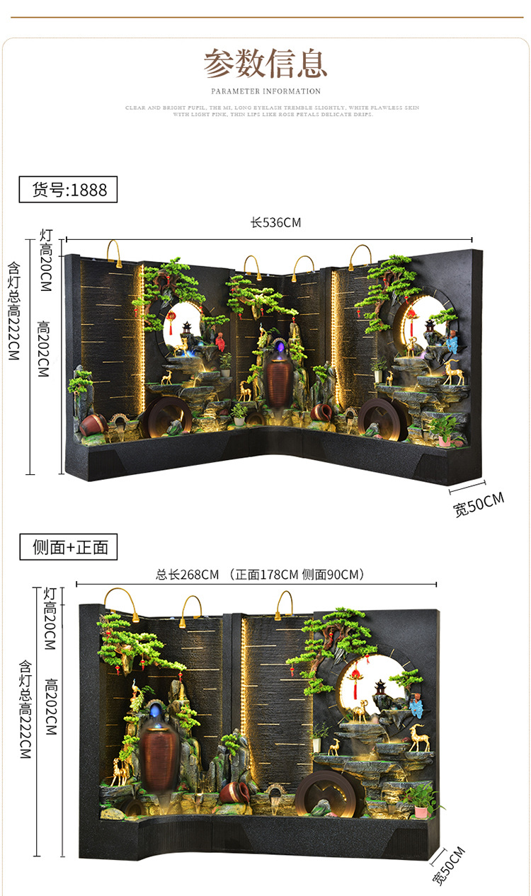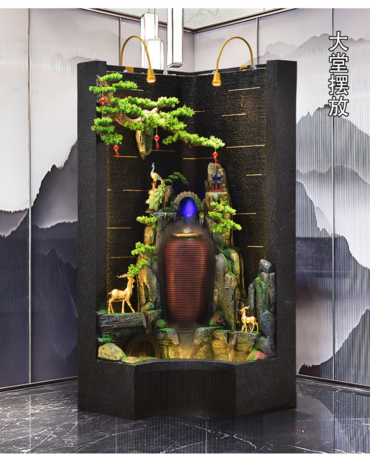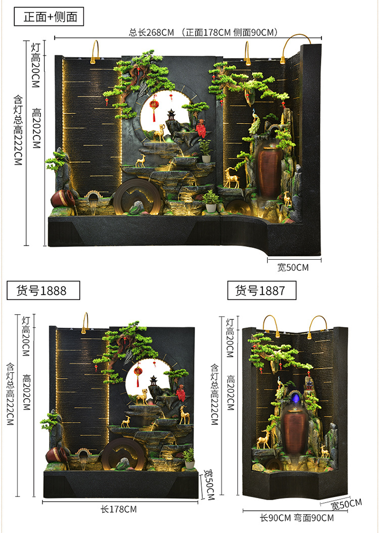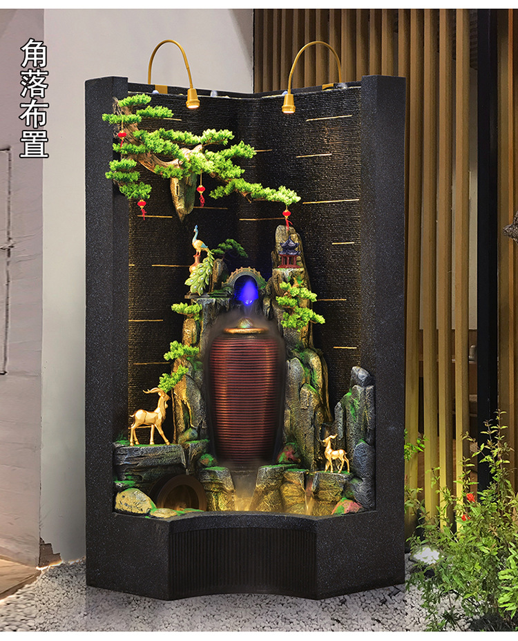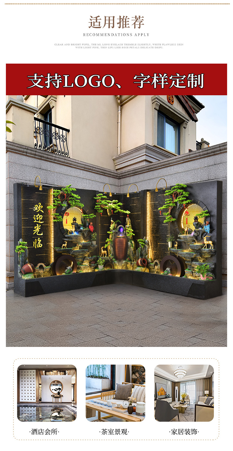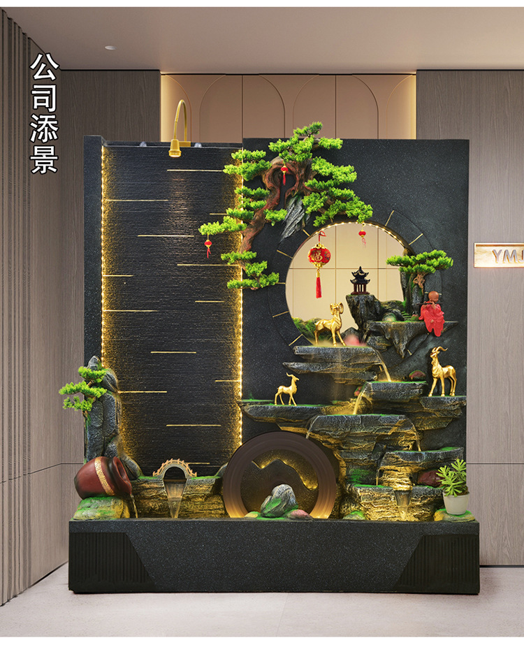 순환 물 장식품 풍수 휠 파티션 중공 스크린 물 커튼 벽 야외 정원 안뜰 레이아웃 물고기 연못 풍경