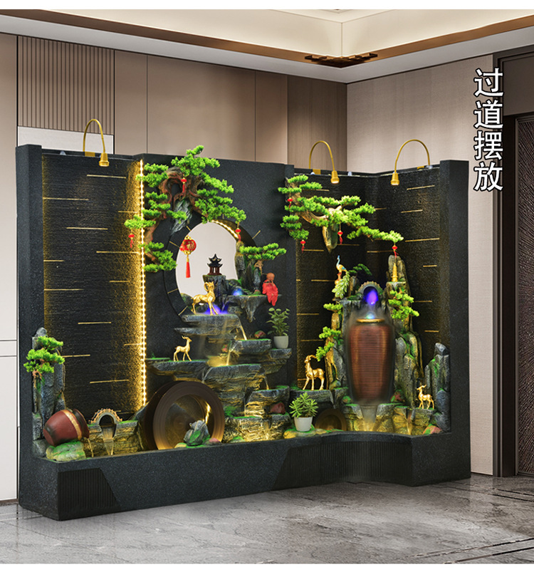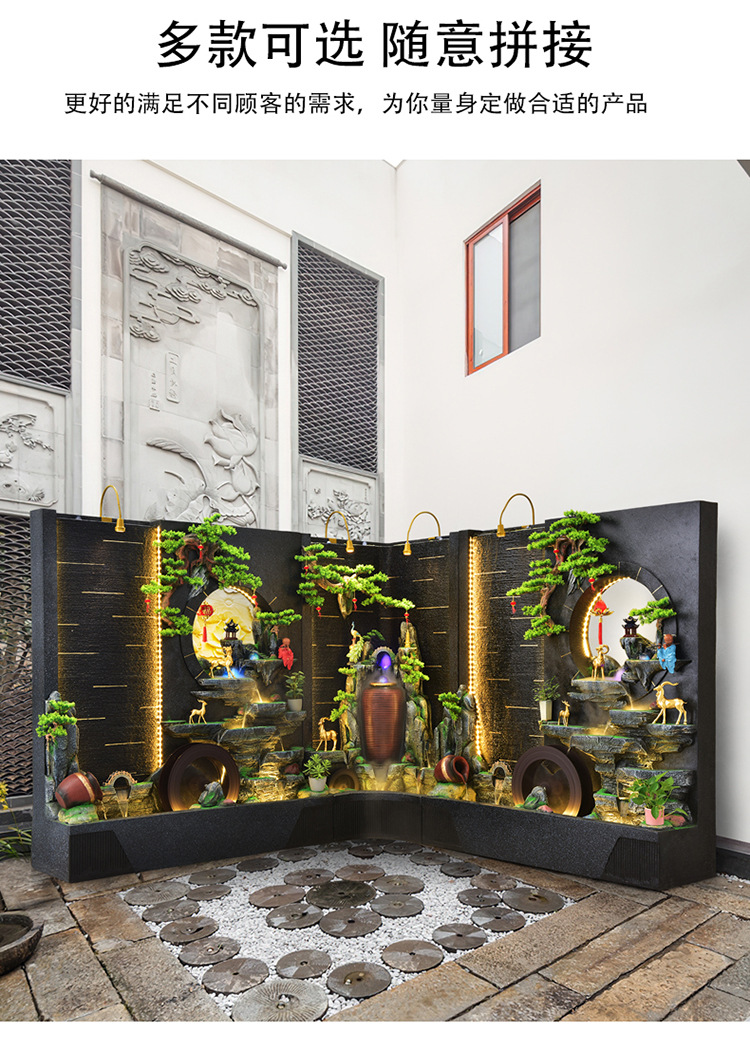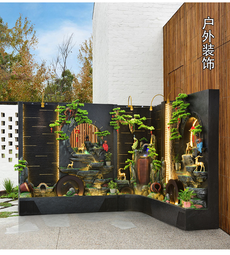 순환 물 장식품 풍수 휠 파티션 중공 스크린 물 커튼 벽 야외 정원 안뜰 레이아웃 물고기 연못 풍경스토어 가기