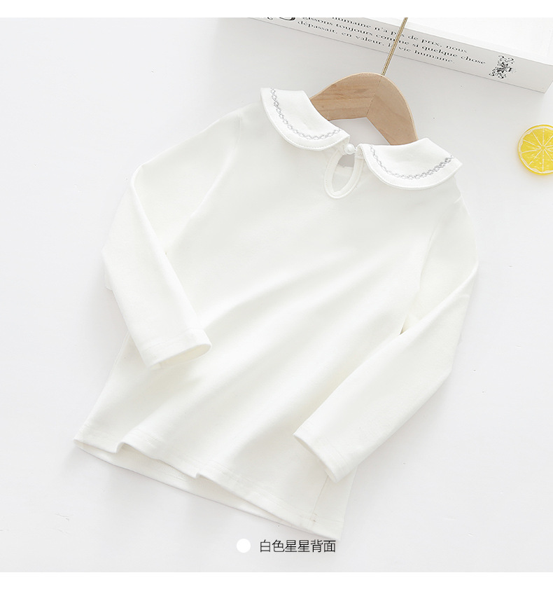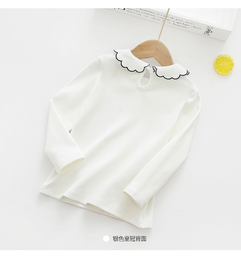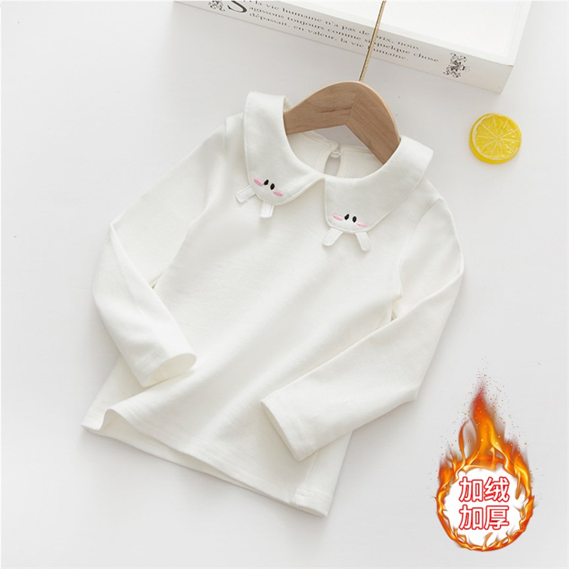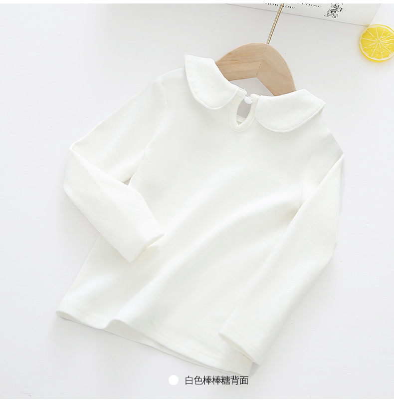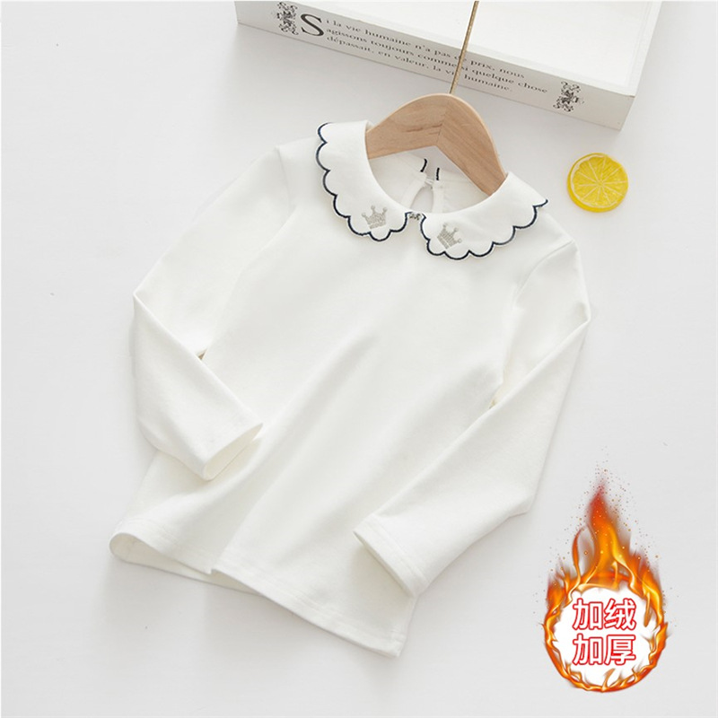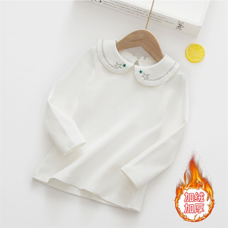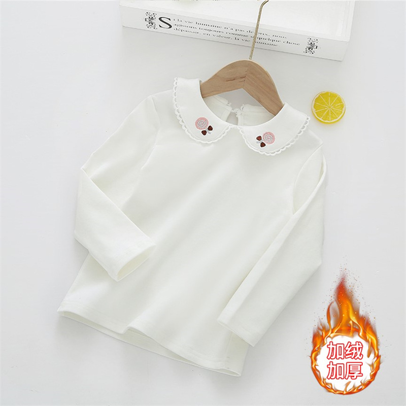 걸스 베이스 셔츠 면 가을과 겨울 흰색 옷깃 기모 두꺼운 아기 인형 셔츠 어린이 베이스 티셔츠 가을스토어 가기