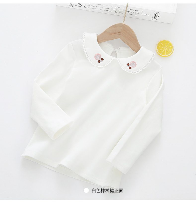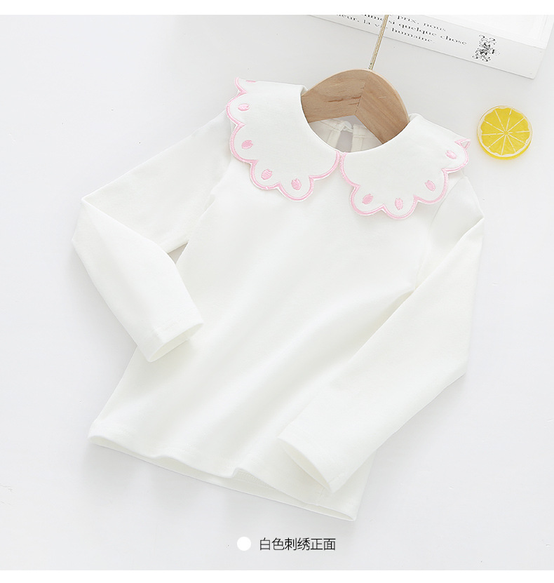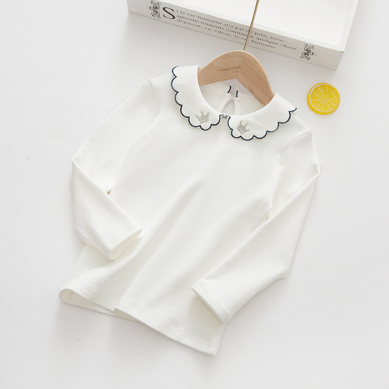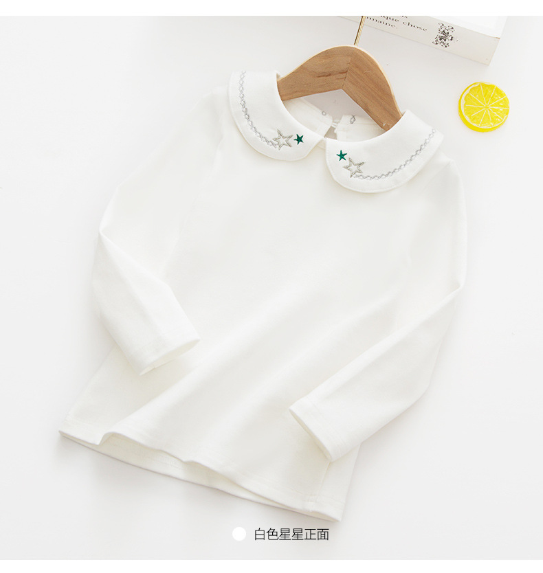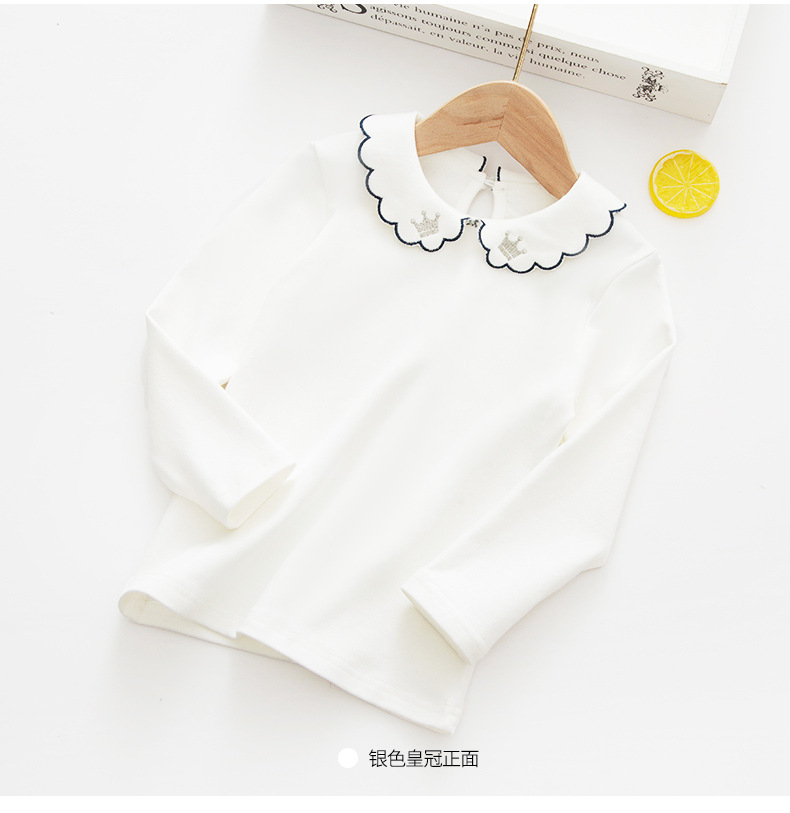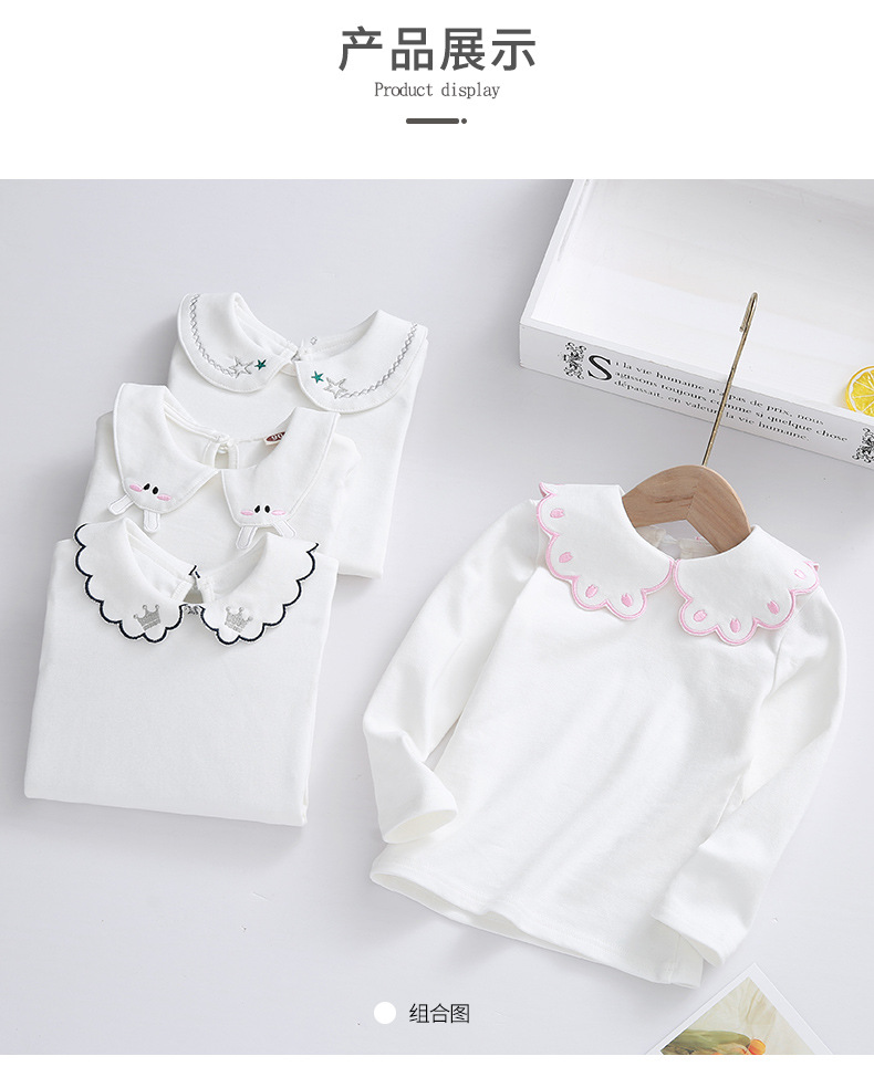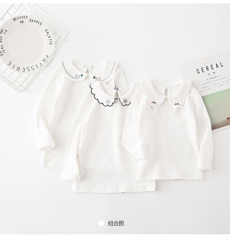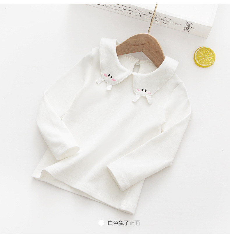 걸스 베이스 셔츠 면 가을과 겨울 흰색 옷깃 기모 두꺼운 아기 인형 셔츠 어린이 베이스 티셔츠 가을스토어 가기