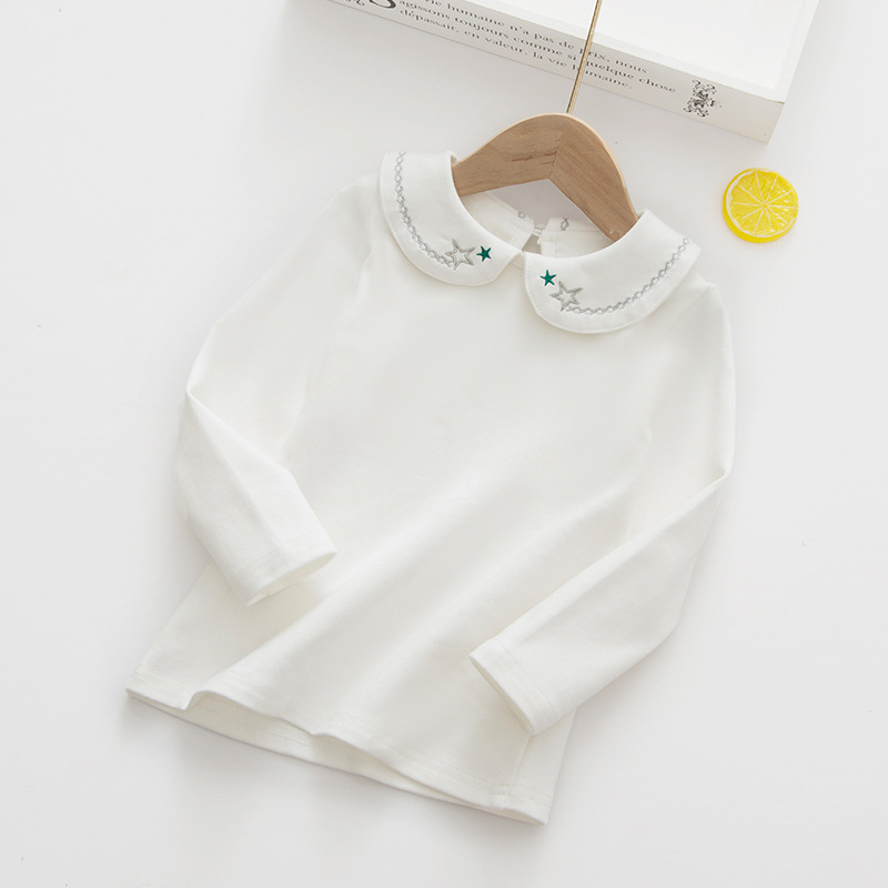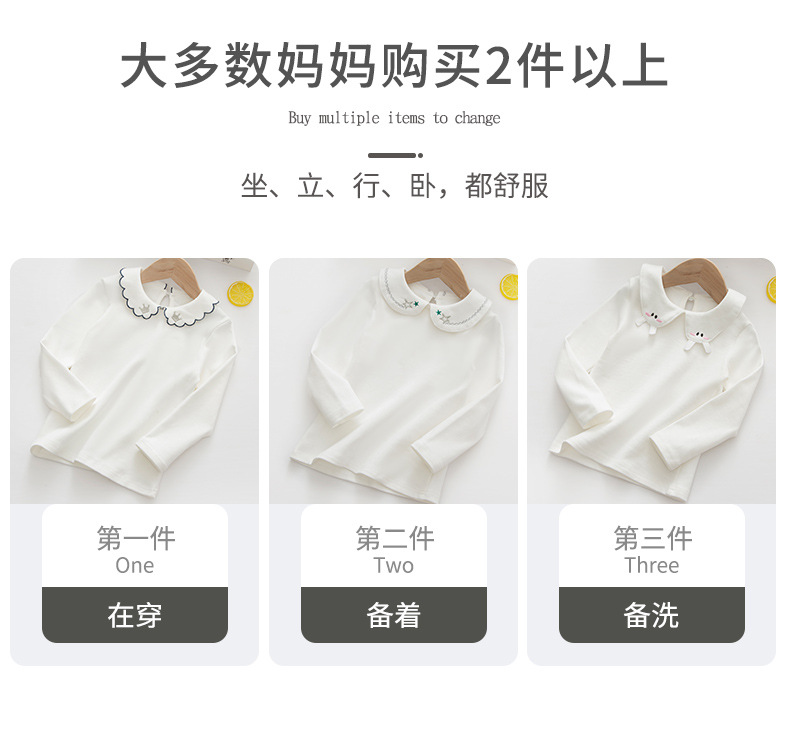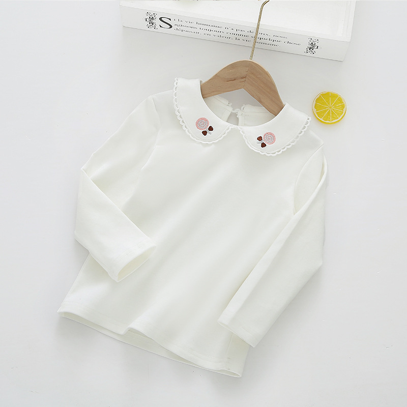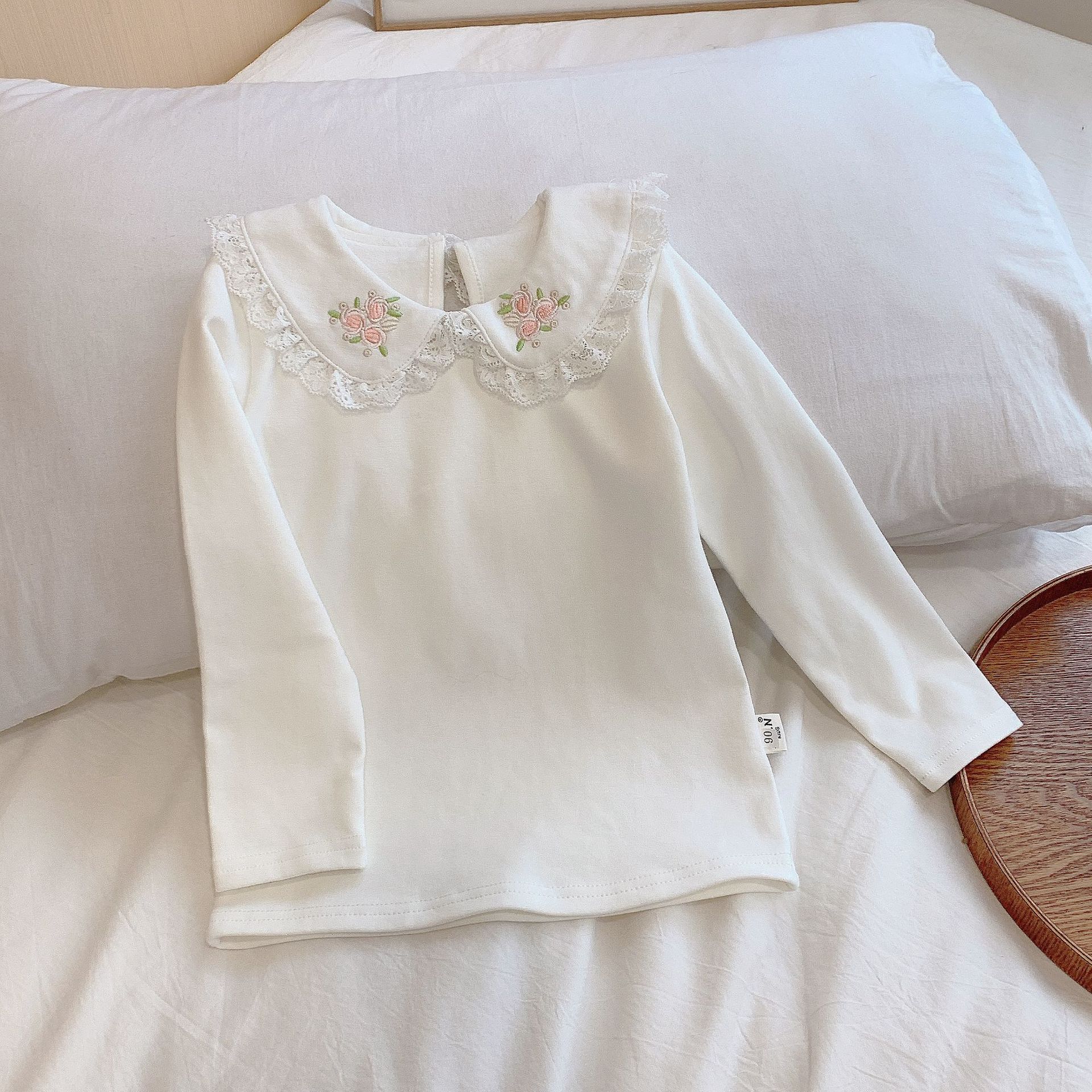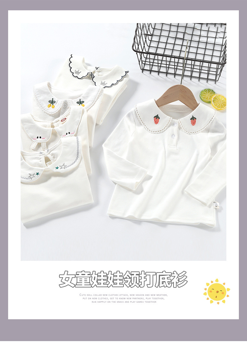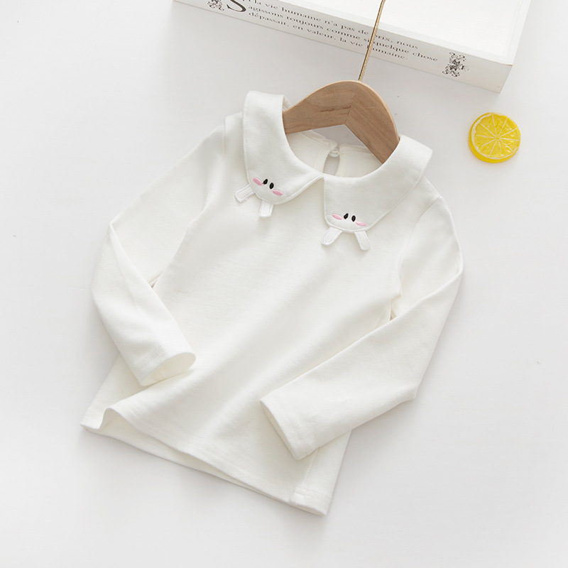 걸스 베이스 셔츠 면 가을과 겨울 흰색 옷깃 기모 두꺼운 아기 인형 셔츠 어린이 베이스 티셔츠 가을스토어 가기