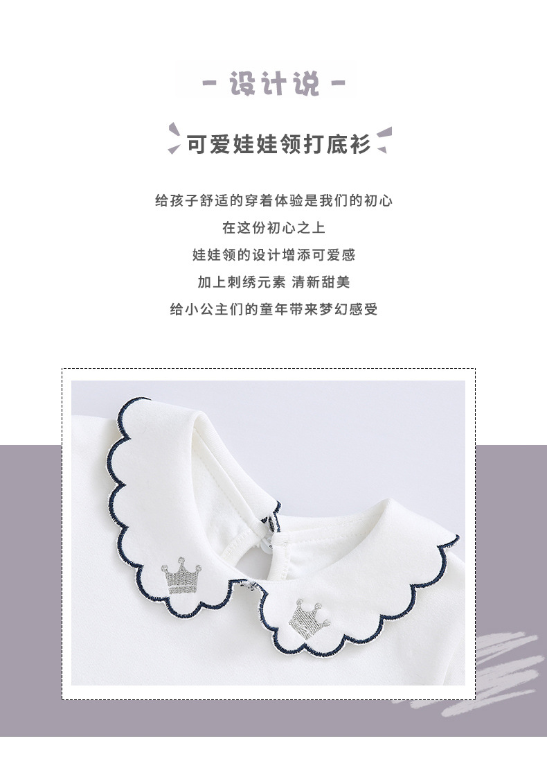 걸스 베이스 셔츠 면 가을과 겨울 흰색 옷깃 기모 두꺼운 아기 인형 셔츠 어린이 베이스 티셔츠 가을