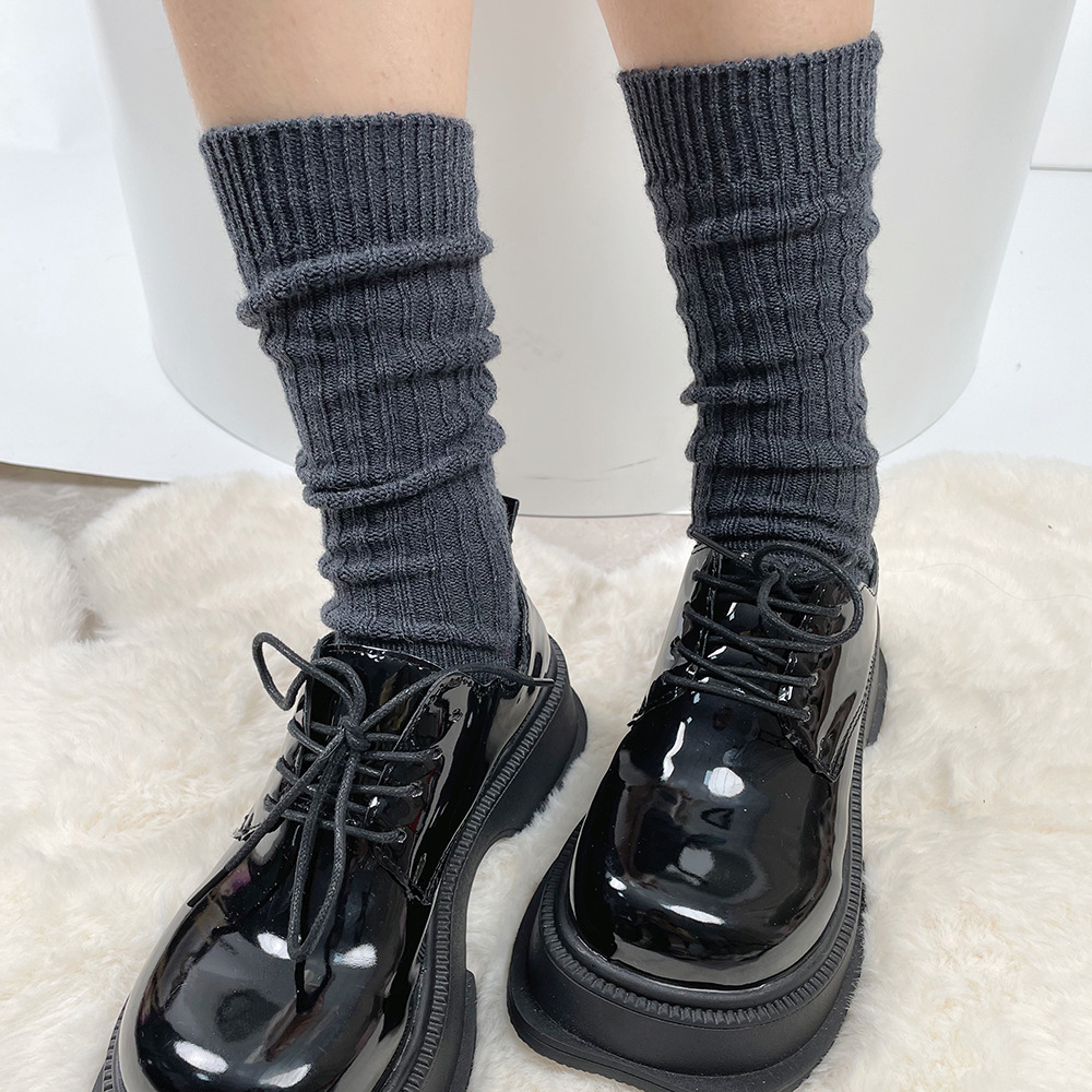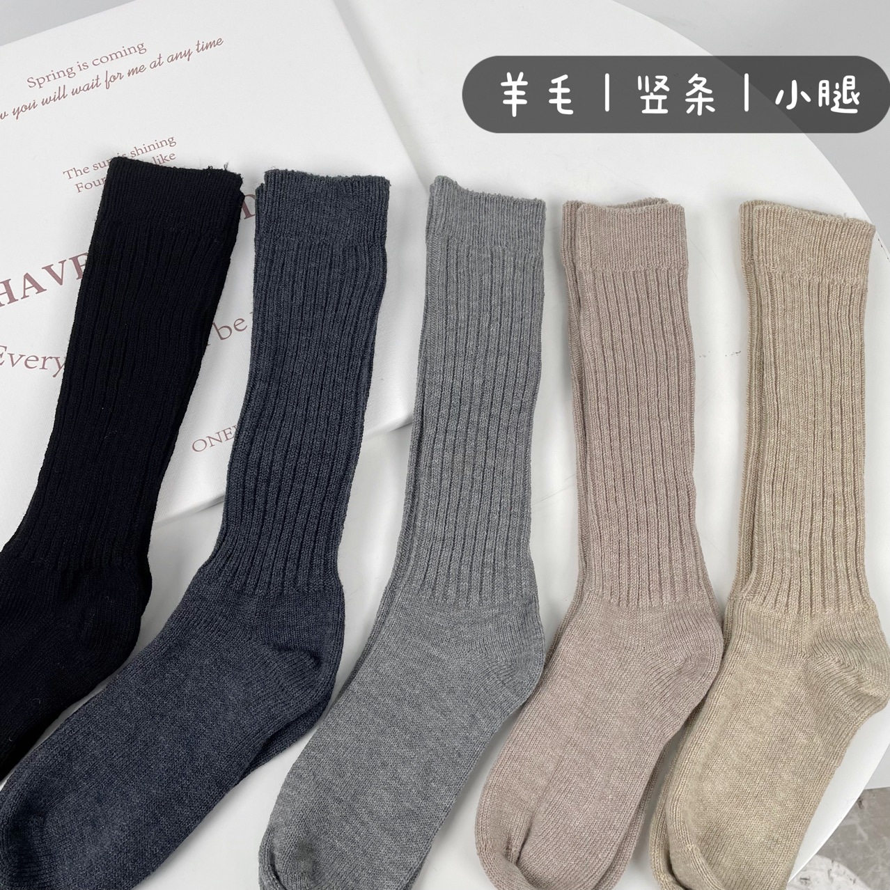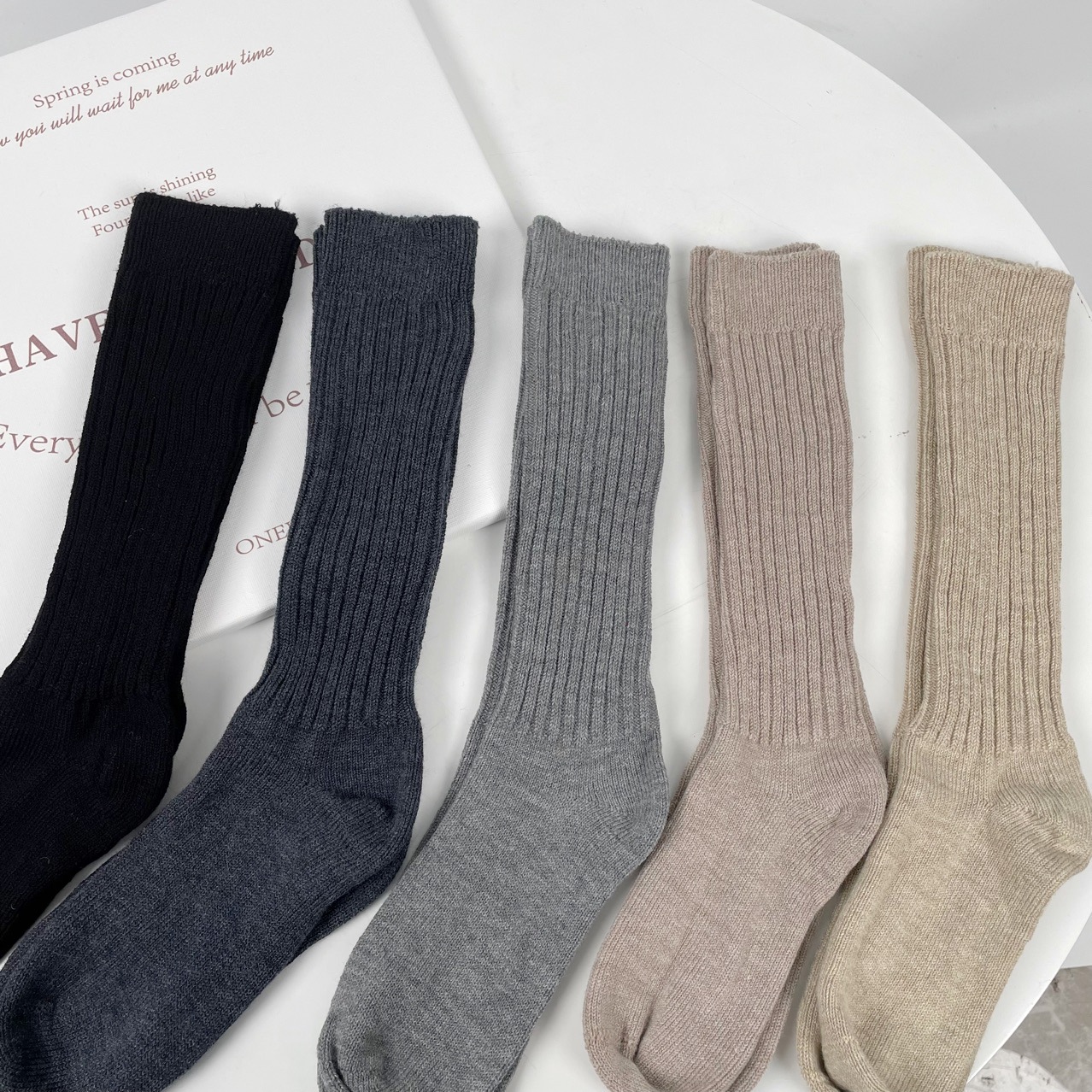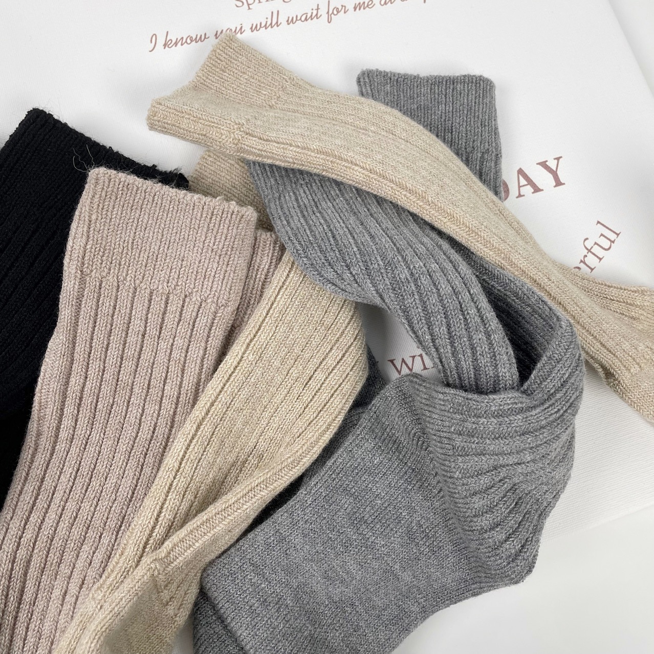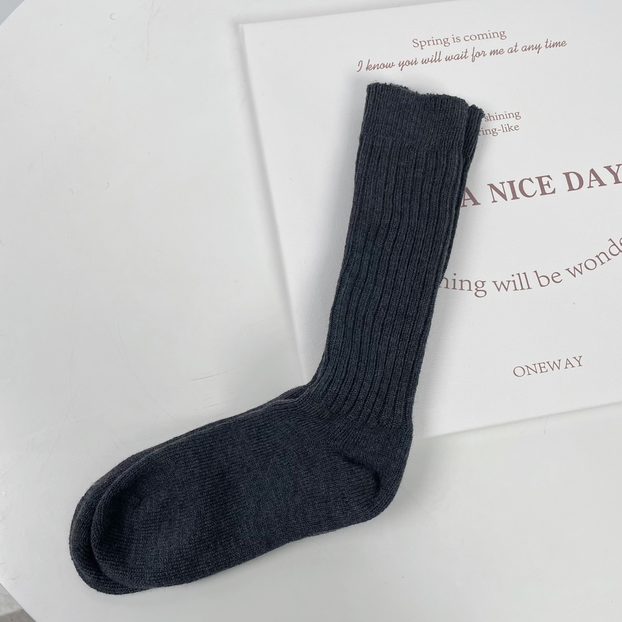 Miu 스타일 간단한 단색 세로 줄무늬 양모 양말 중간 튜브 더미 양말 얕은 양말스토어 가기