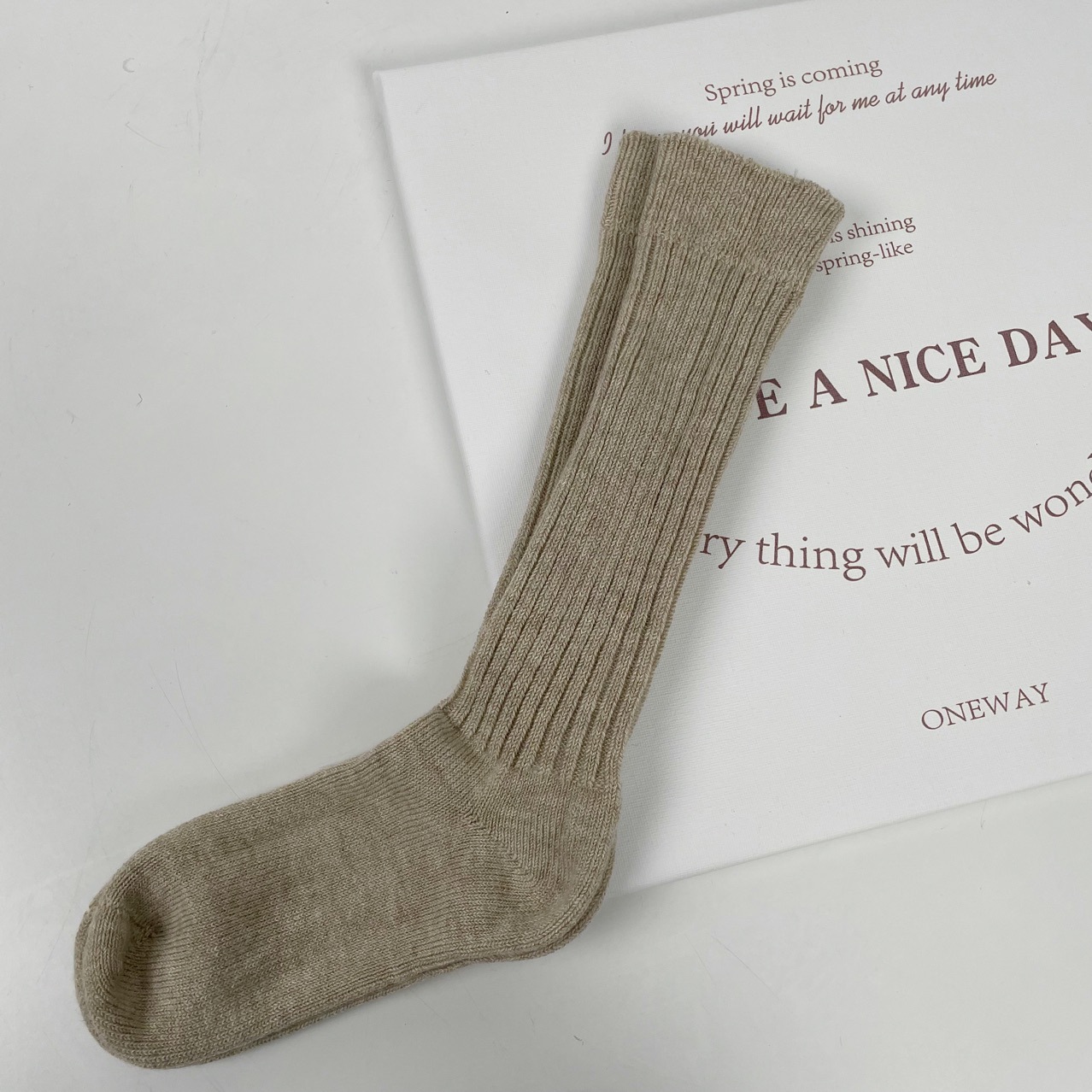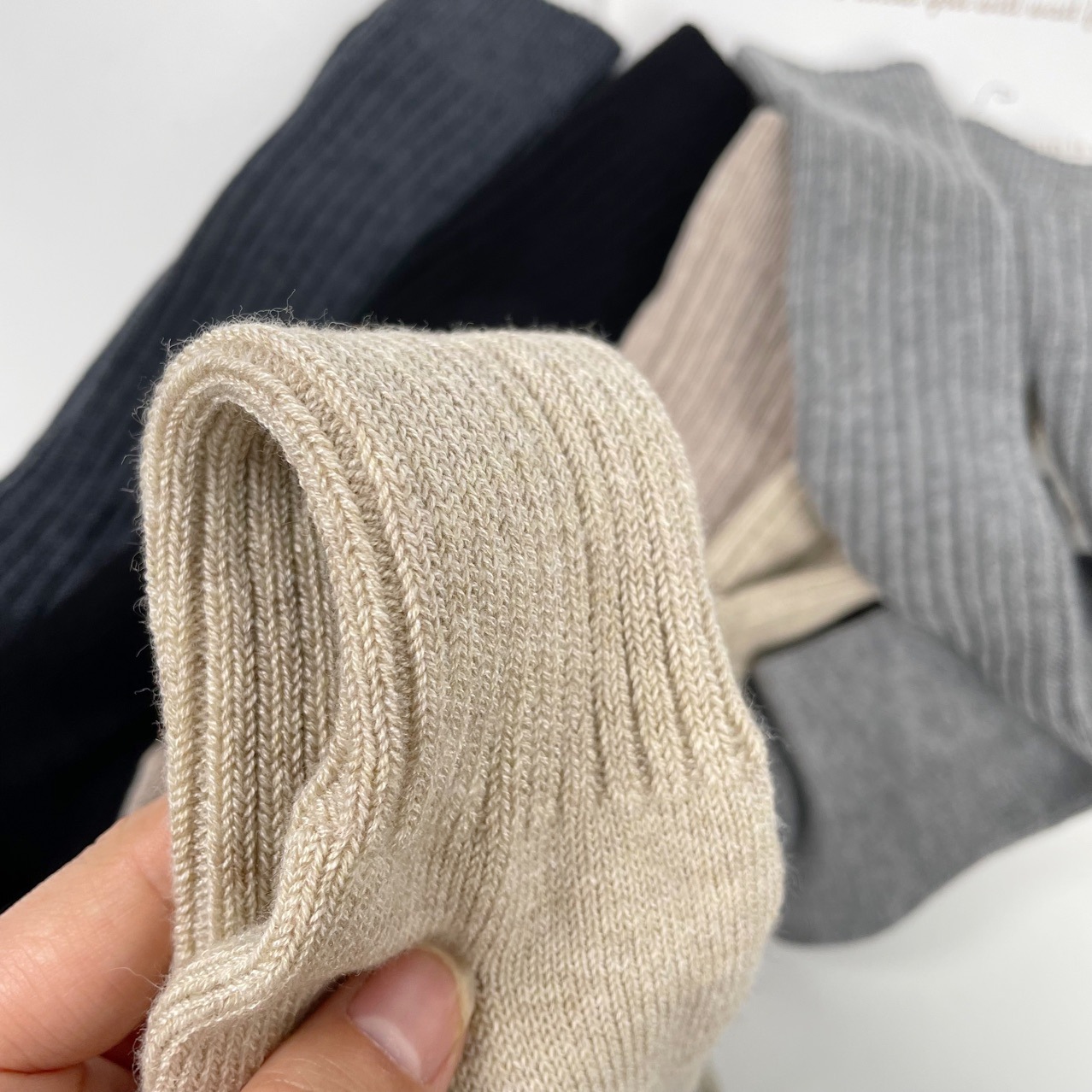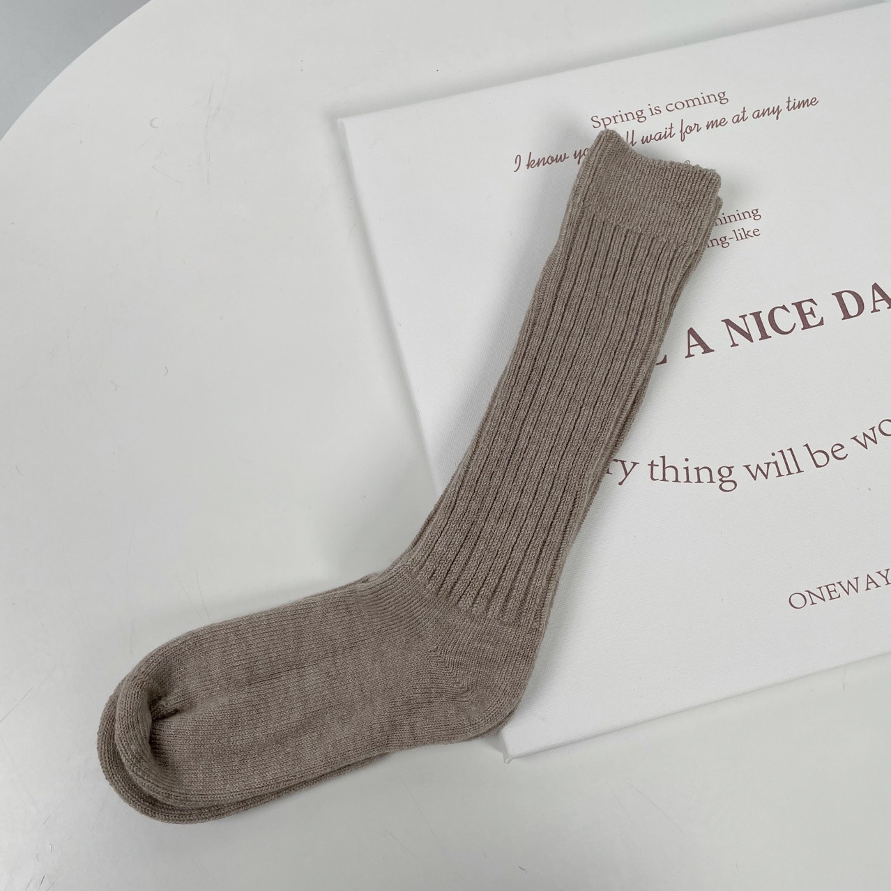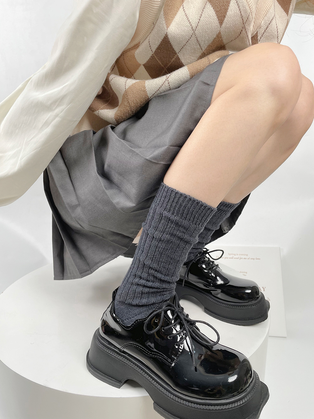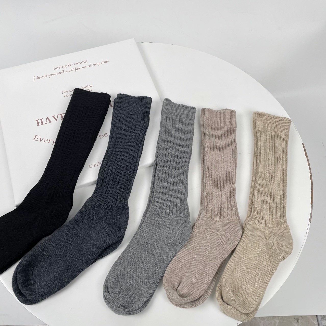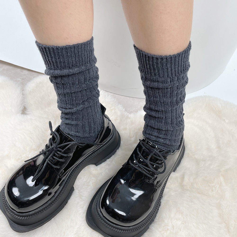 Miu 스타일 간단한 단색 세로 줄무늬 양모 양말 중간 튜브 더미 양말 얕은 양말스토어 가기