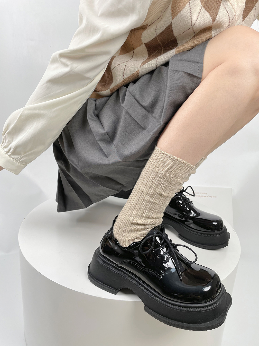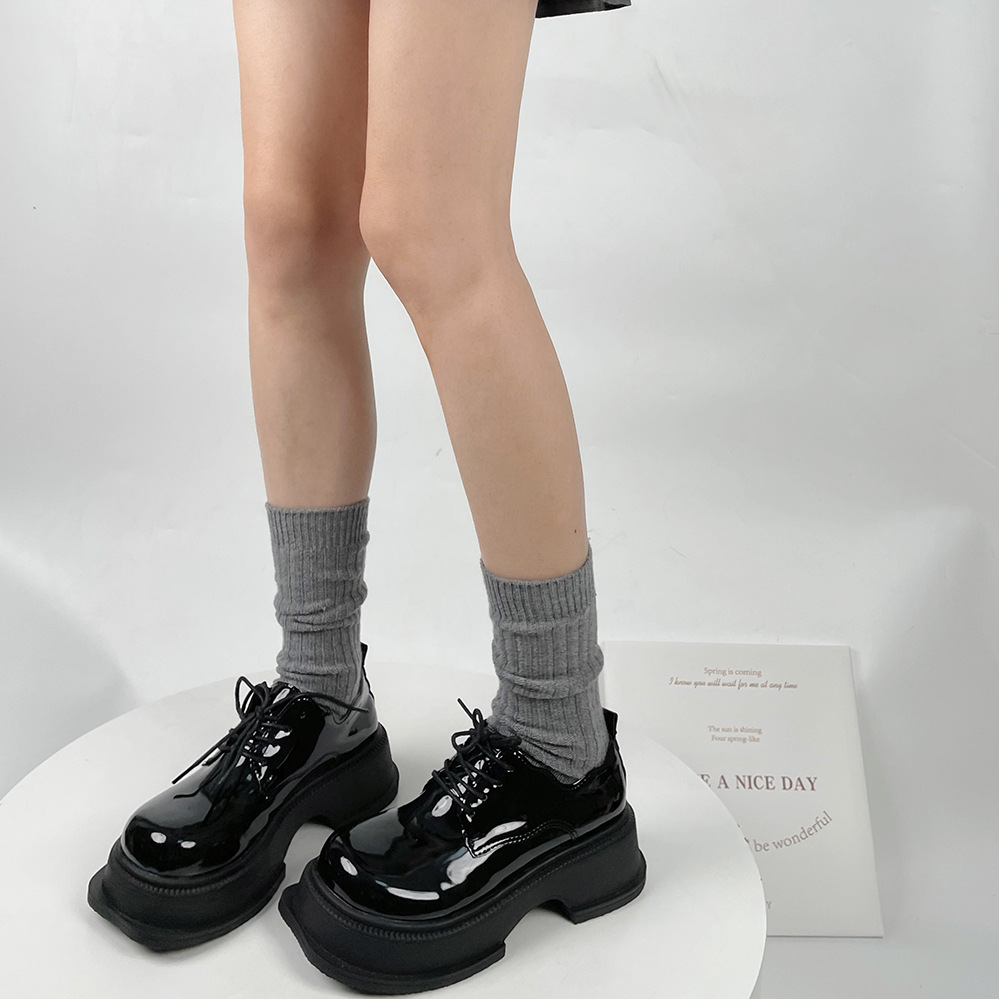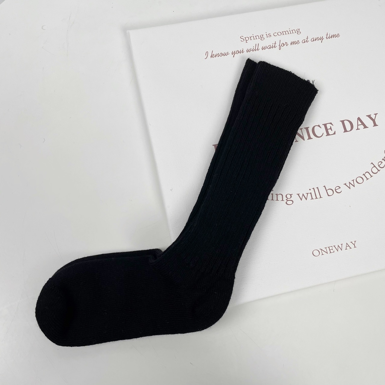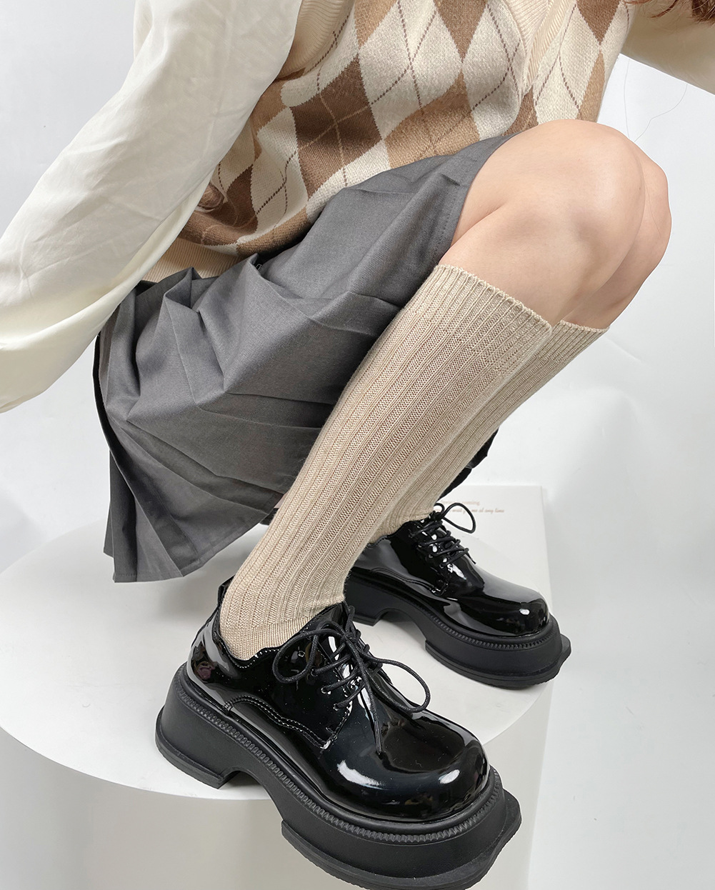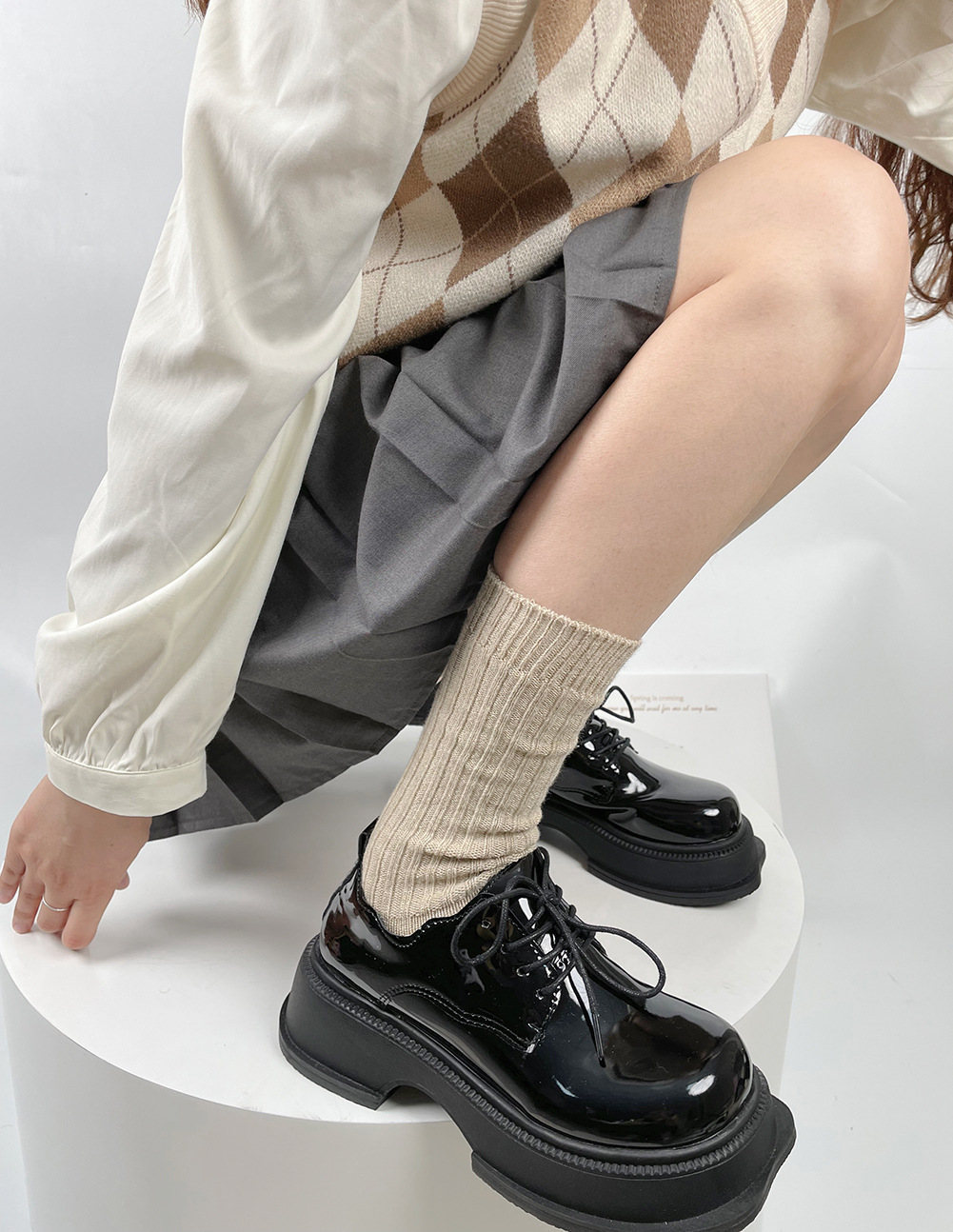 Miu 스타일 간단한 단색 세로 줄무늬 양모 양말 중간 튜브 더미 양말 얕은 양말스토어 가기