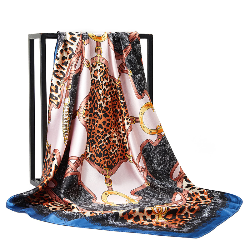 말레이시아 새로운 체인 레오파드 무늬 사이드 발가락 스퀘어 스카프 여성 캐주얼 헤어 스카프