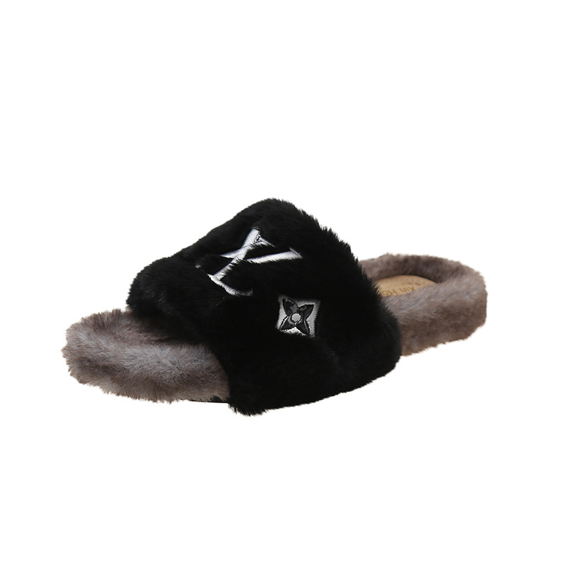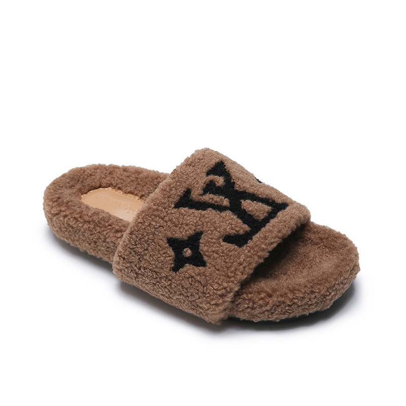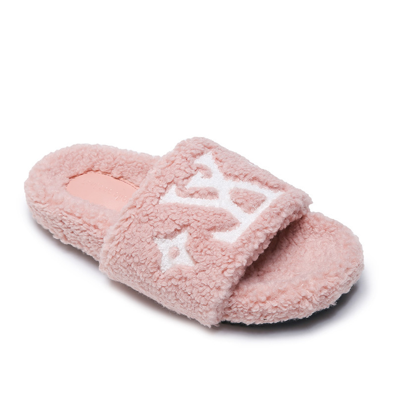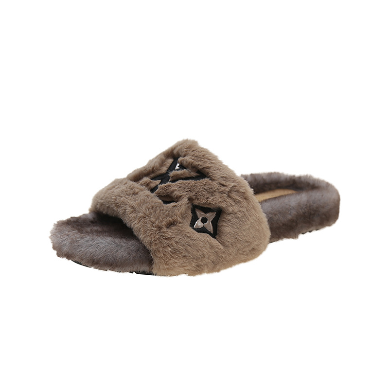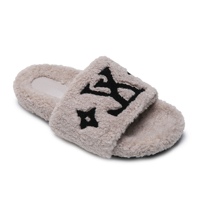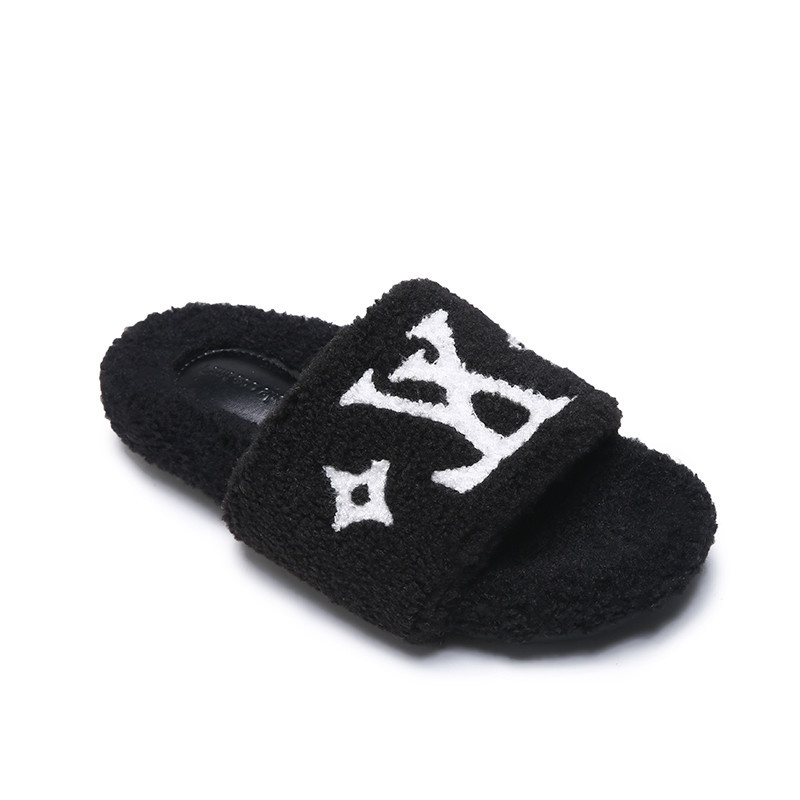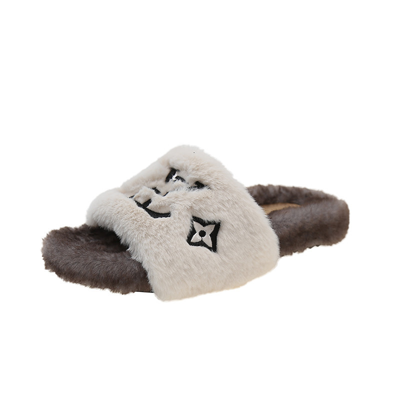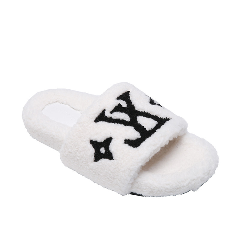인터넷 유명인과 같은 스타일의 여성용 털 슬리퍼 2025년 신상 가을 겨울 타월 자수 글자 따뜻한 플랫 털 슬리퍼 외출용