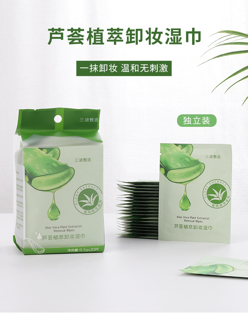 알로에 베라 식물 추출물 메이크업 리무버 젖은 물티슈 20 개 딥 클렌징 얼굴 일회용 싱글 피스 메이크업 리무버 Spunlace 부직포스토어 가기