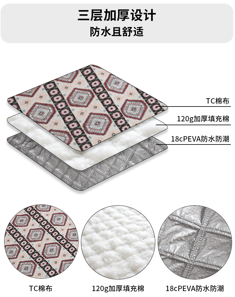 야외 캠핑 방습 매트 다층 면 두꺼운 초음파 피크닉 매트 나들이 캠핑 방수 방습 매트