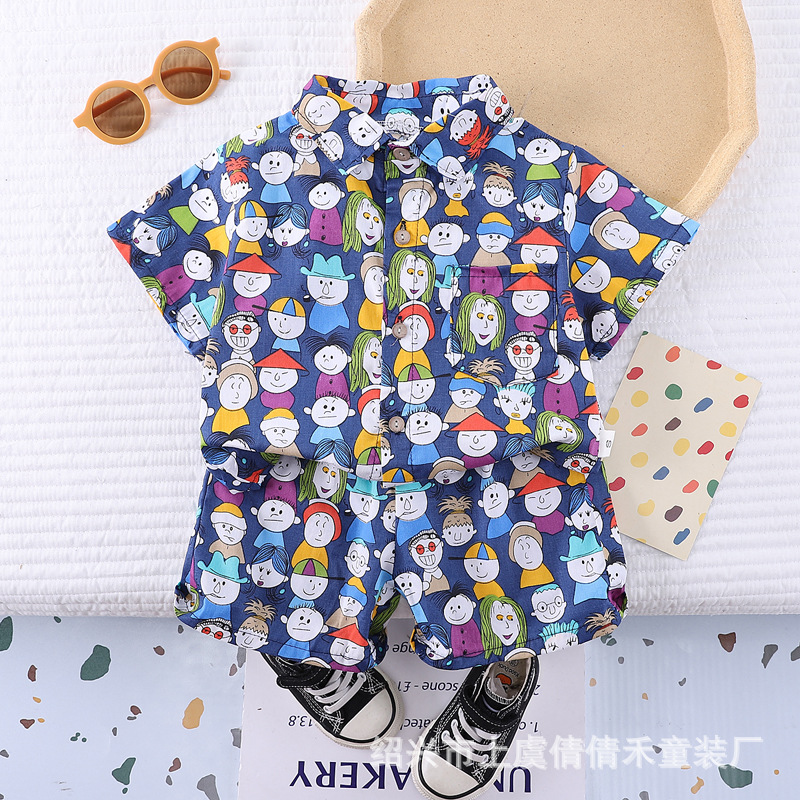 소년 반팔 여름 새로운 1-5 세 어린이 패션 전체 인쇄 아기 옷깃 셔츠 3 아기 여름 세트스토어 가기