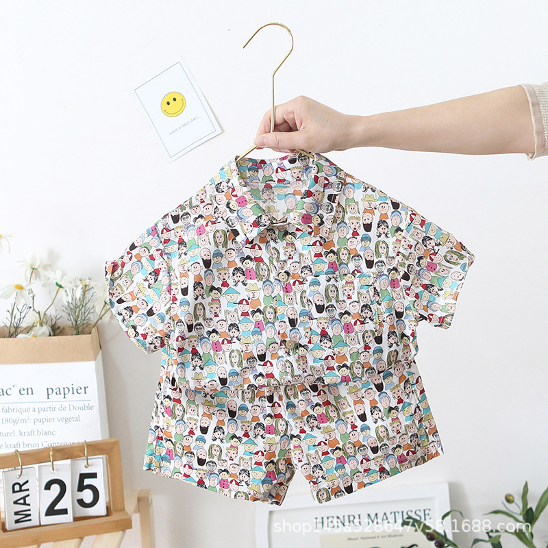 소년 반팔 여름 새로운 1-5 세 어린이 패션 전체 인쇄 아기 옷깃 셔츠 3 아기 여름 세트