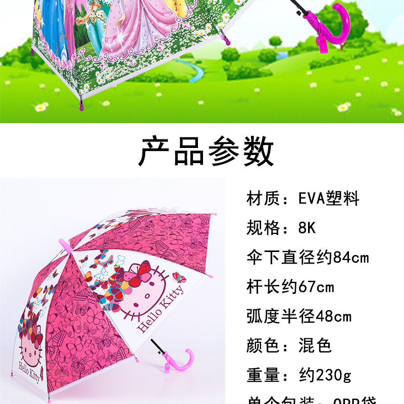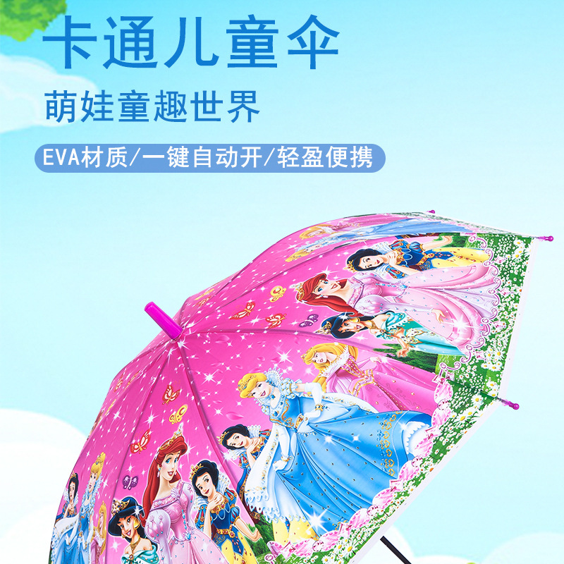 제조 업체 도매 귀여운 만화 어린이 우산 자동 긴 손잡이 직선 투명 우산 초등 학생 태양 우산스토어 가기