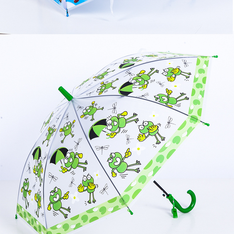 제조 업체 도매 귀여운 만화 어린이 우산 자동 긴 손잡이 직선 투명 우산 초등 학생 태양 우산