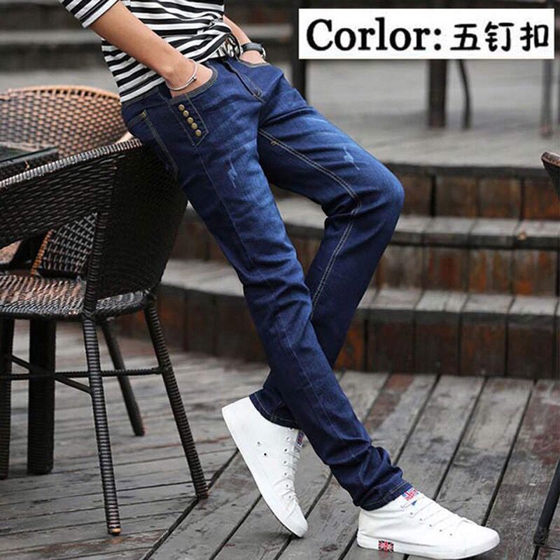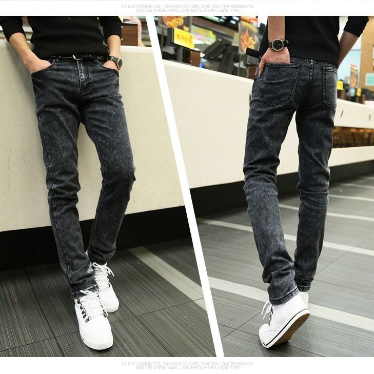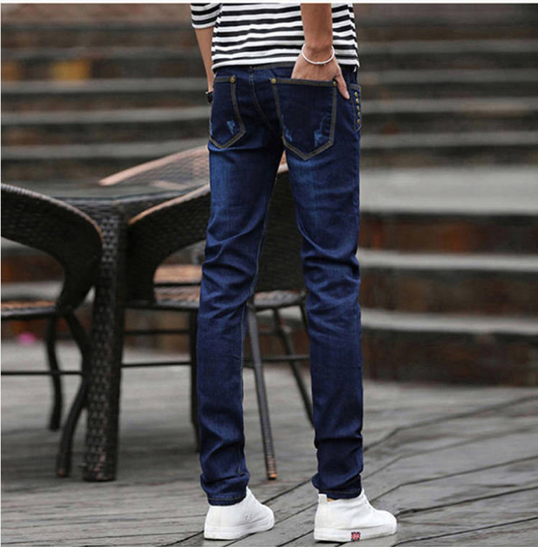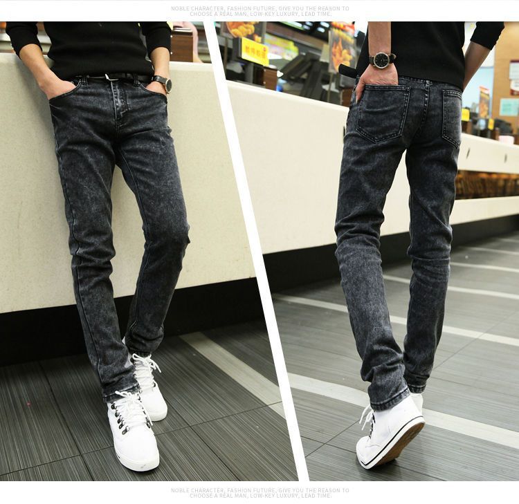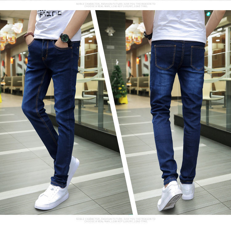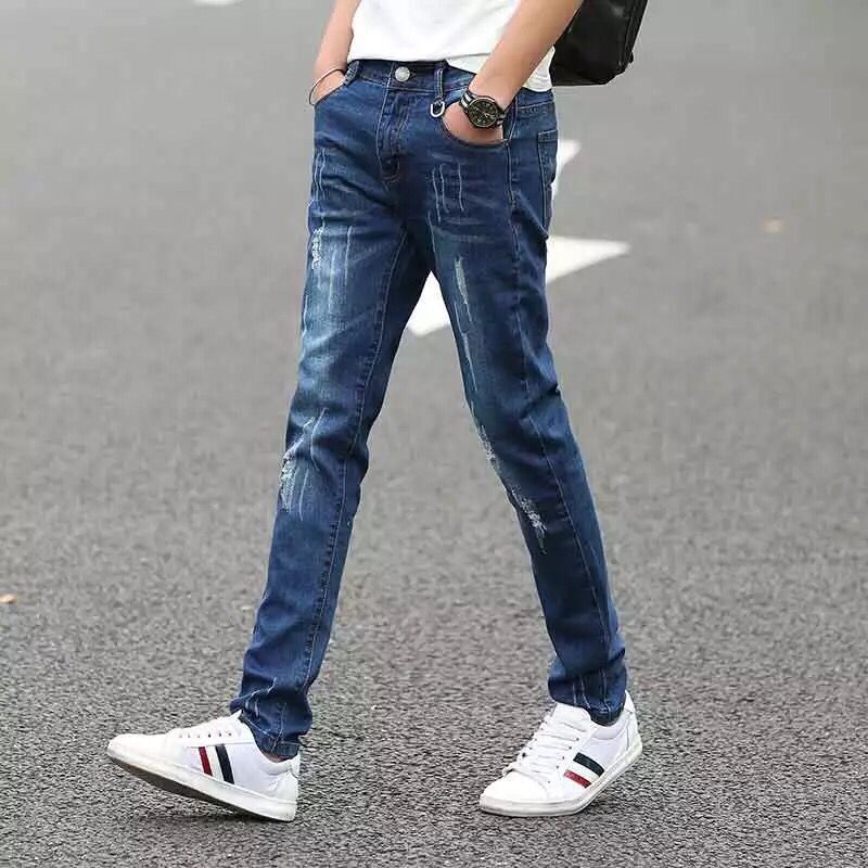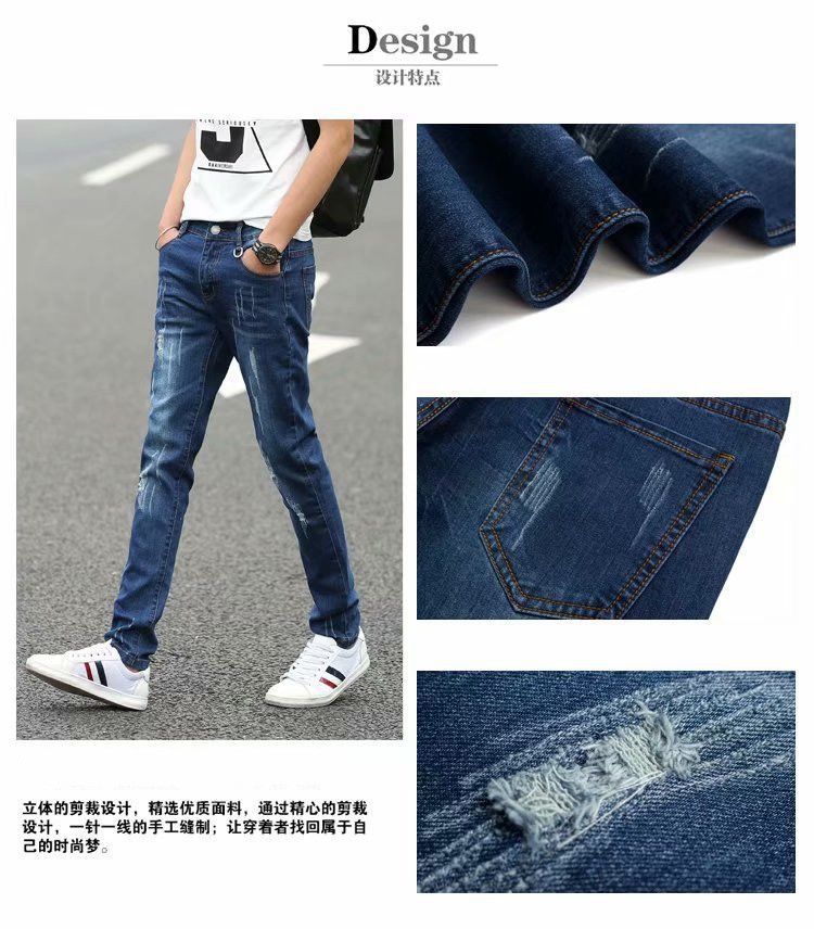 스트레치 찢어진 청바지 봄과 여름 남성용 한국 유행 스키니 팬츠 학생용 슬림핏 팬츠 캐주얼 남성 바지
