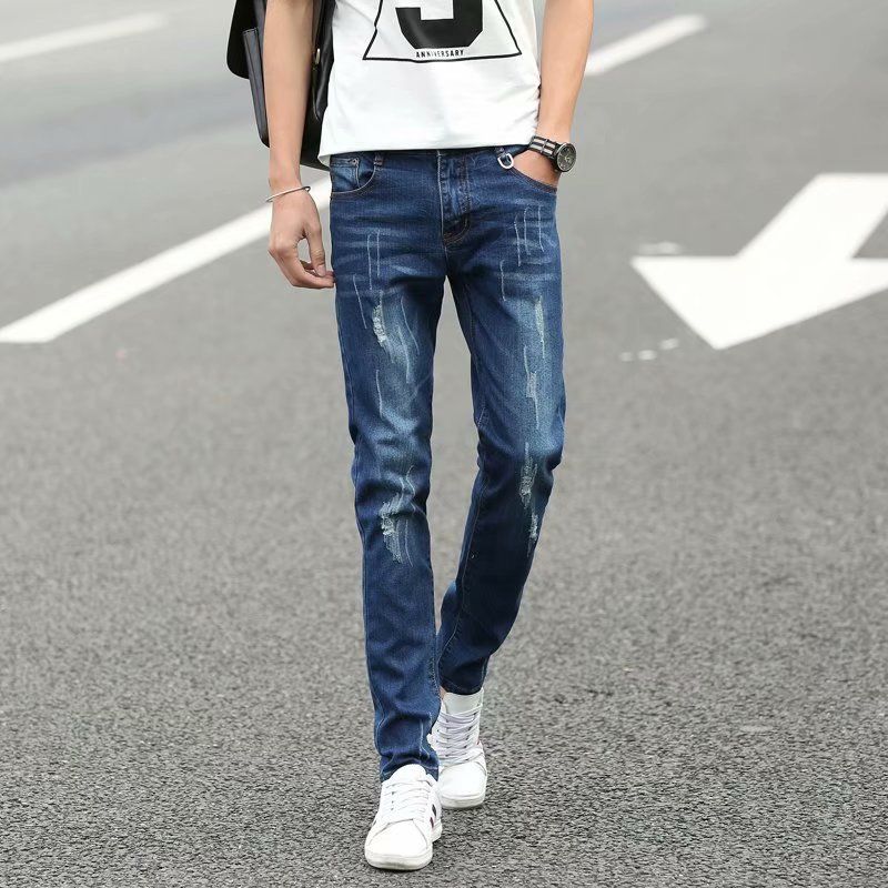 스트레치 찢어진 청바지 봄과 여름 남성용 한국 유행 스키니 팬츠 학생용 슬림핏 팬츠 캐주얼 남성 바지스토어 가기