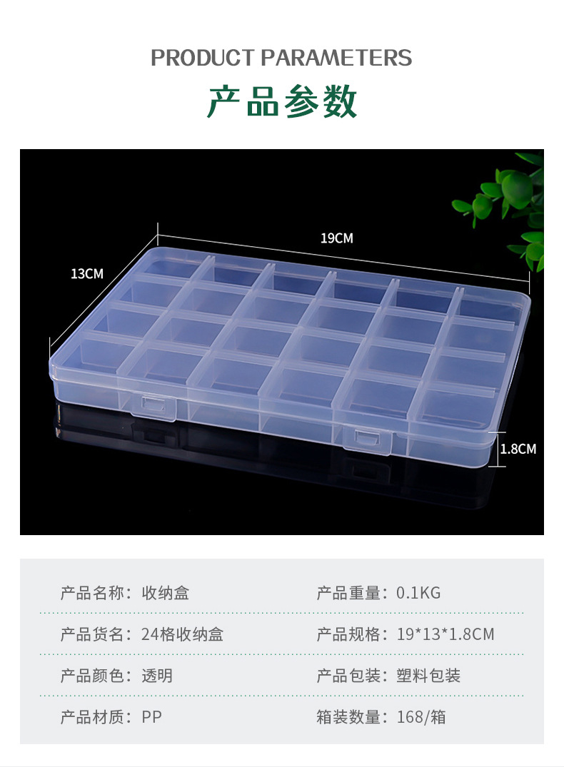 24 그리드 고정 플라스틱 보관함 보관 보관 보관 낚시 장비 보석 구슬 부품 보관함 포장 보석 상자