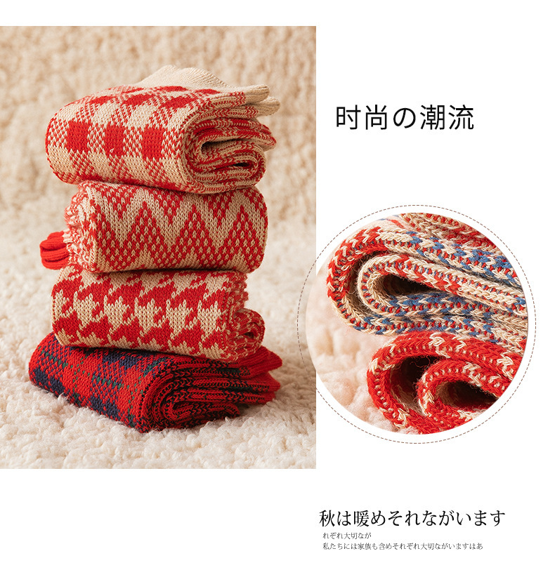 인터넷 빨간 양말 여자 생일 년 Houndstooth 축제 새해 선물 빨간 양말 결혼 선물 빨간 튜브 양말