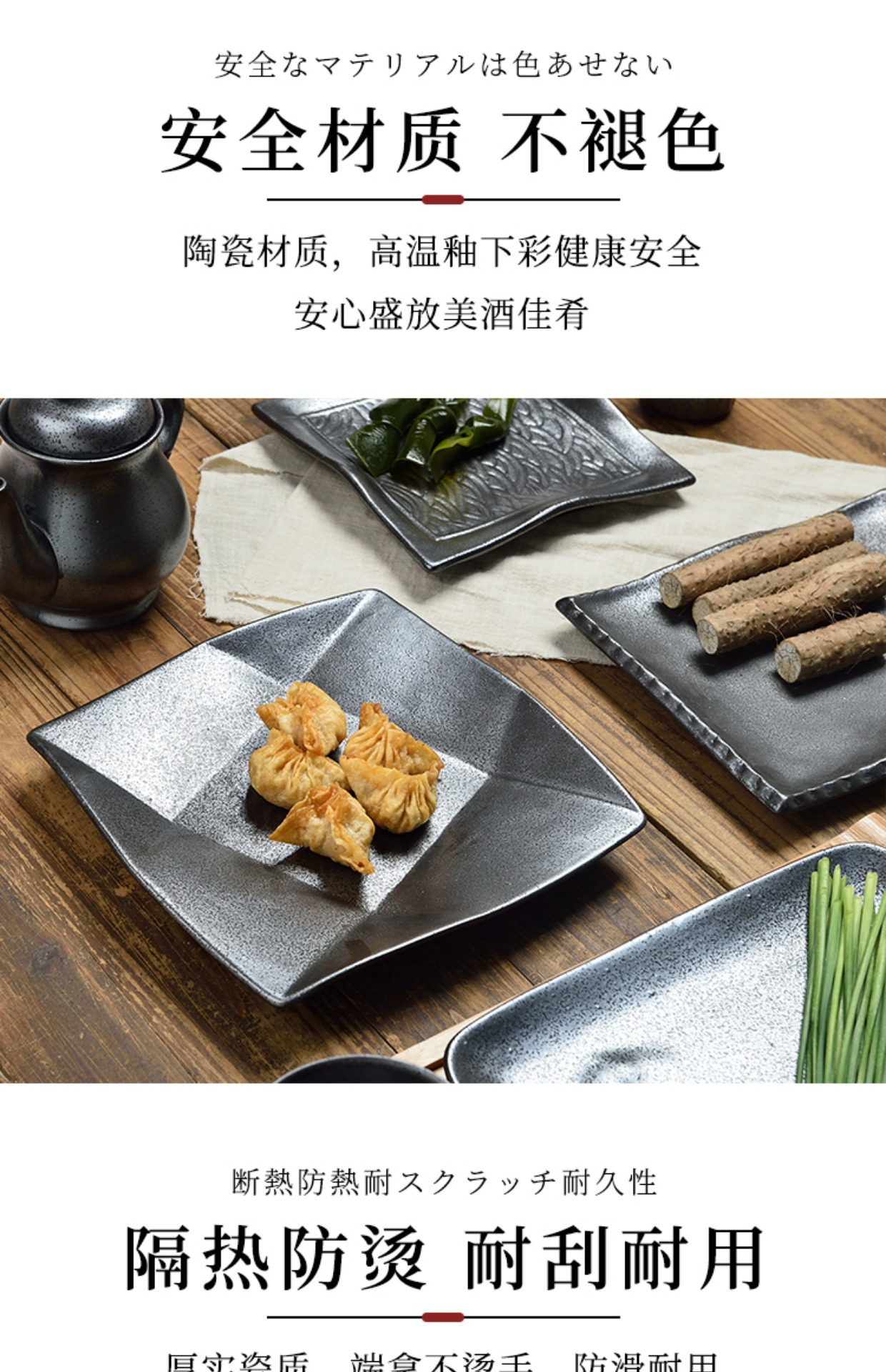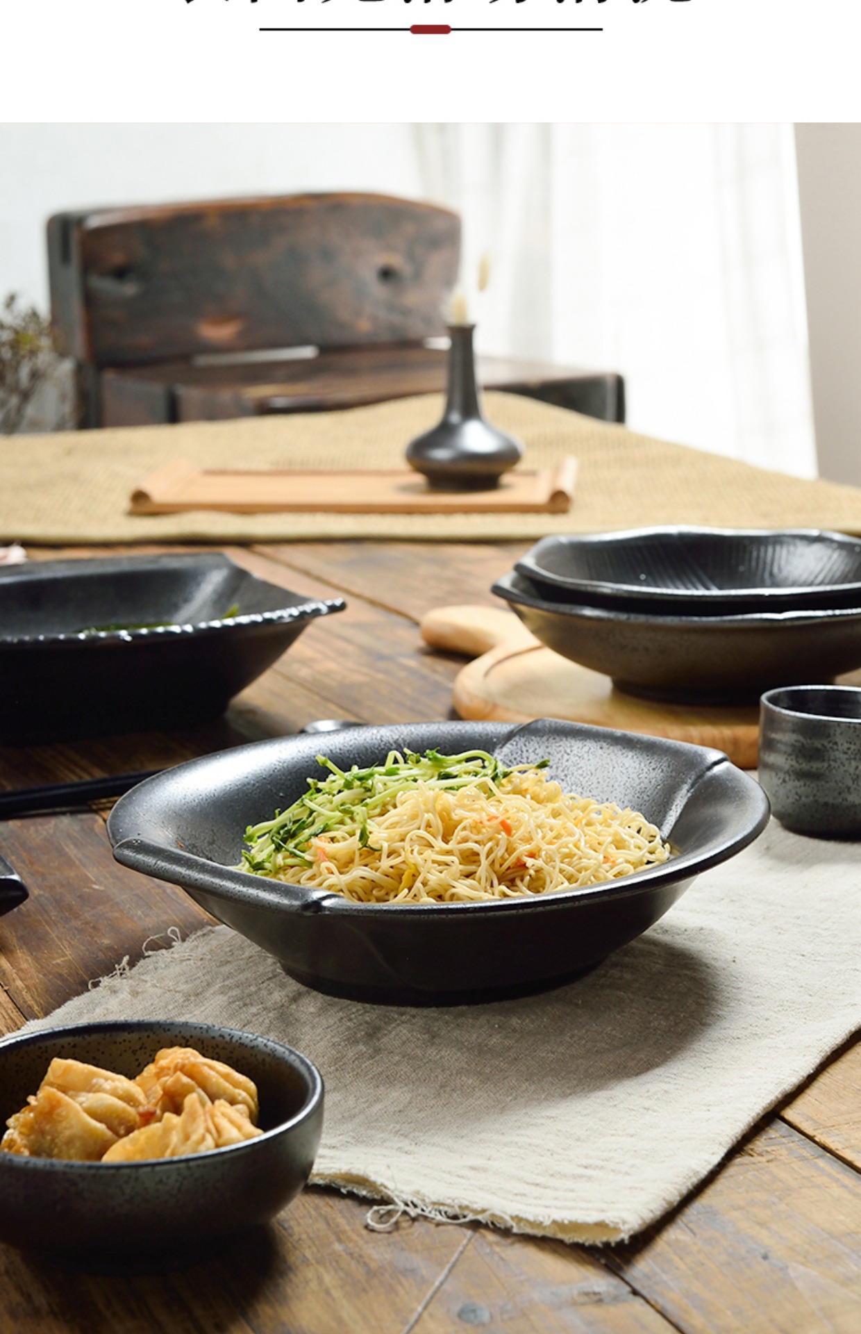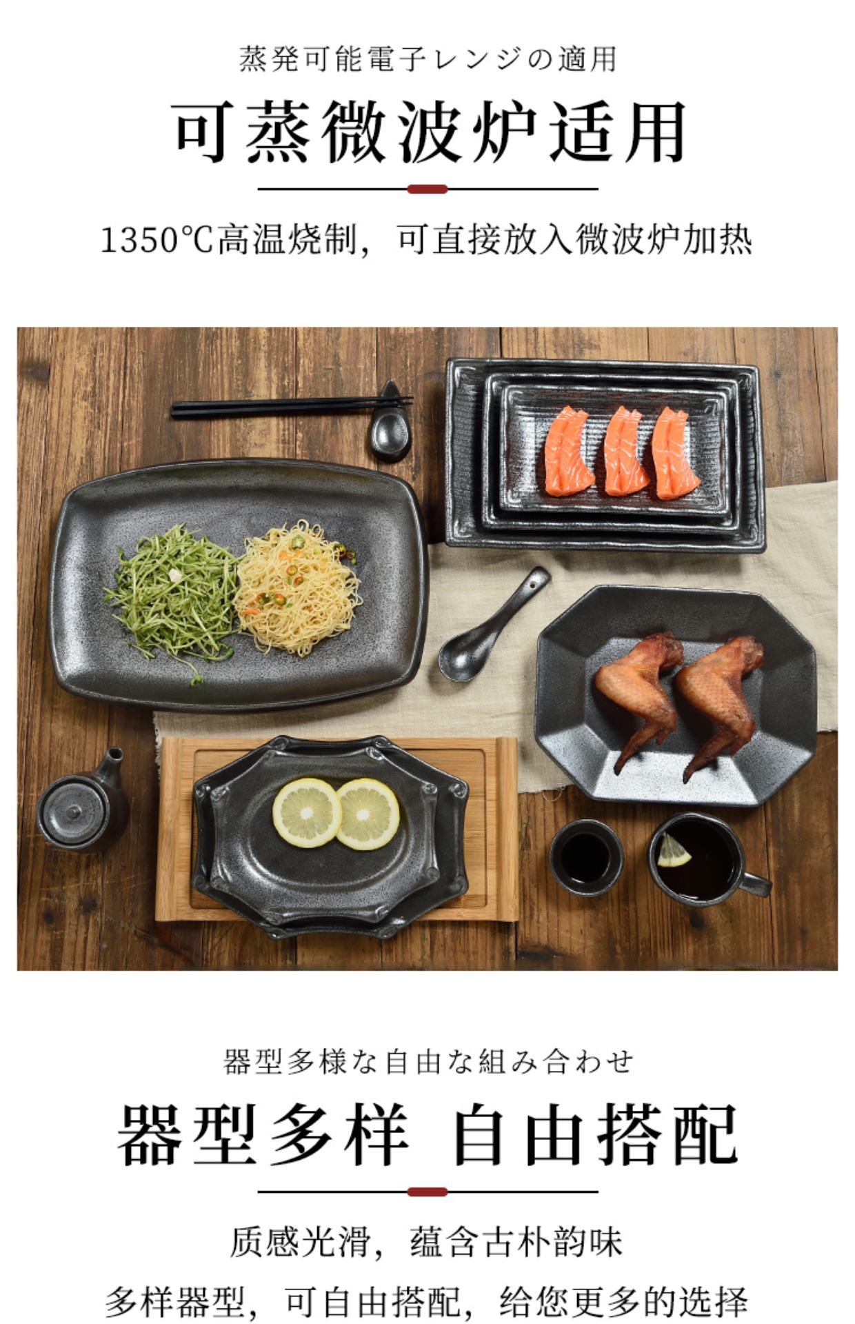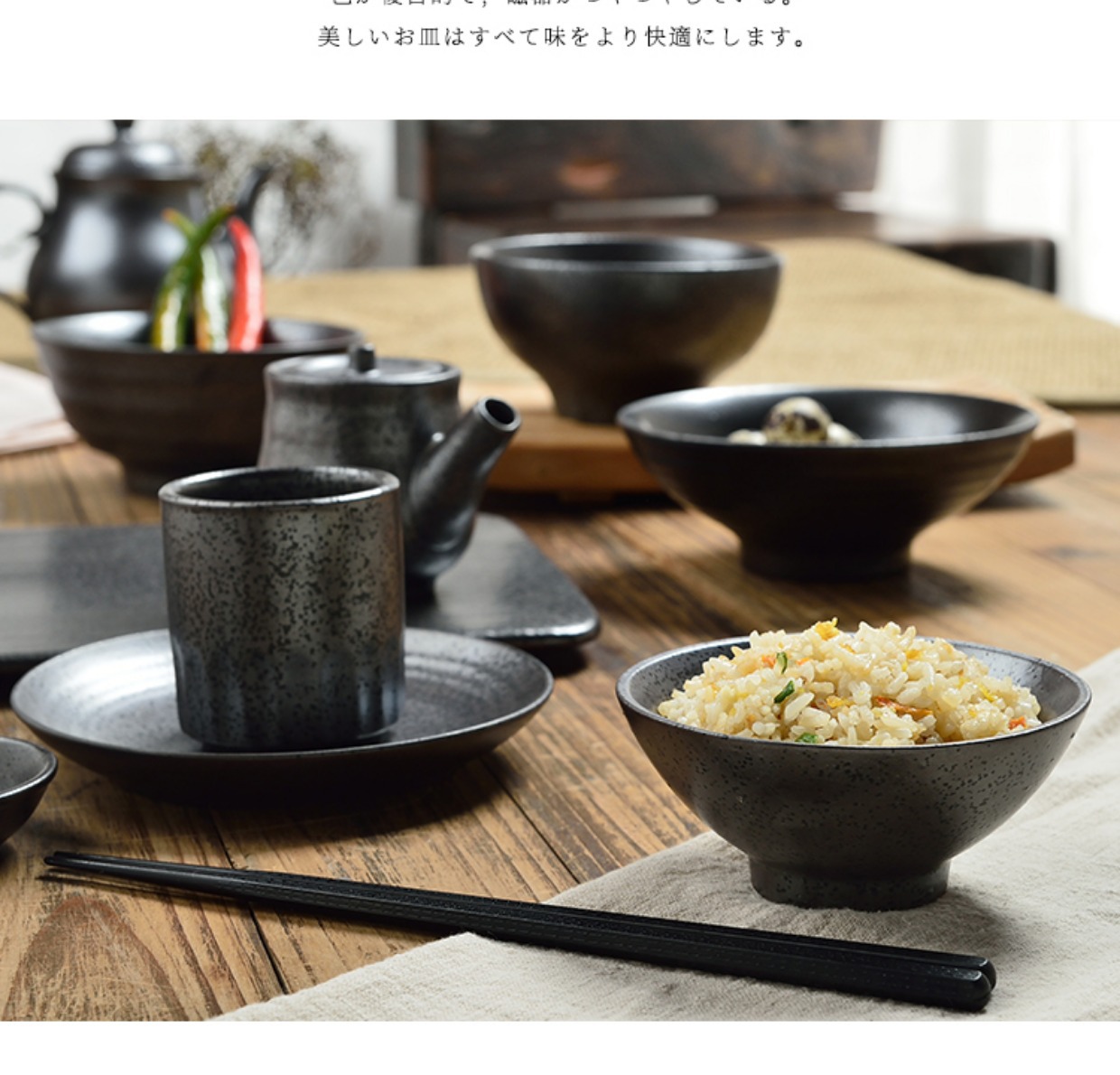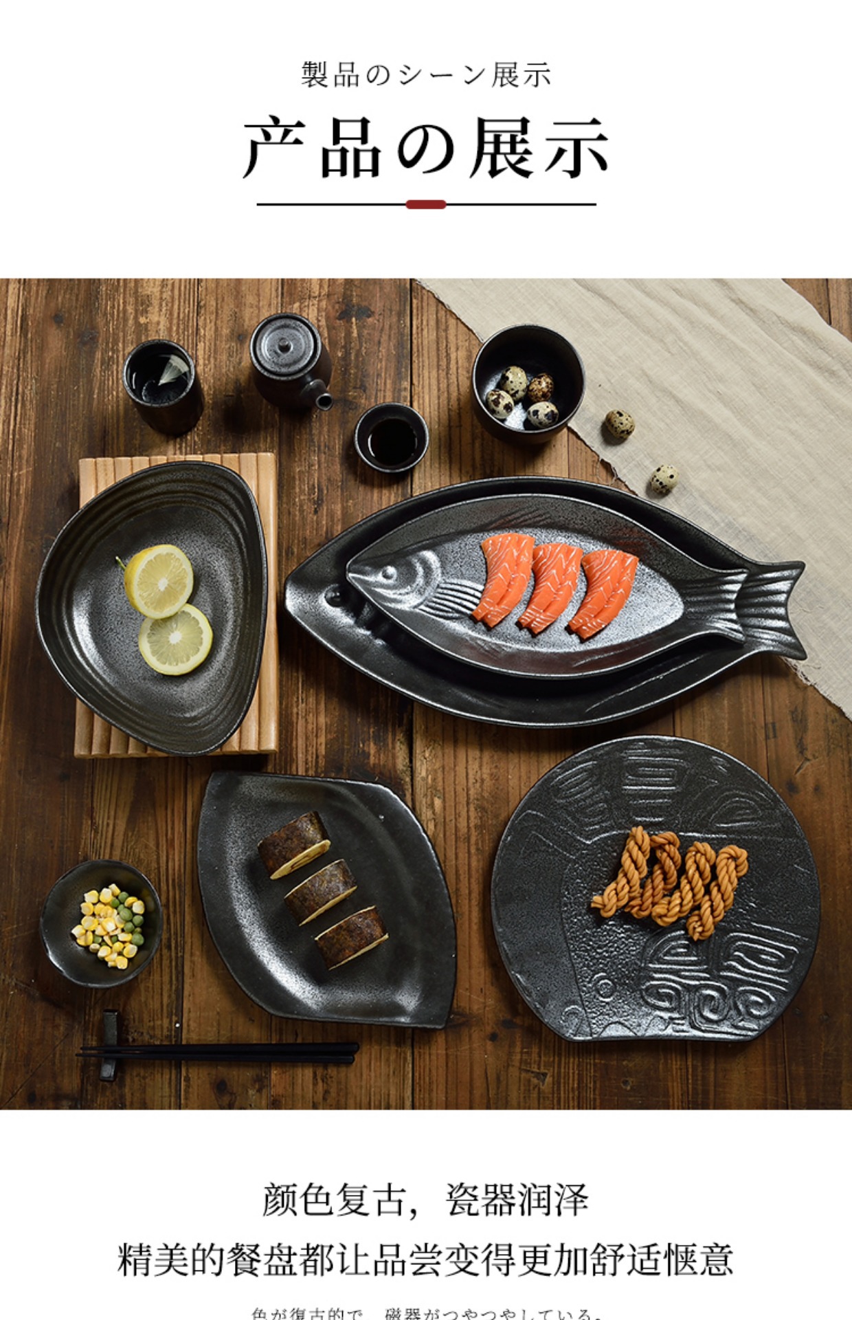 일본식 요리와 바람 가정용 검정 석기 그릇 개성 레트로 스테이크 접시 세라믹 라이트 고급 단색 식기 도매스토어 가기