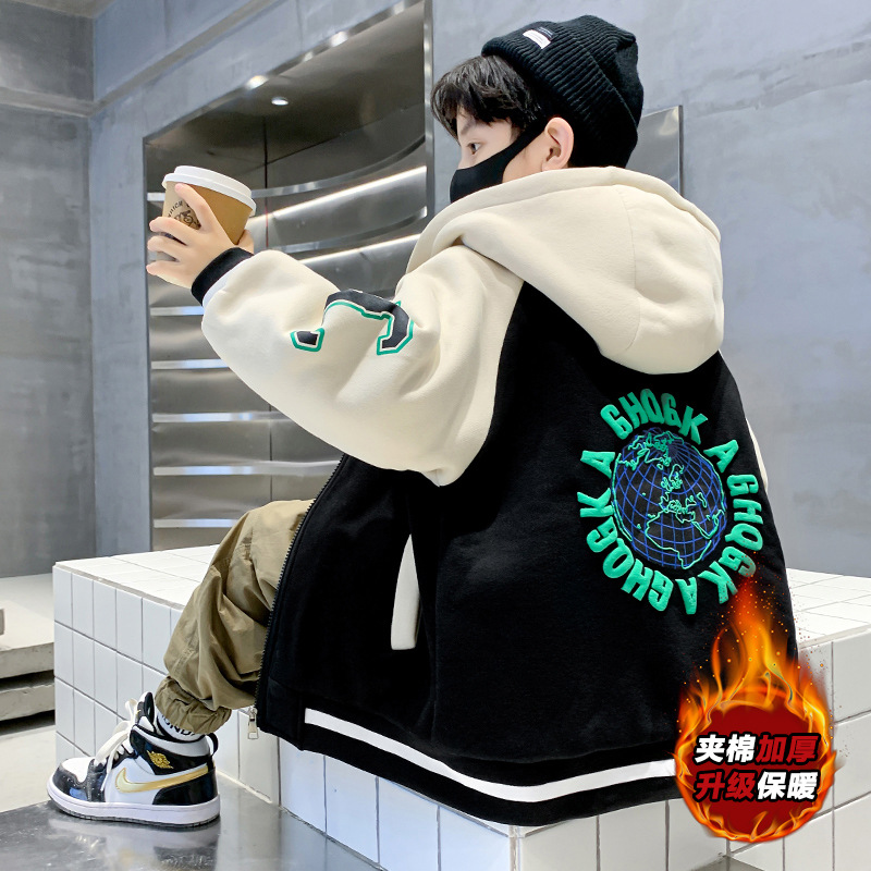 남아 가을 재킷 2025 신상 아동용 후드 야구 유니폼, 중대형 아동 가을 겨울 두꺼운 누비옷, 트렌디스토어 가기