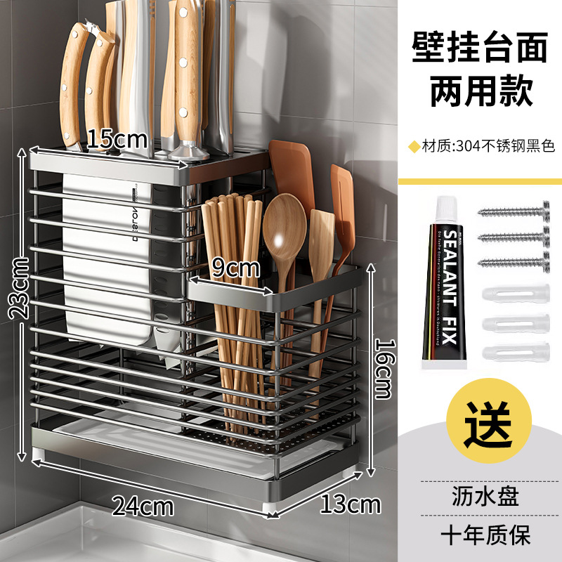 • [벽걸이 형] 확대 된 검은 칼 젓가락 통합 랙 (3 칸 젓가락 튜브)