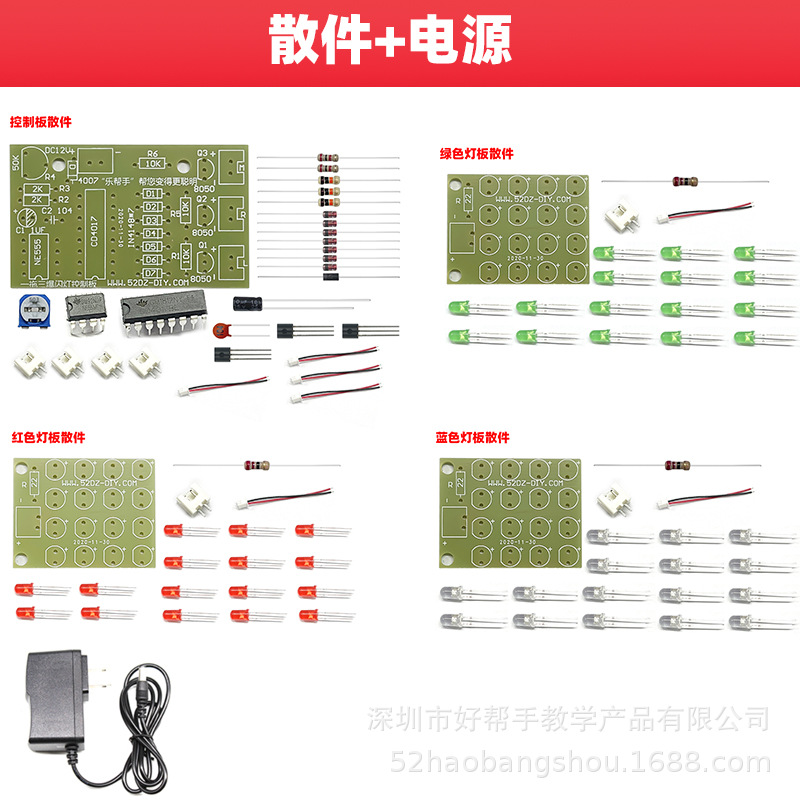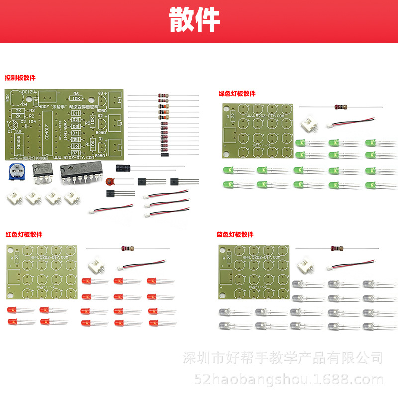 1-3 플래시 램프 키트 4017 + 555 빨강, 흰색 및 녹색 3 색 LED 전자 생산 관심 DIY 용접 부품스토어 가기