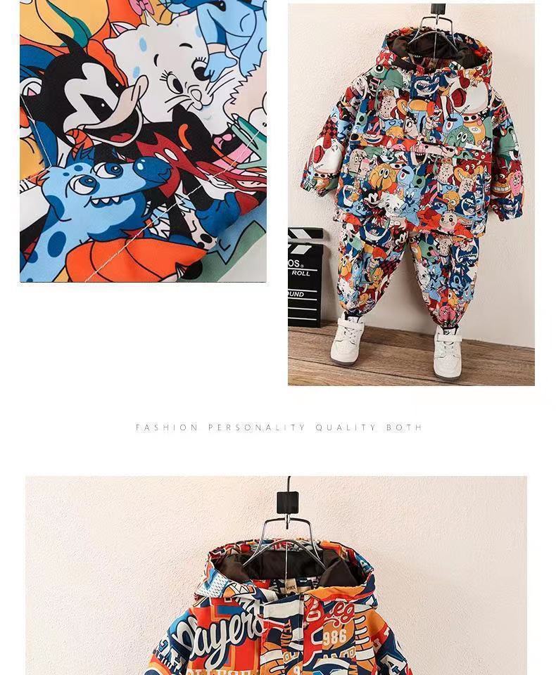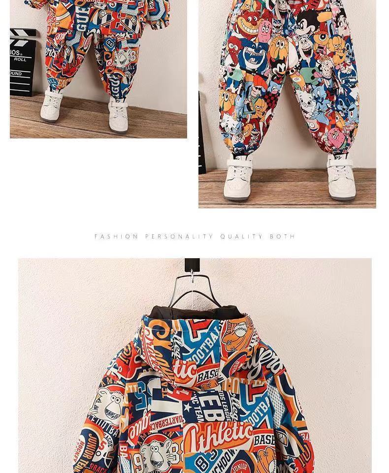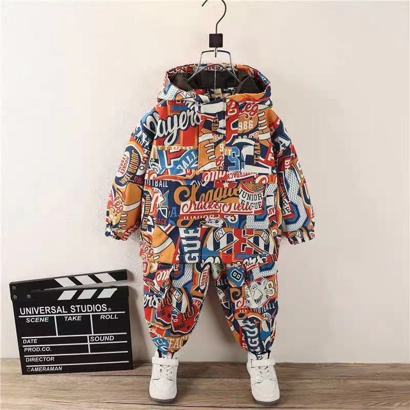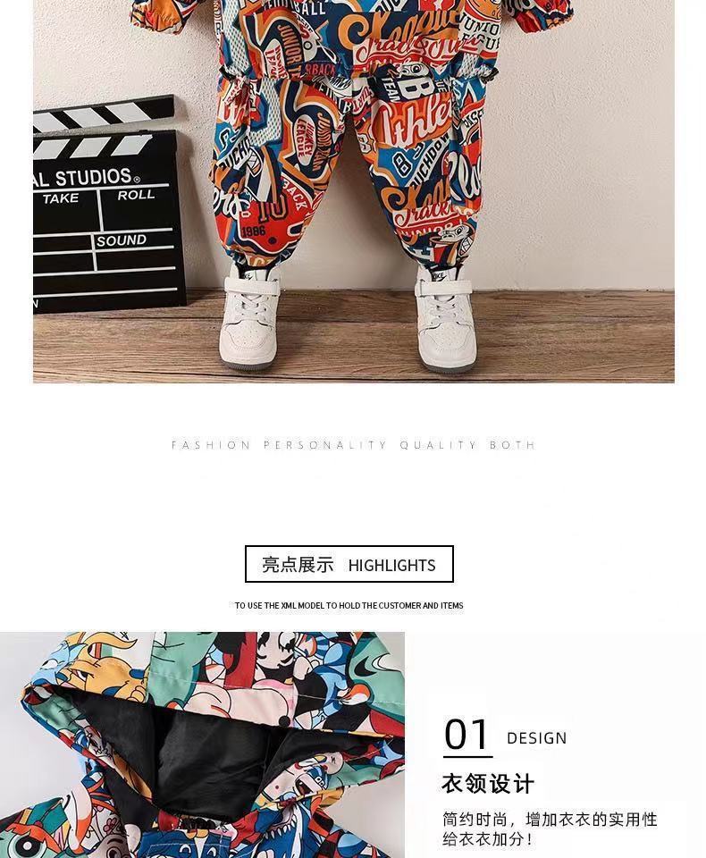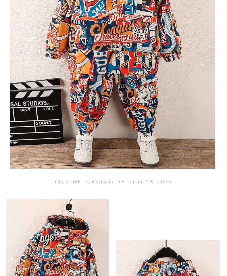 남아 봄 충전 의류 세트 2023 아동 후드 재킷 웨스턴 스타일 캐주얼 아기 윈드 브레이커 투피스 세트