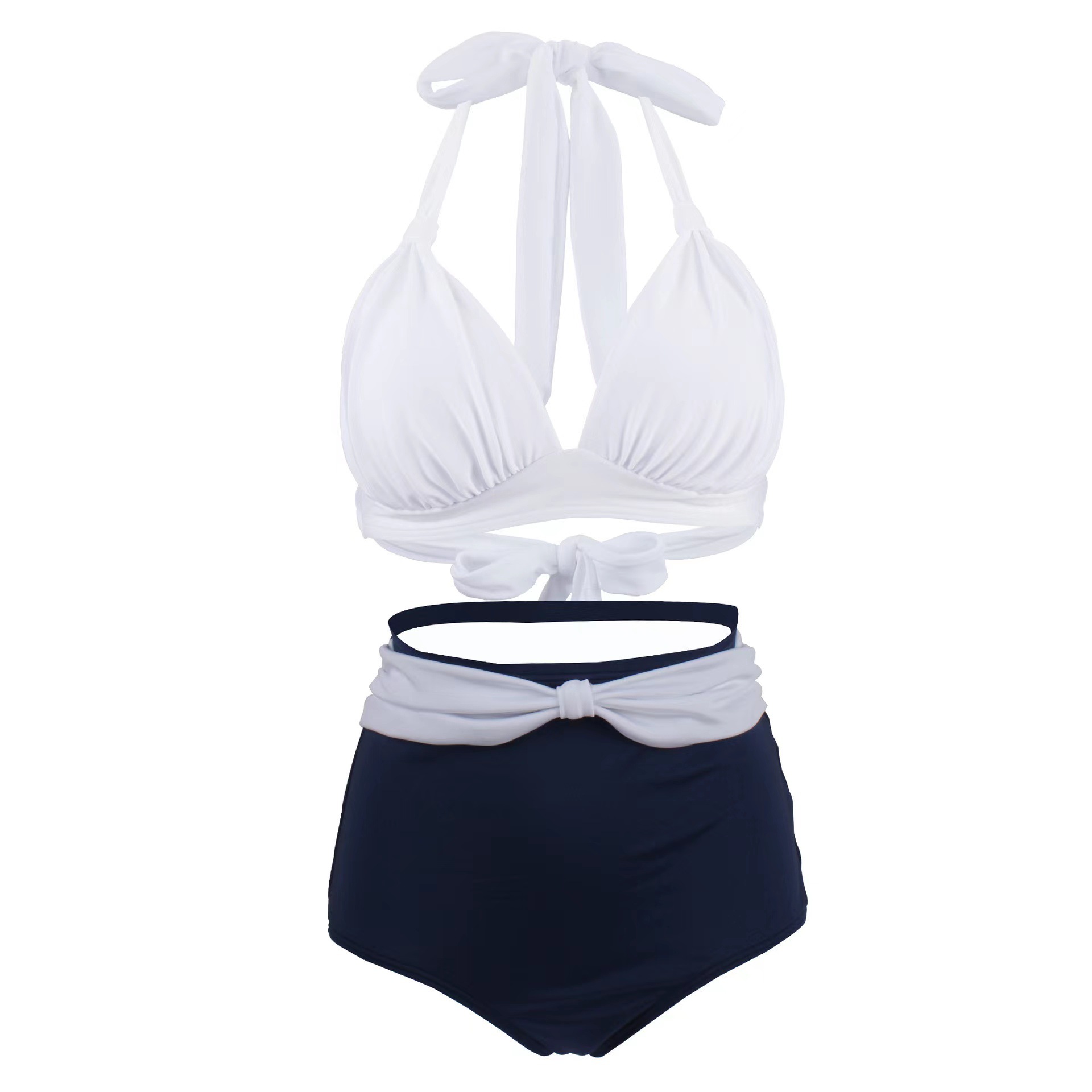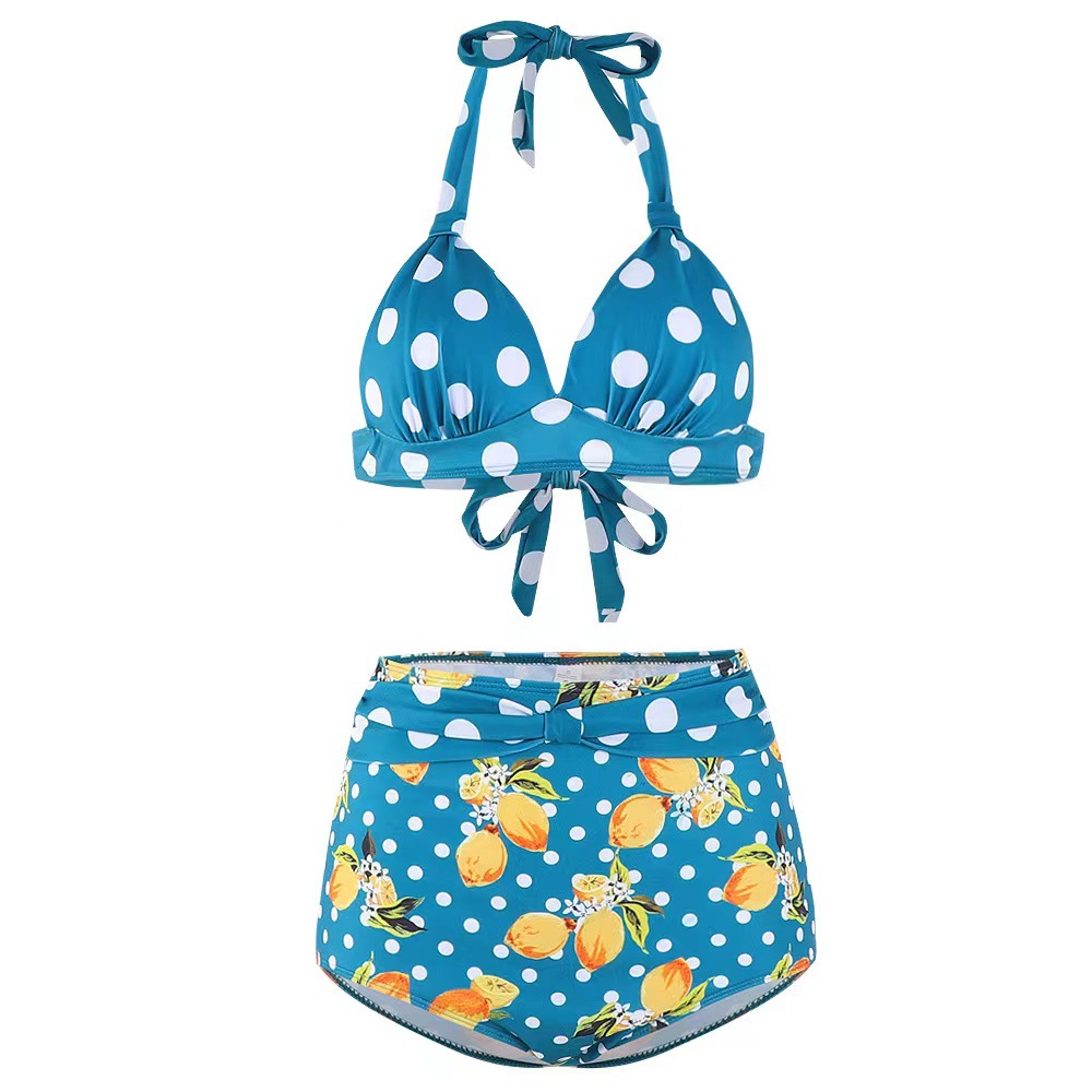 2023 새로운 크로스 보더 유럽과 미국 웨이브 도트 플러스 사이즈 하이 웨이스트 수영복 여성용 스트랩 해외 무역 분할 아마존 수영복 여성용 No스토어 가기