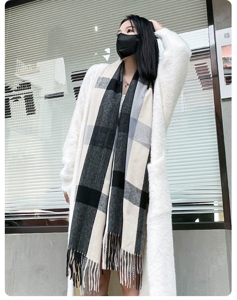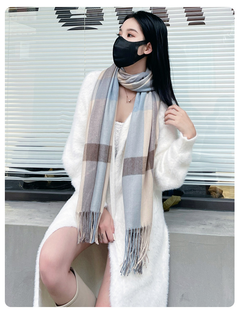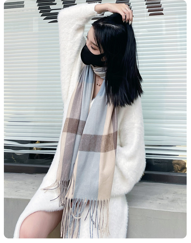 여성용 신상품 가을 겨울 2022 한국식 올 매치 체크 무늬 심플하고 따뜻하고 방진 커플 스카프스토어 가기