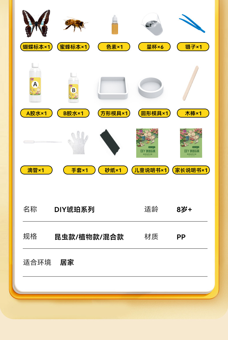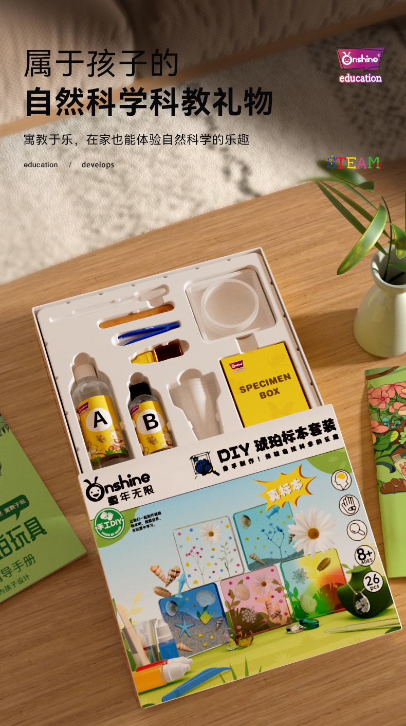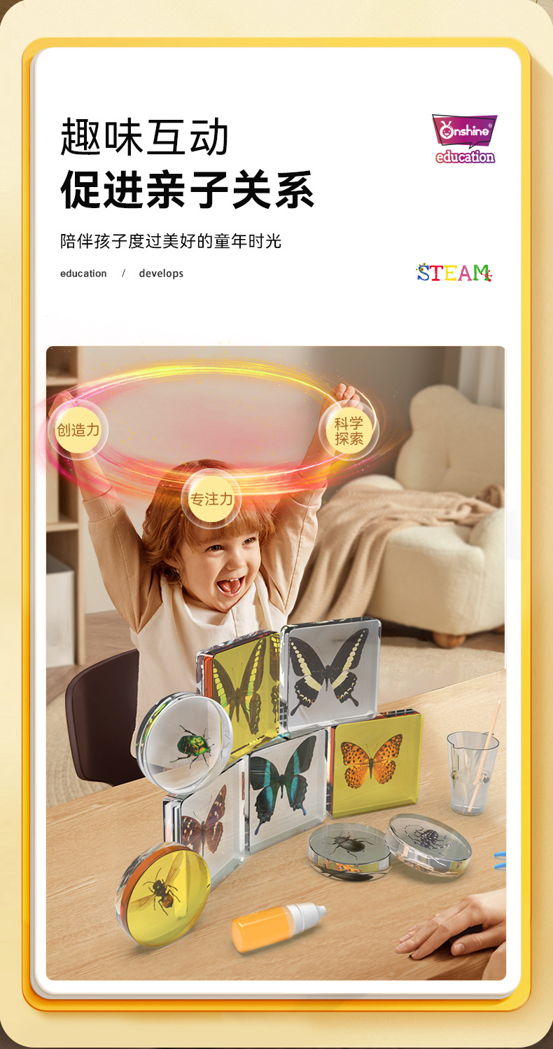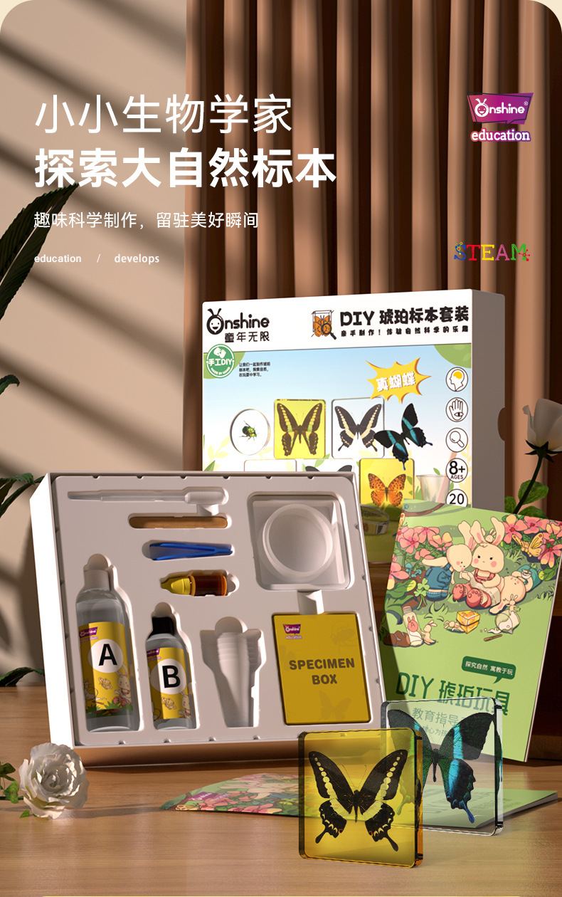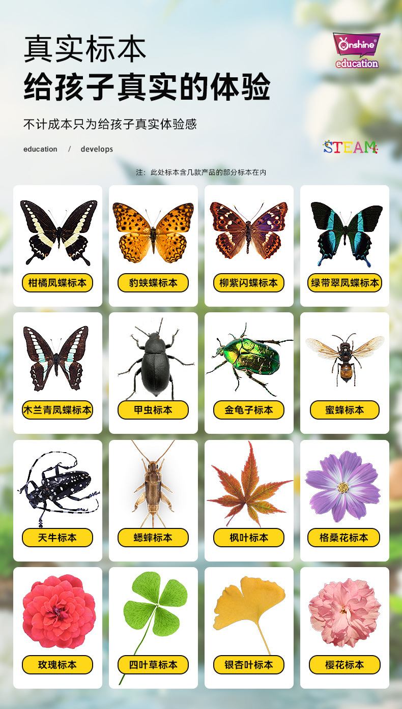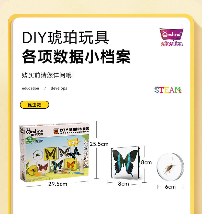 Onshine 진짜 식물 곤충 표본 수지 버그 호박색 나비 만들기 어린이 관찰 과학 장난감스토어 가기