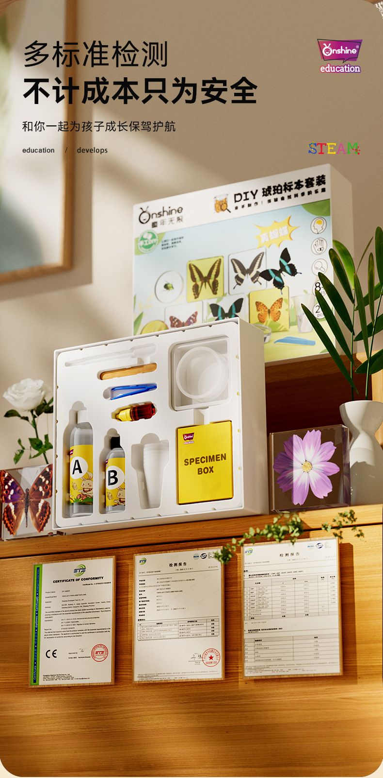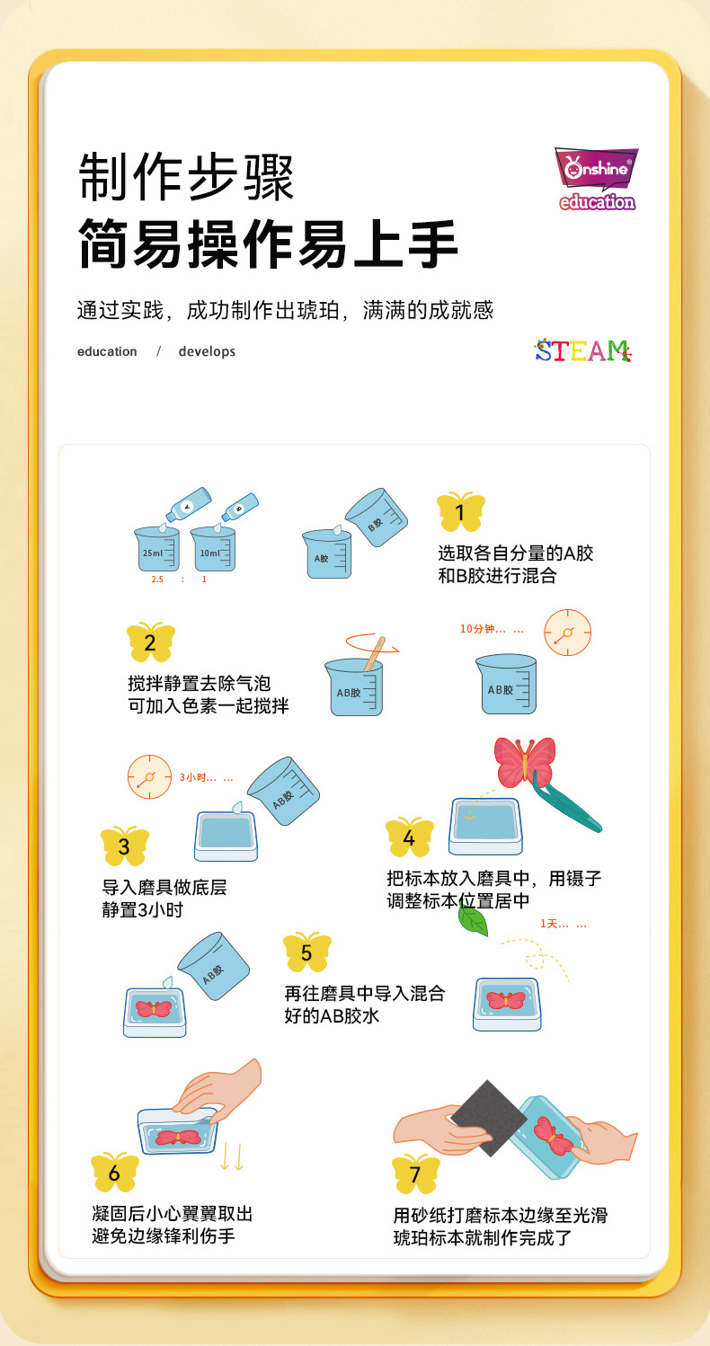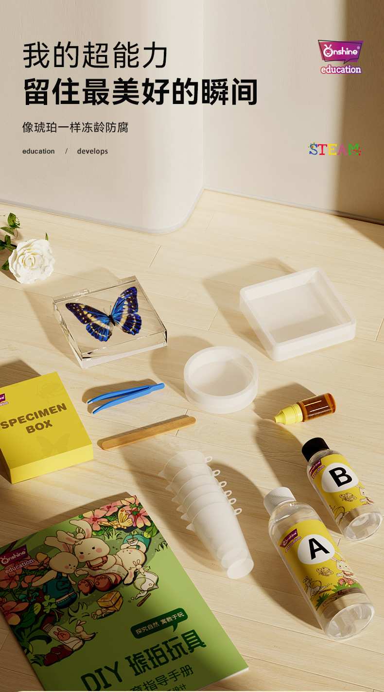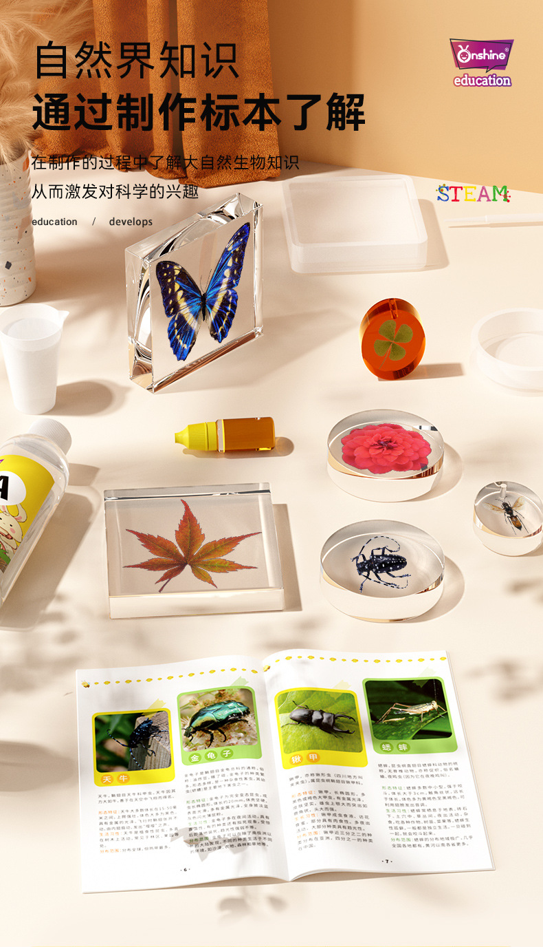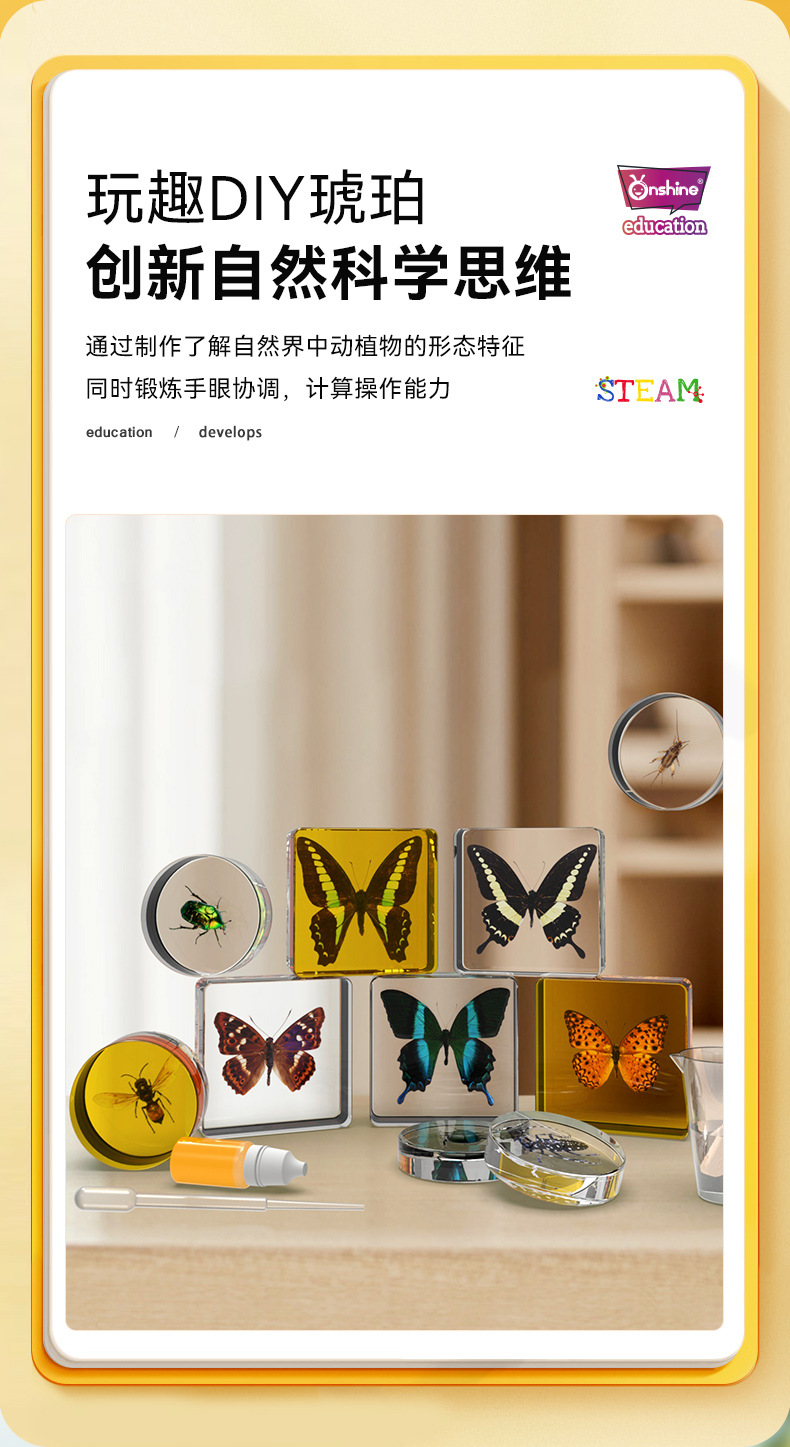 Onshine 진짜 식물 곤충 표본 수지 버그 호박색 나비 만들기 어린이 관찰 과학 장난감