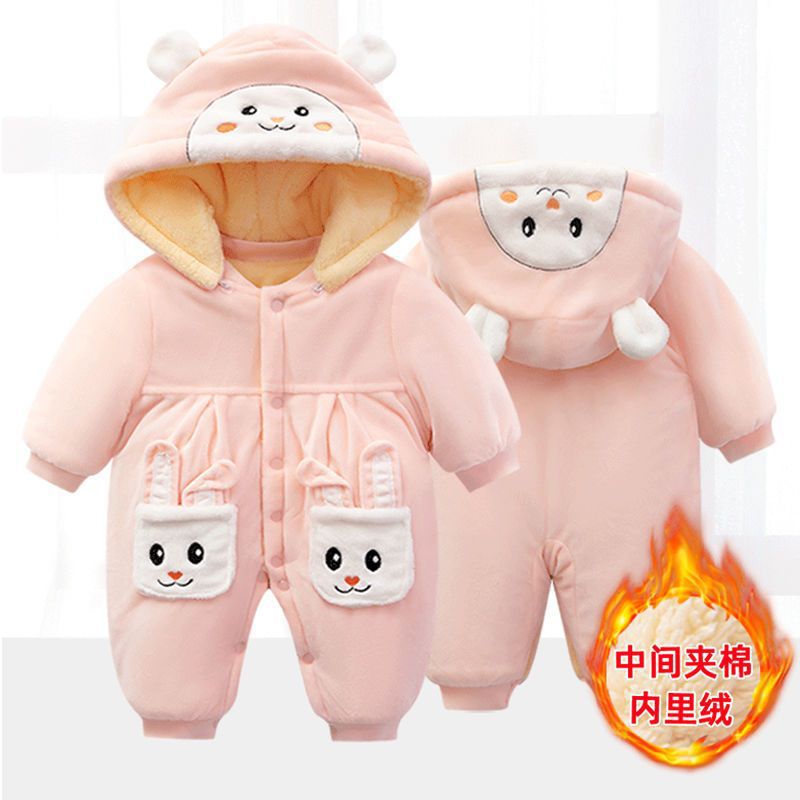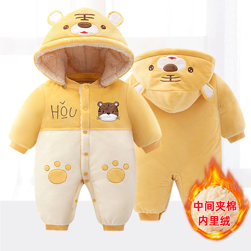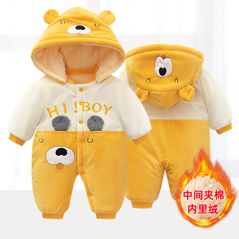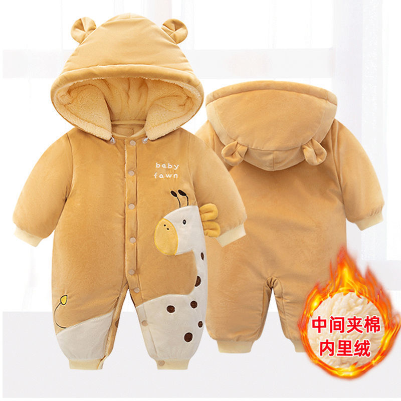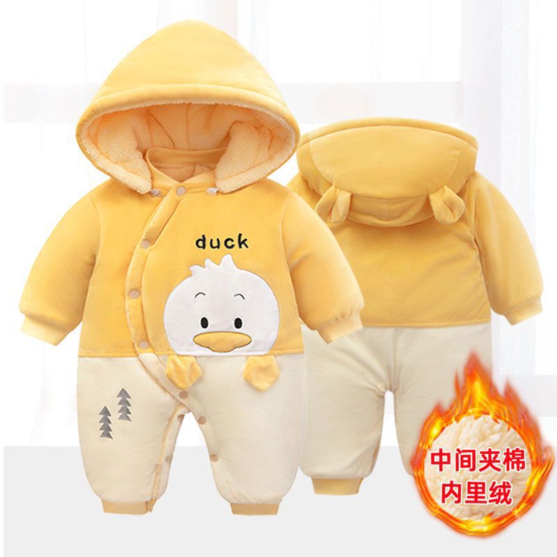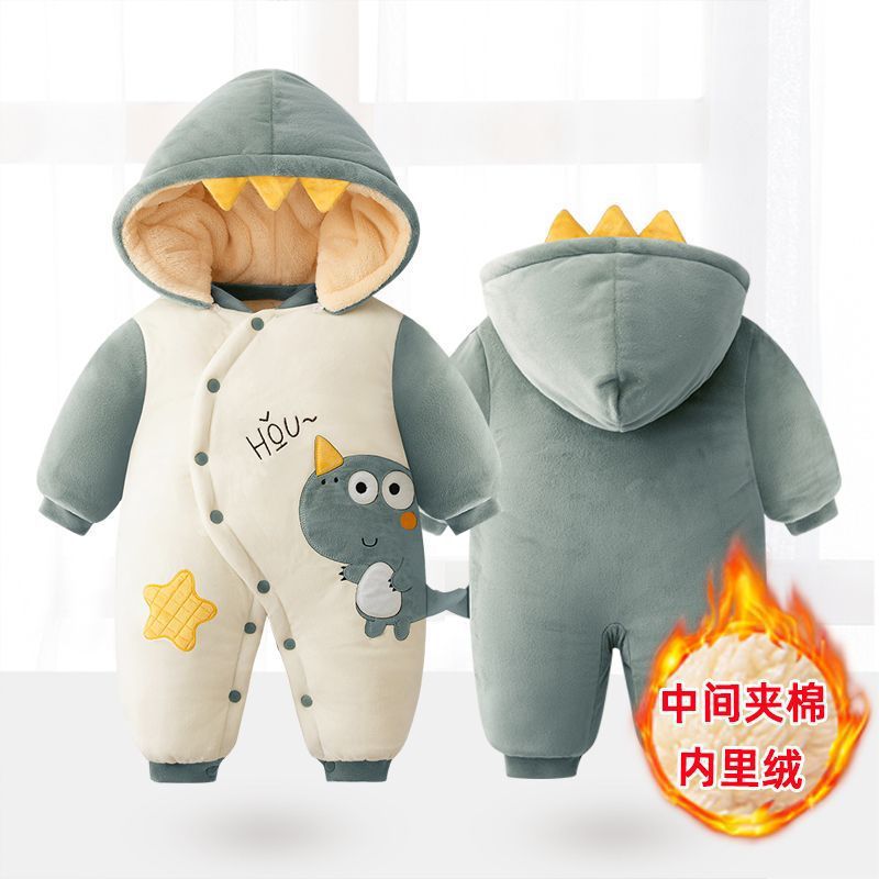 신생아의 점프 슈트 가을과 겨울 세트 두꺼운 면 아기의 Hayak 등반복 남성과 여성의 복장 기모 따뜻한스토어 가기
