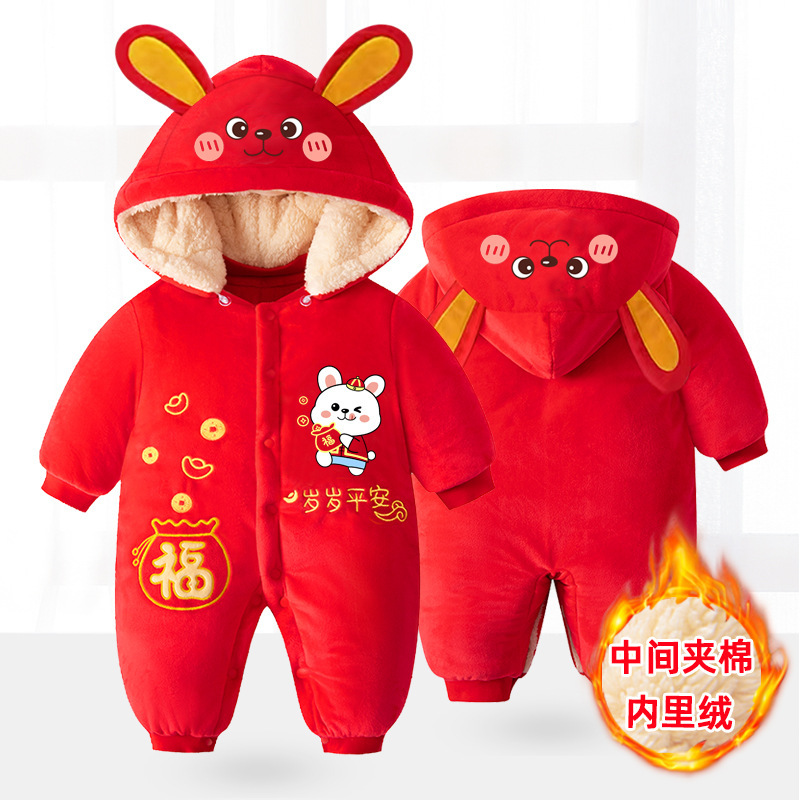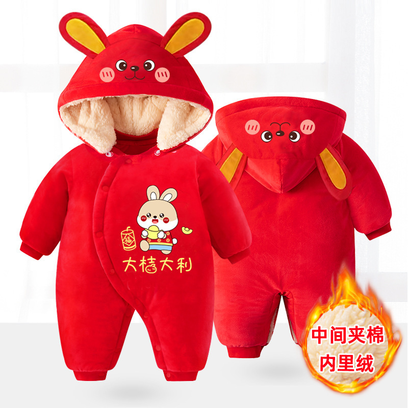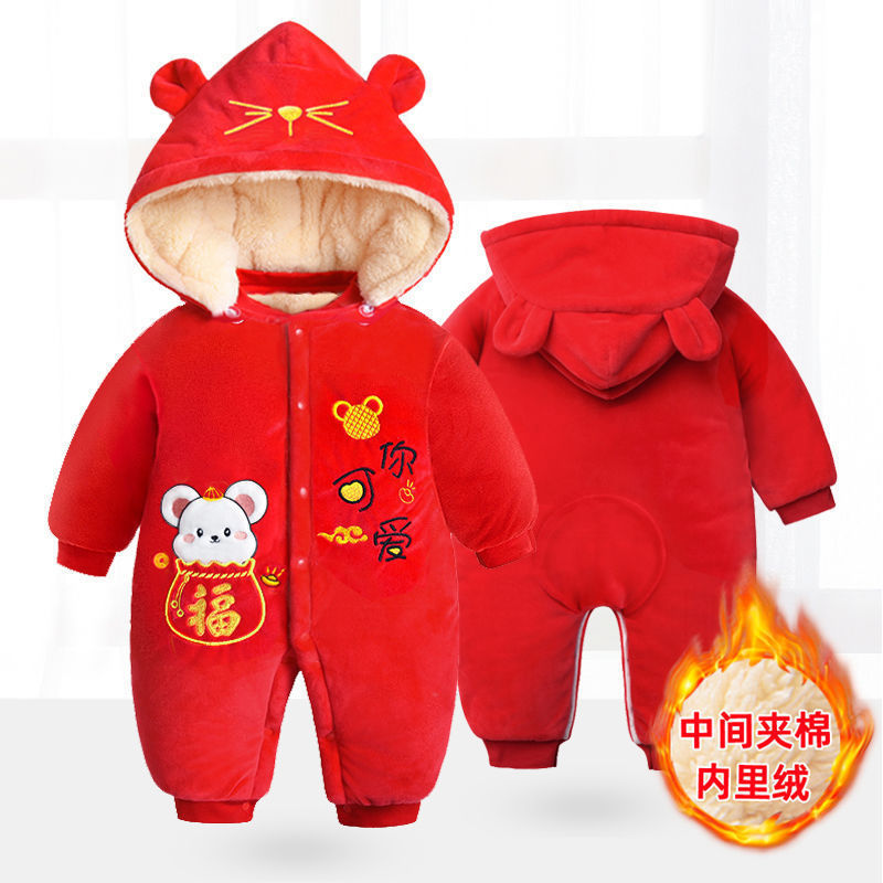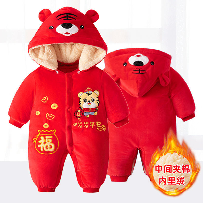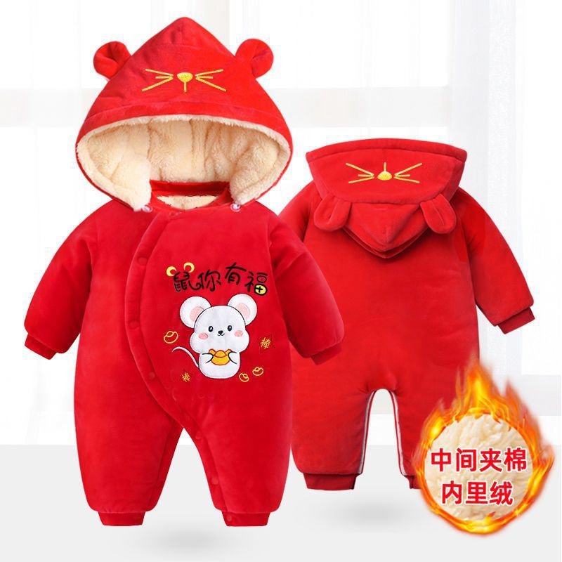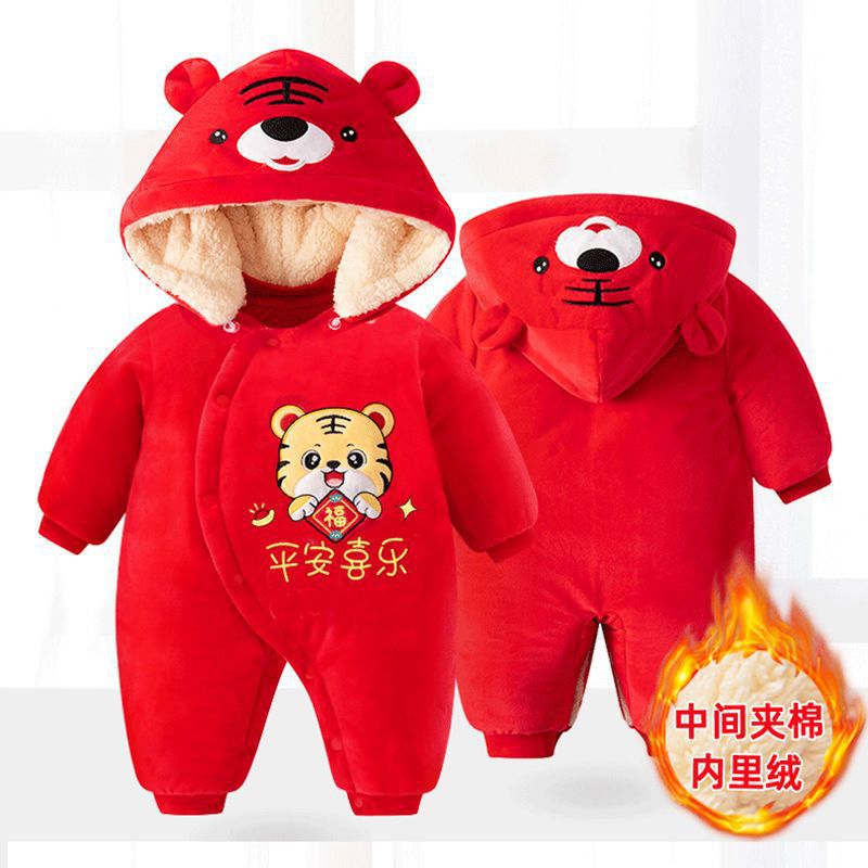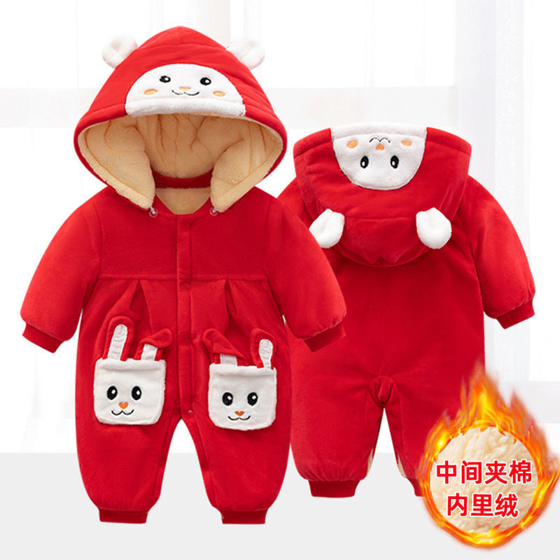 신생아의 점프 슈트 가을과 겨울 세트 두꺼운 면 아기의 Hayak 등반복 남성과 여성의 복장 기모 따뜻한스토어 가기