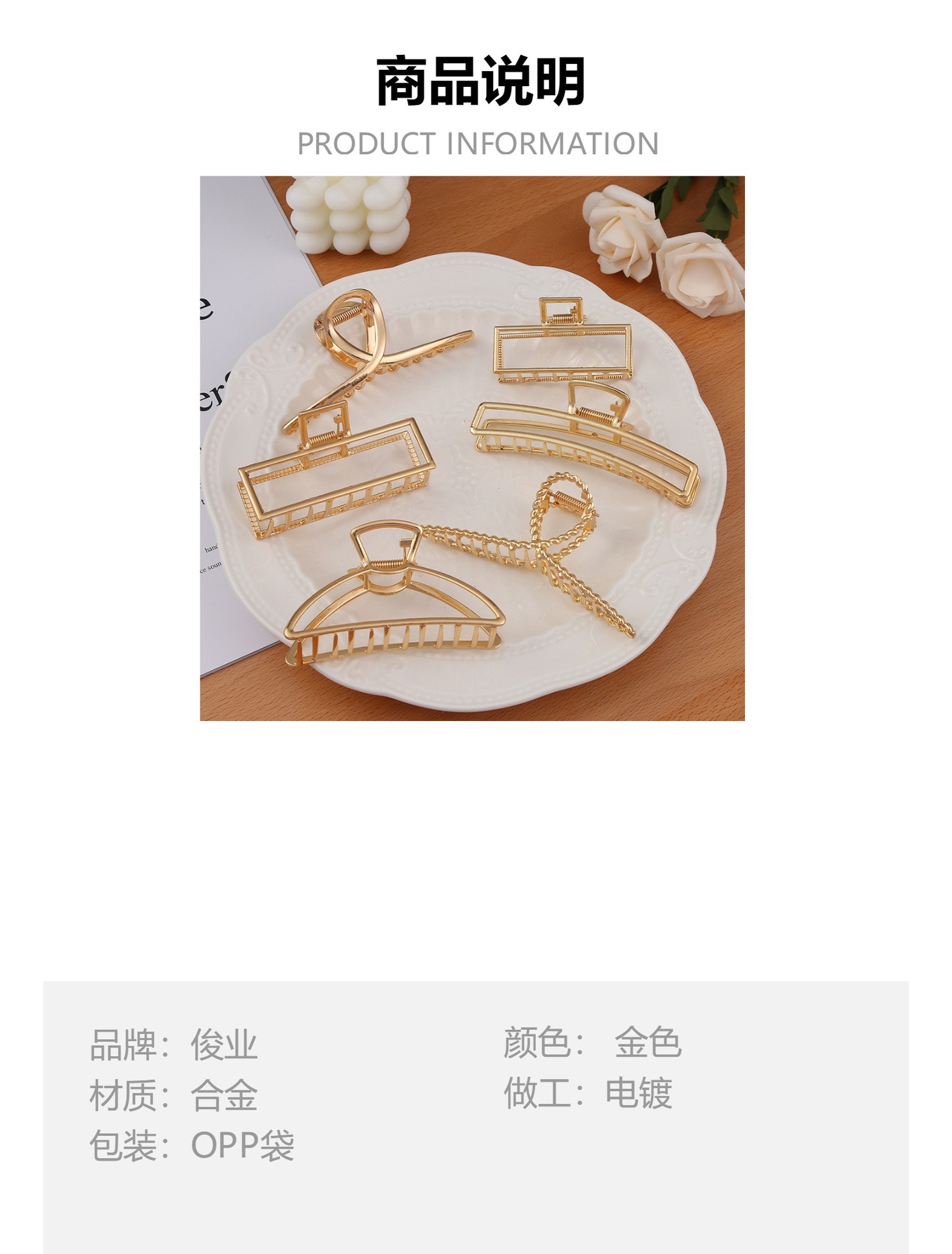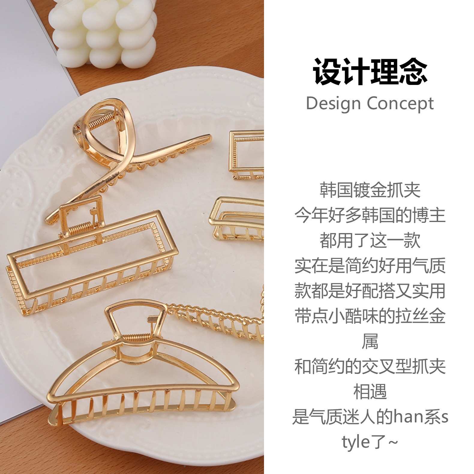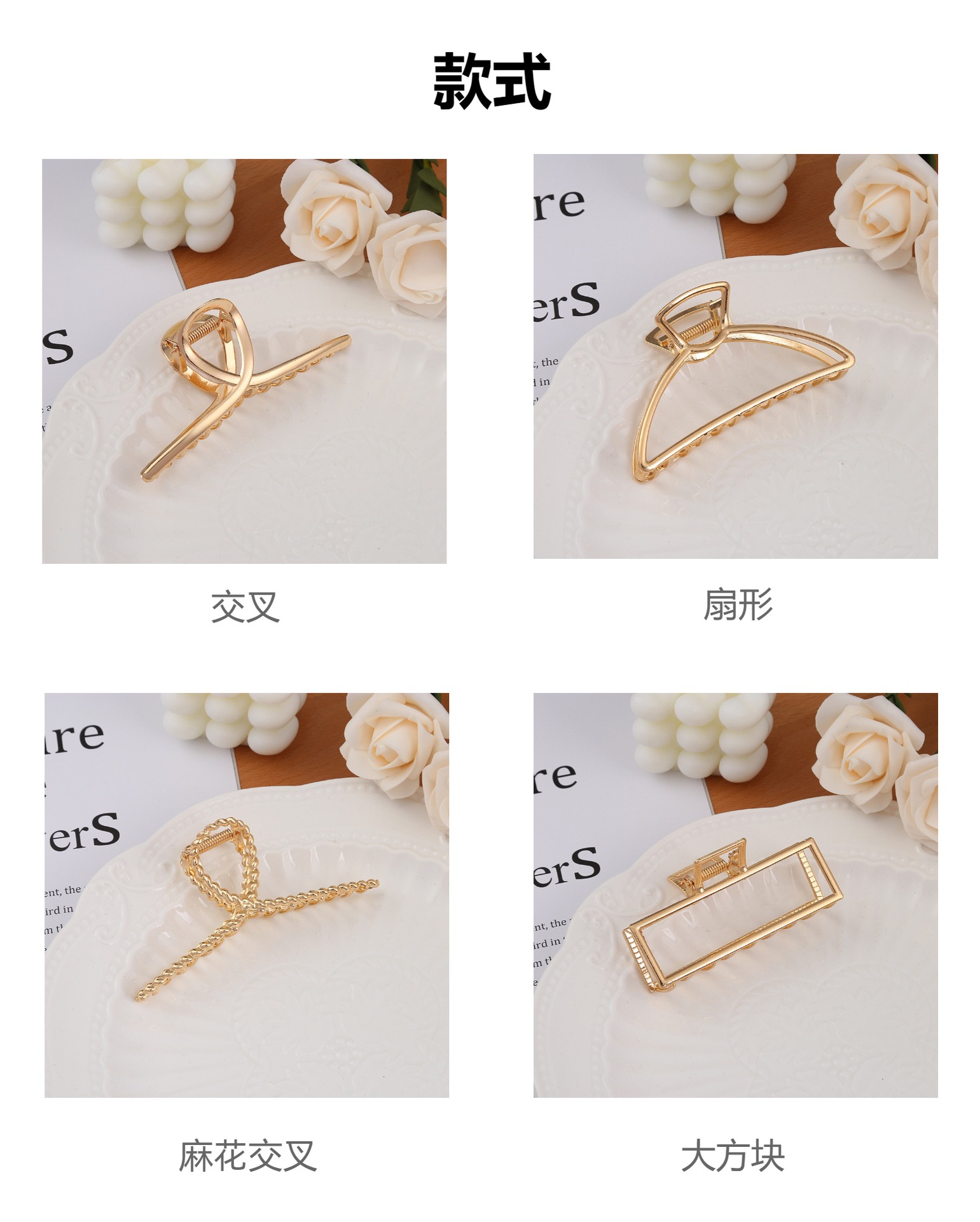 금속 대형 헤어 클립 여성용 한국 소녀 스타일 우아한 헤어핀 뒷머리 헤어핀 머리 장식 기하학적 요소