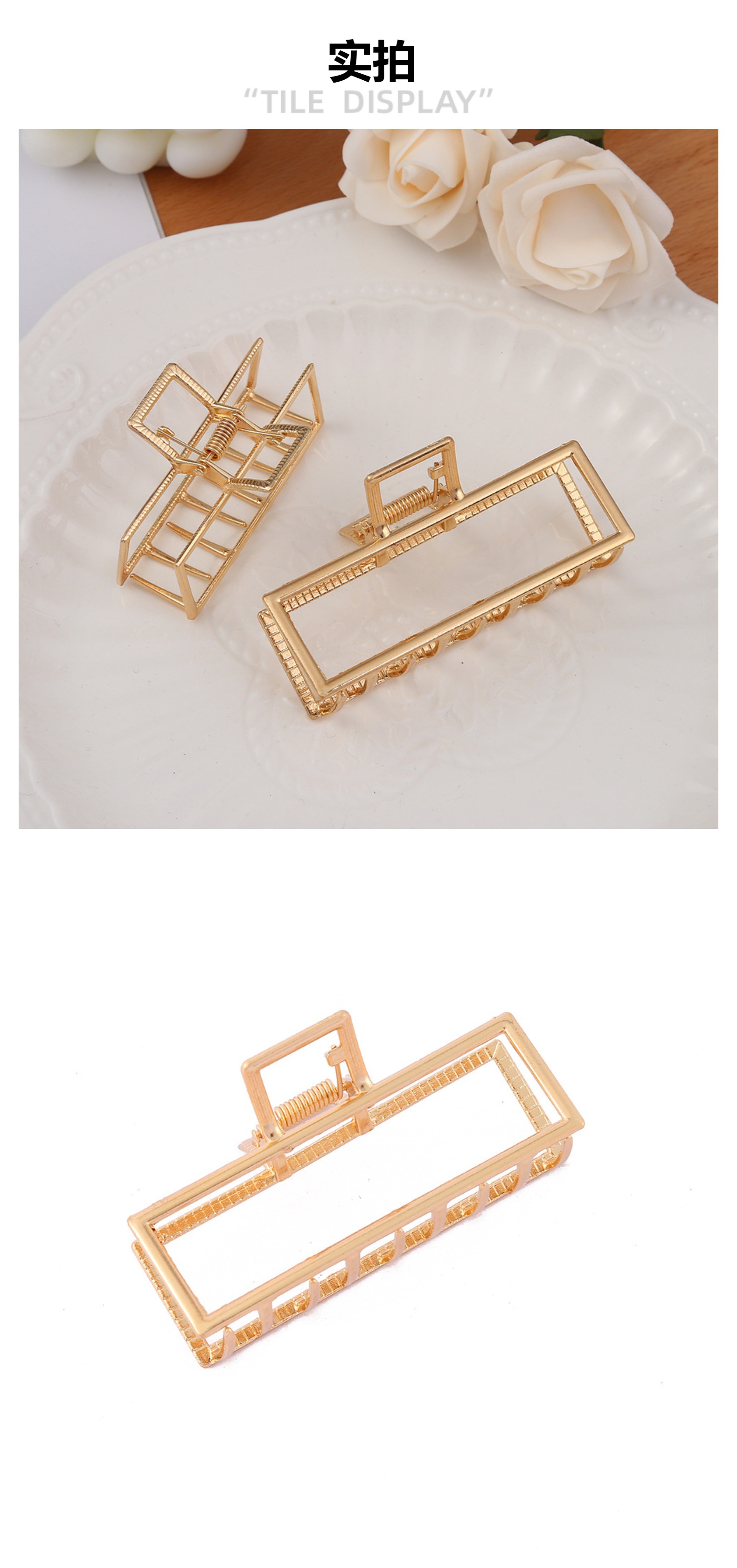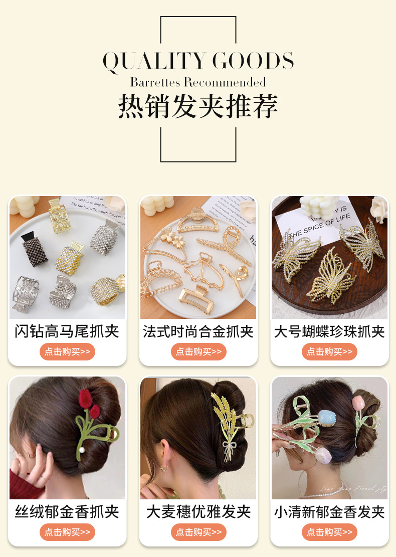 금속 대형 헤어 클립 여성용 한국 소녀 스타일 우아한 헤어핀 뒷머리 헤어핀 머리 장식 기하학적 요소스토어 가기