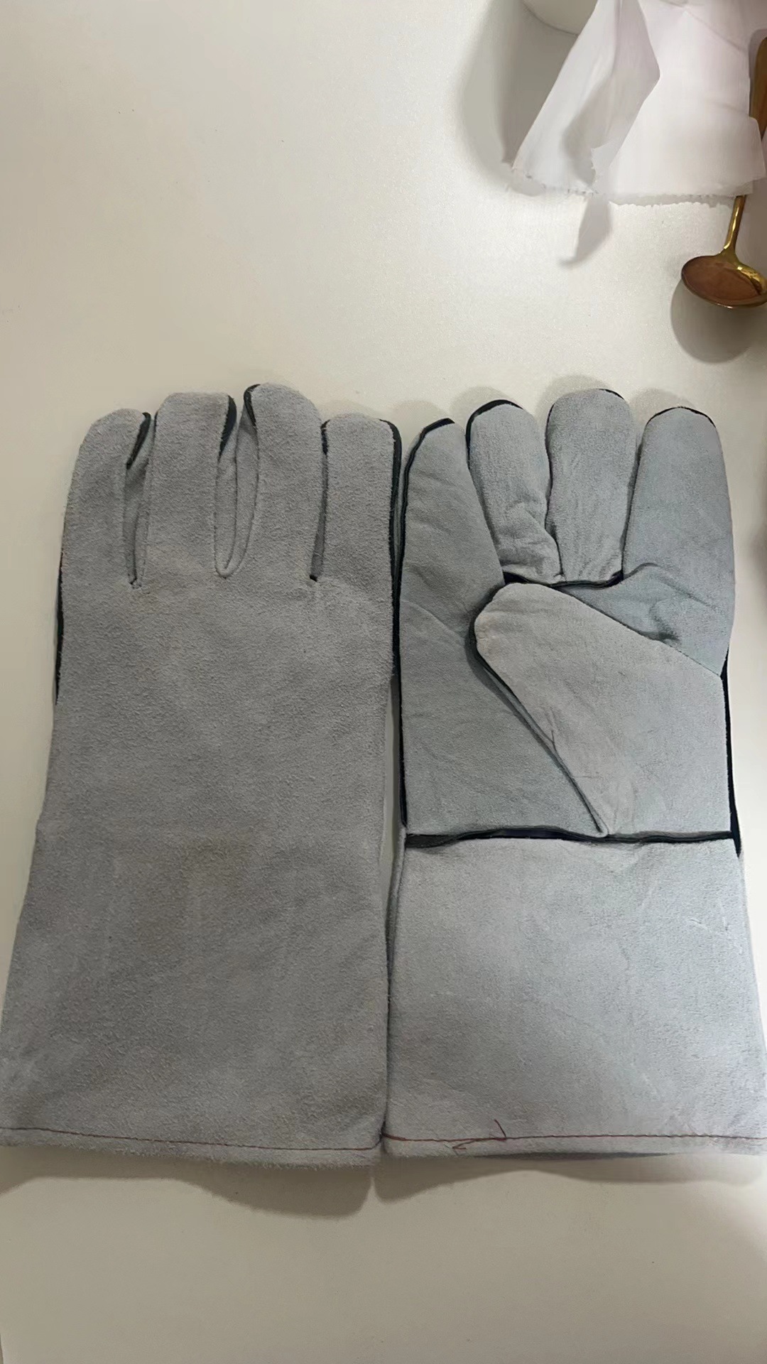 도매 내화 와이어 전기 용접 소 가죽 장갑 33cm 긴 두 배 층 고온 저항 단열 용접 용접 노동 보호 장갑