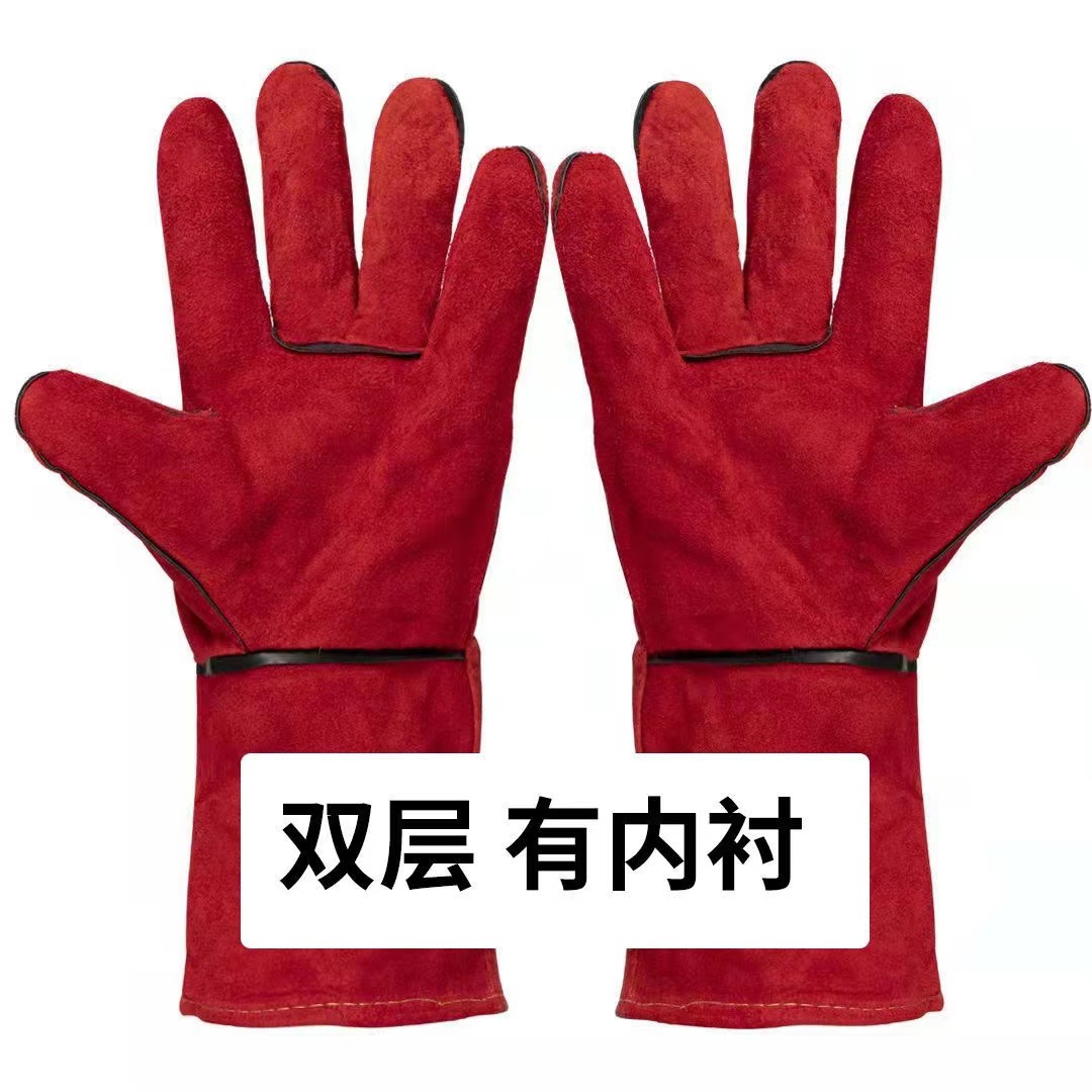도매 내화 와이어 전기 용접 소 가죽 장갑 33cm 긴 두 배 층 고온 저항 단열 용접 용접 노동 보호 장갑스토어 가기