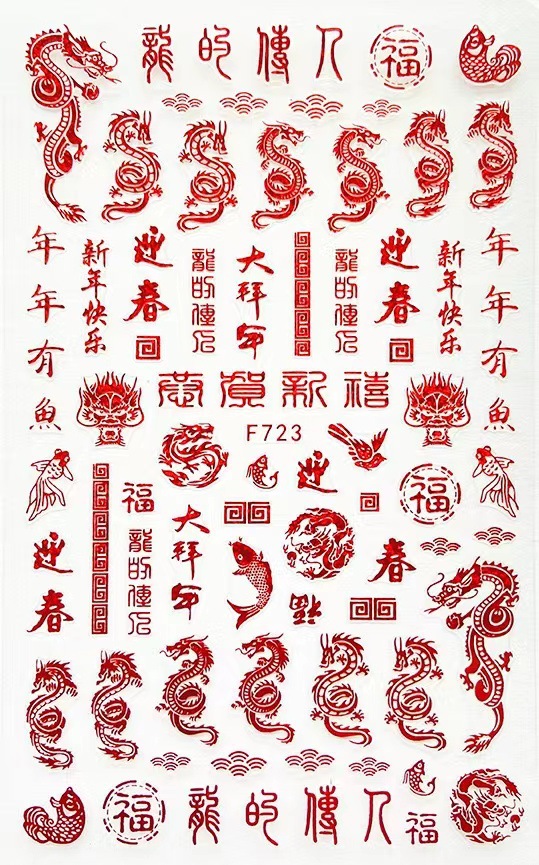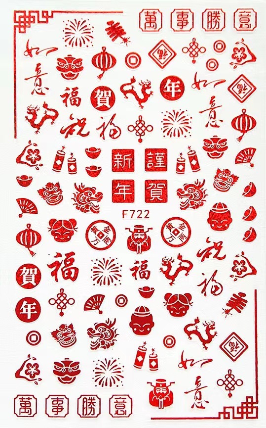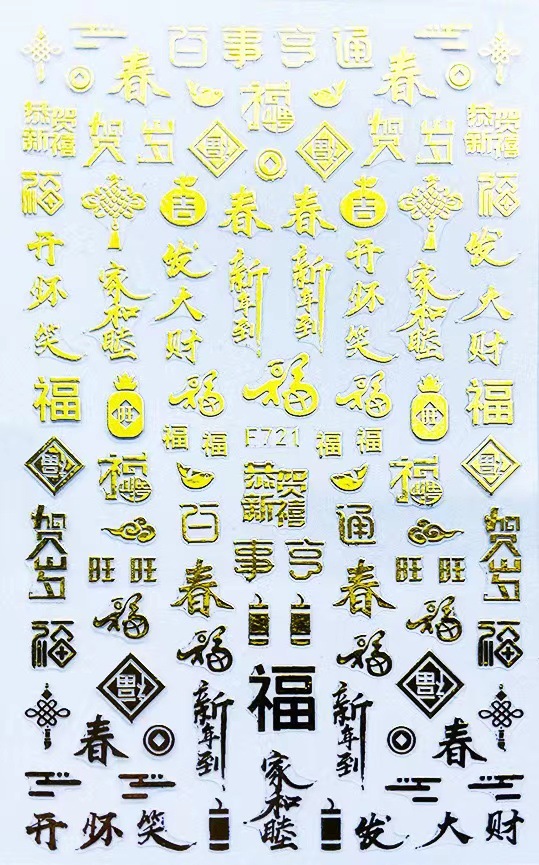 국경 간 소스 네일 아트 스티커 새 해 골드 레드 3 색 길조 년 F720-723 접착제 포장과 함께 제공