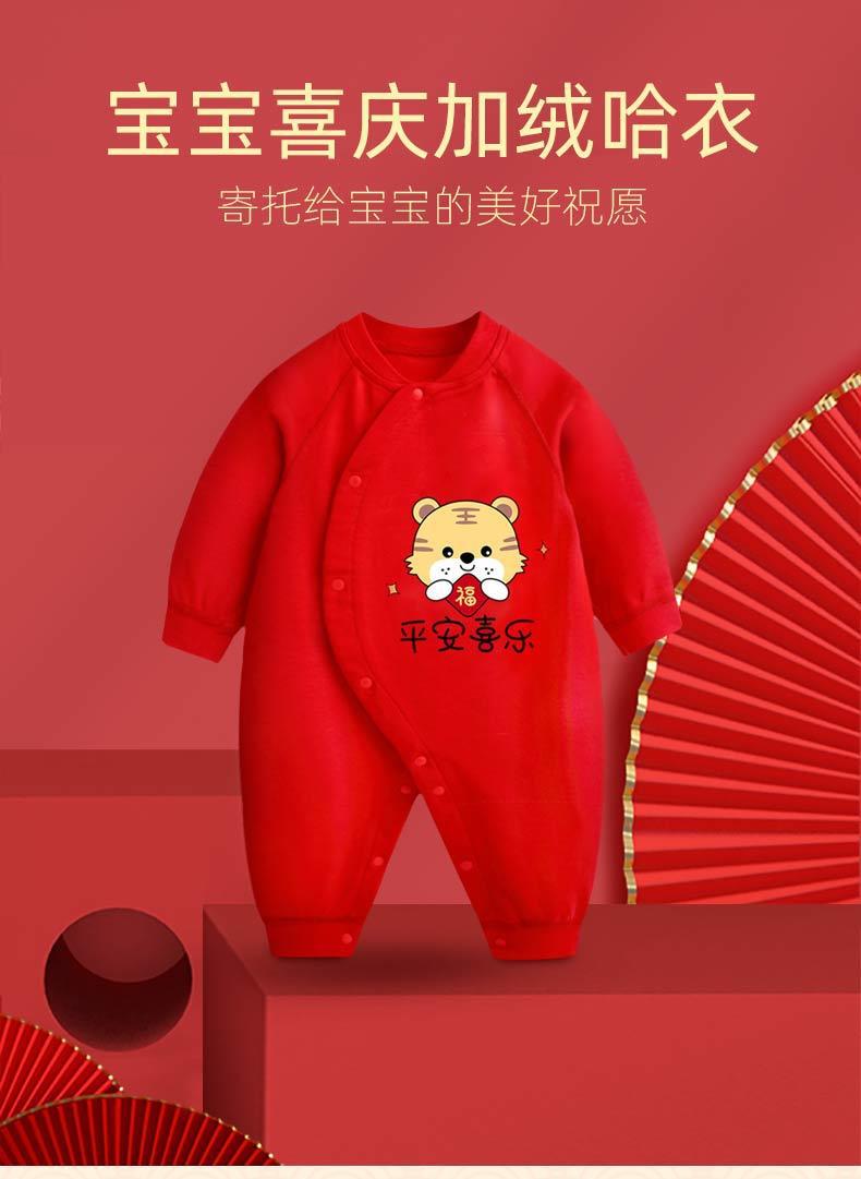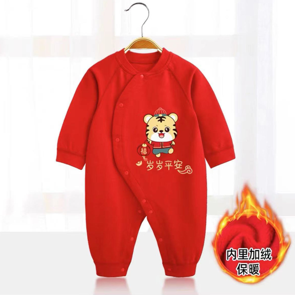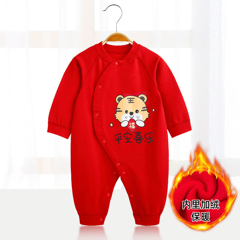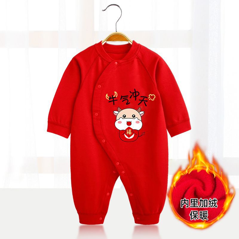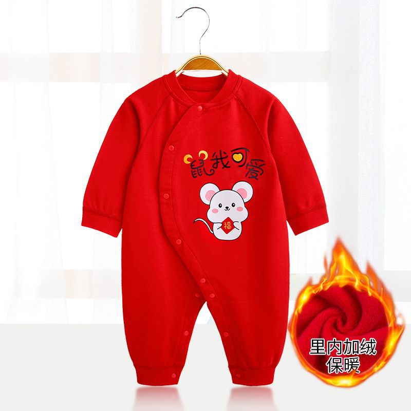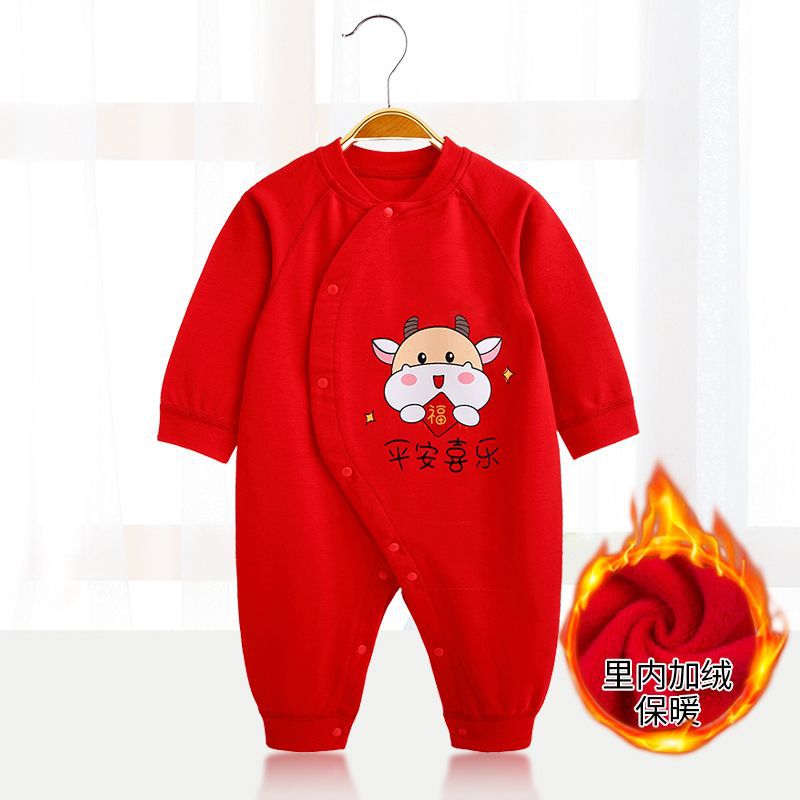 신생아 아기 기모 점프 슈트 아기 따뜻한 축제 빨간 옷 가을과 겨울 보름달 의류 새해 등산 의류스토어 가기
