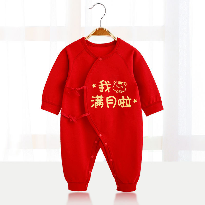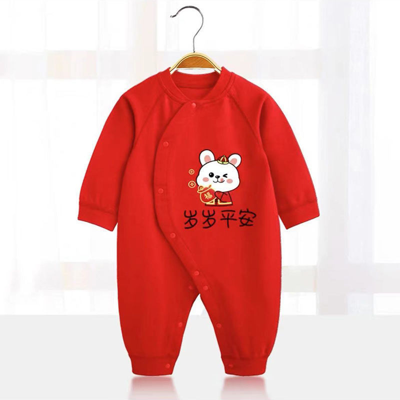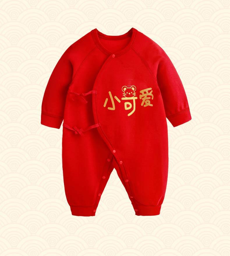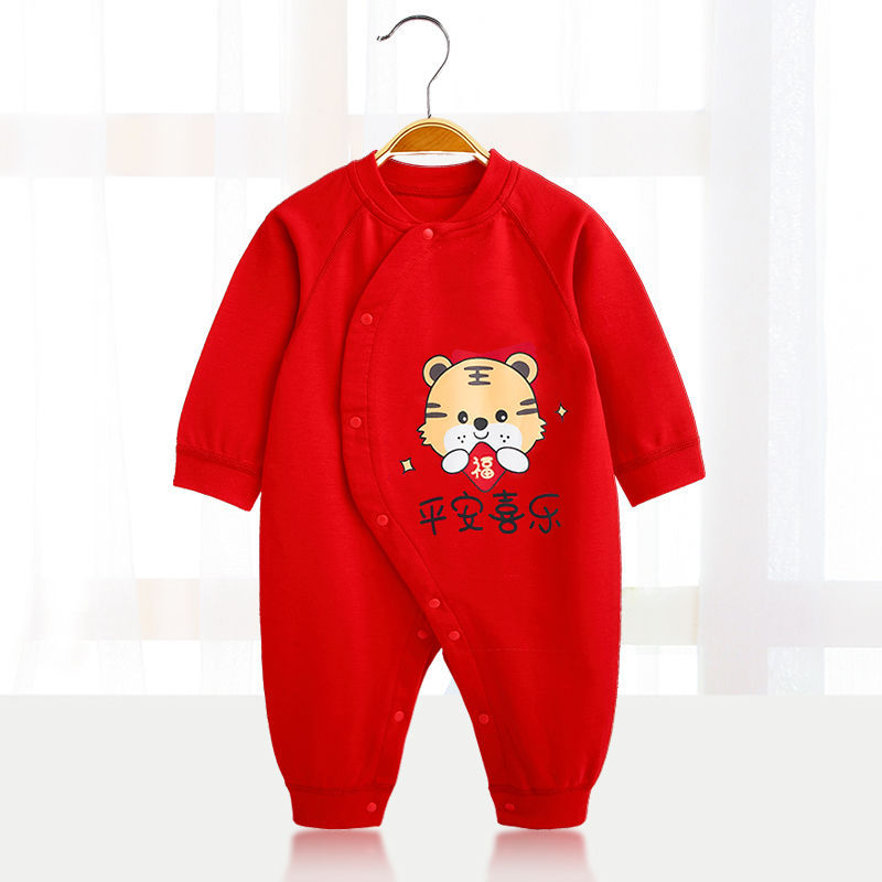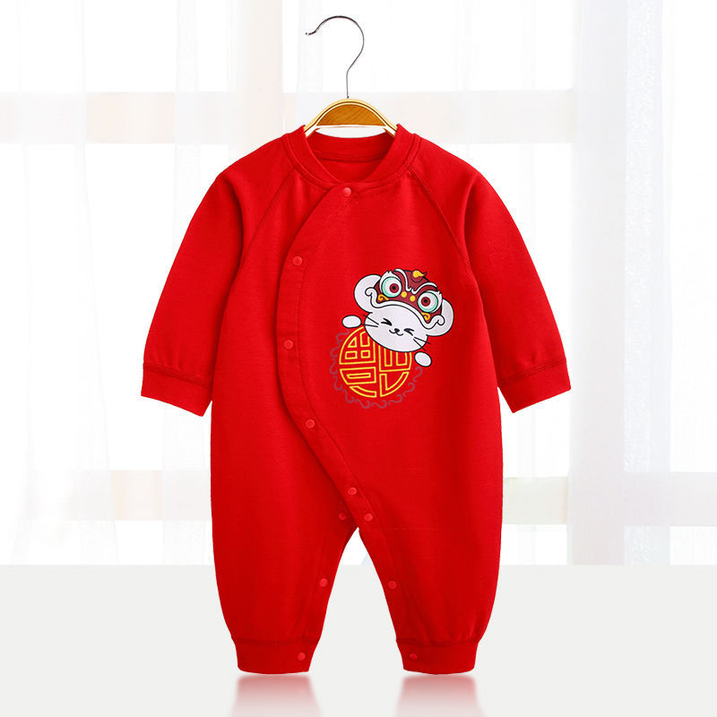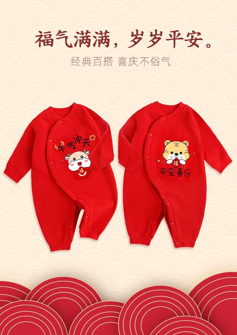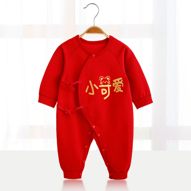 신생아 아기 기모 점프 슈트 아기 따뜻한 축제 빨간 옷 가을과 겨울 보름달 의류 새해 등산 의류스토어 가기