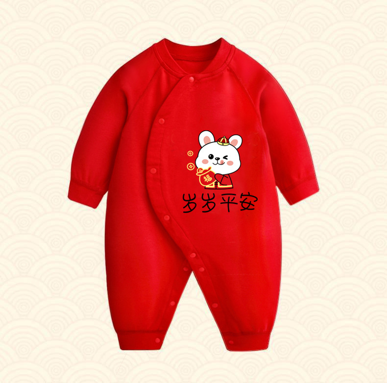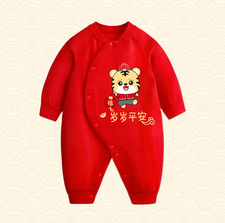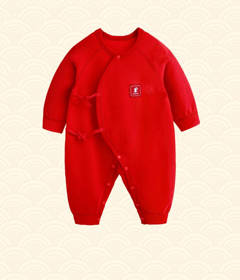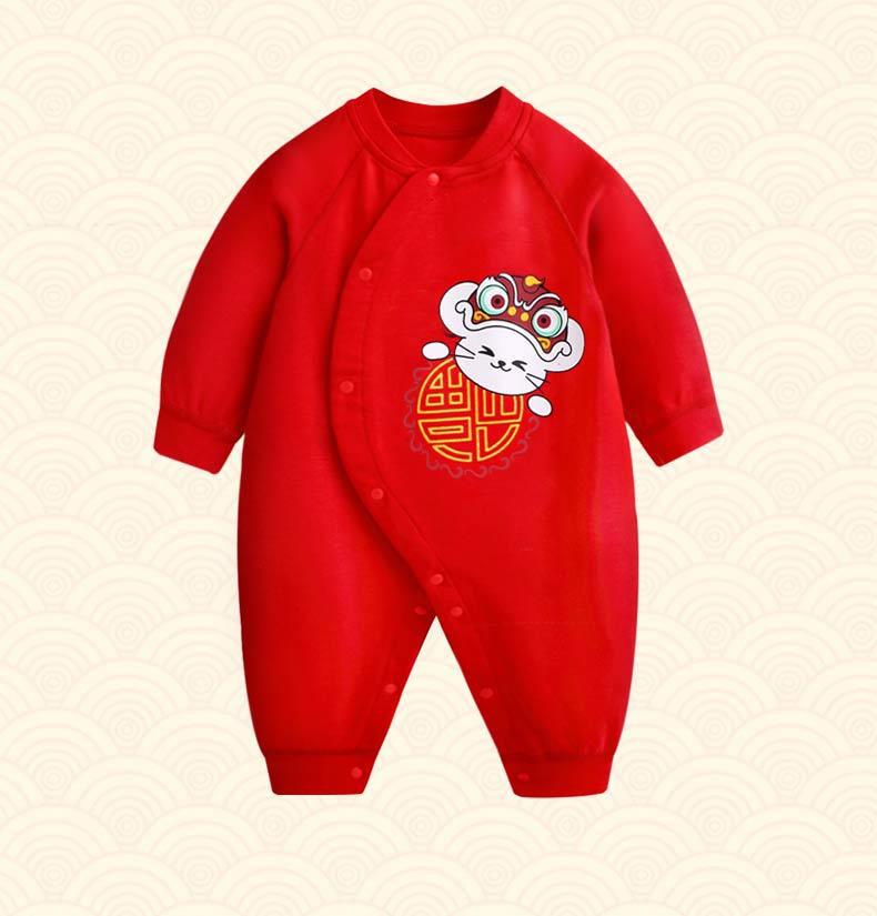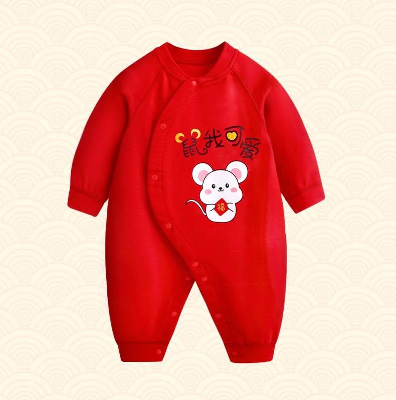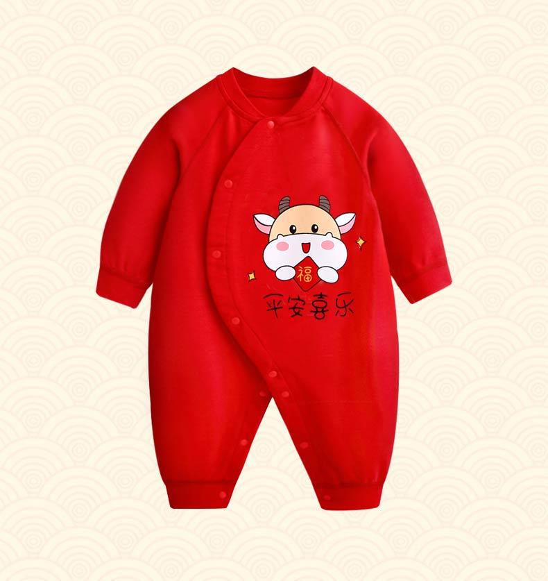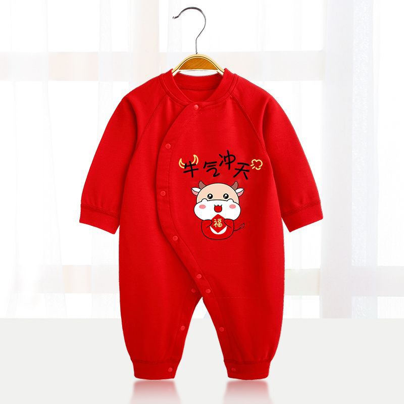 신생아 아기 기모 점프 슈트 아기 따뜻한 축제 빨간 옷 가을과 겨울 보름달 의류 새해 등산 의류스토어 가기