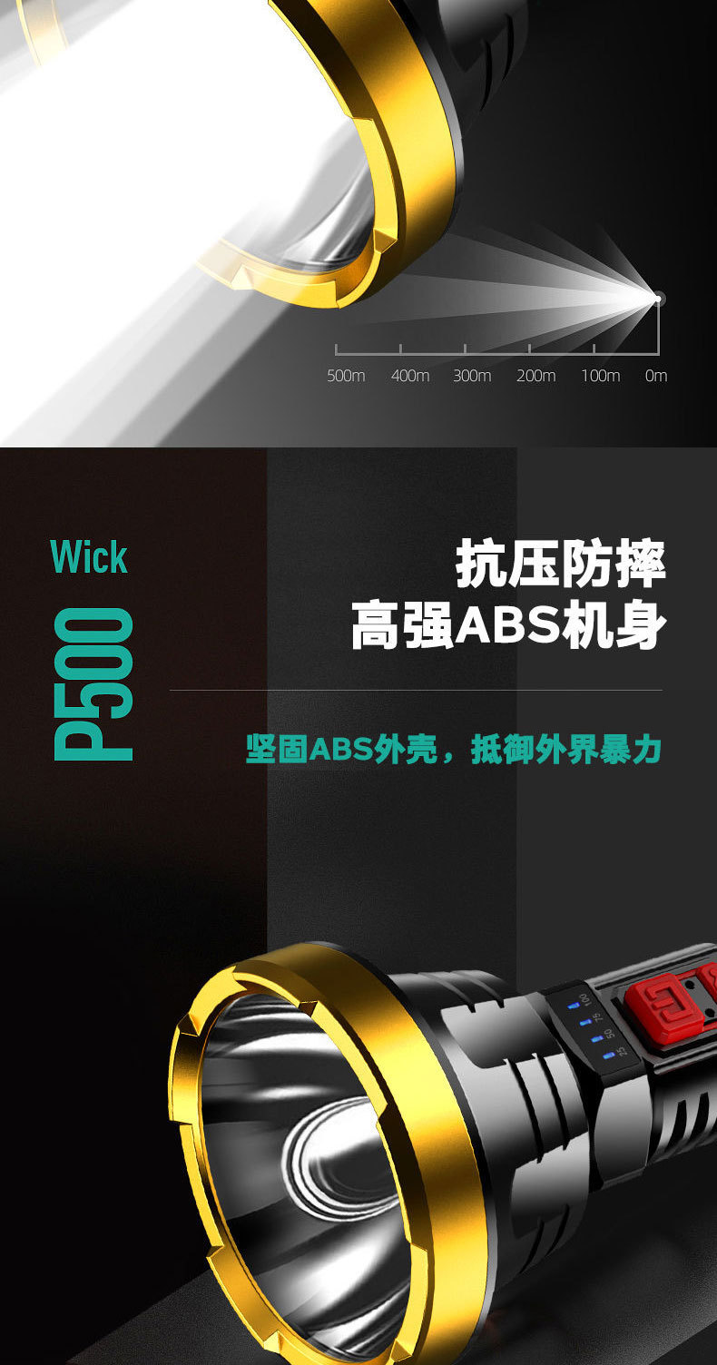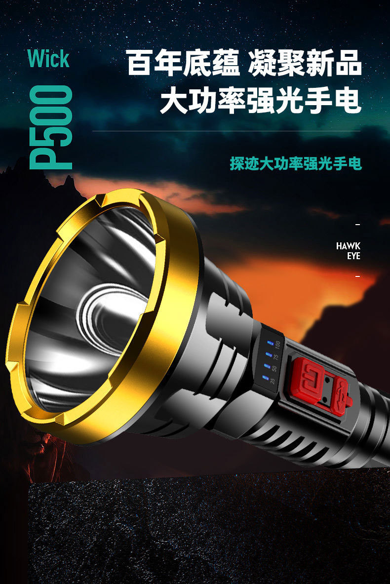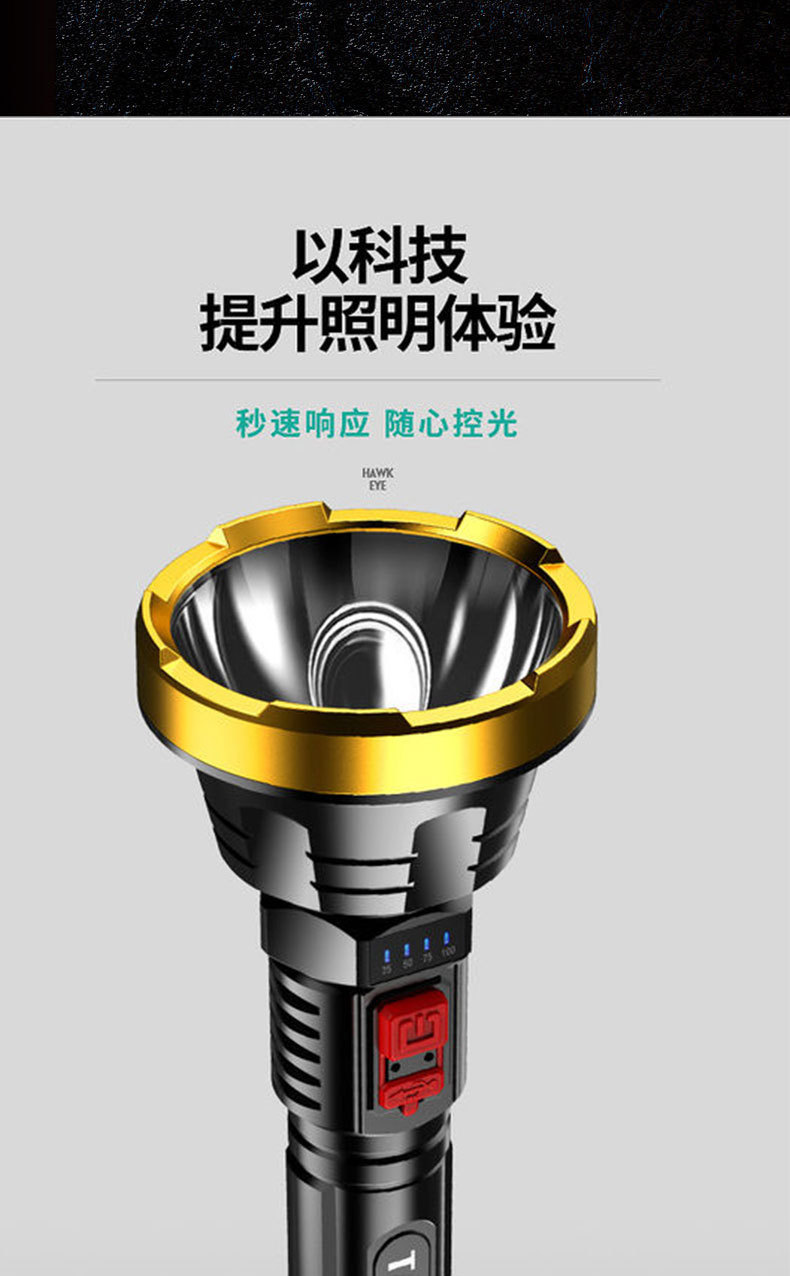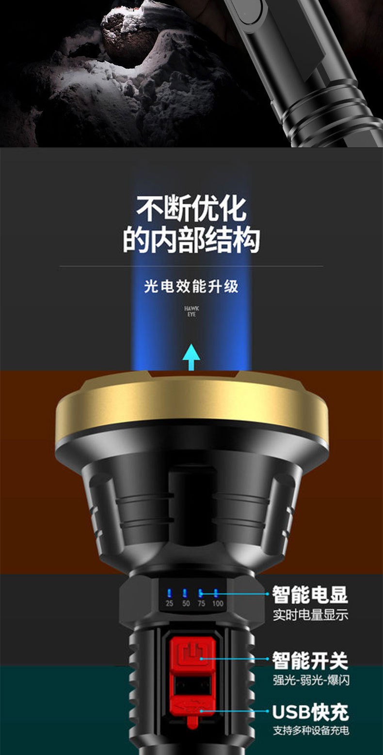 강력한 조명과 긴 배터리 수명을 갖춘 국경 간 LED 손전등, 야외 충전식 휴대용 가정용 작업등, 도매, 국경 간 인기 판매스토어 가기