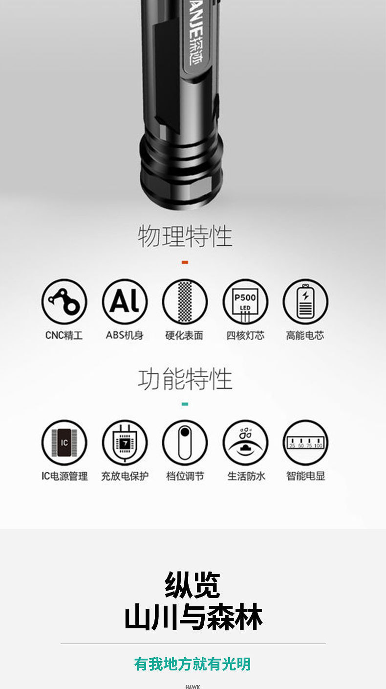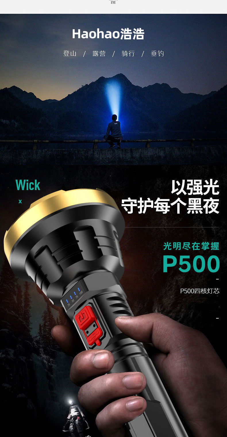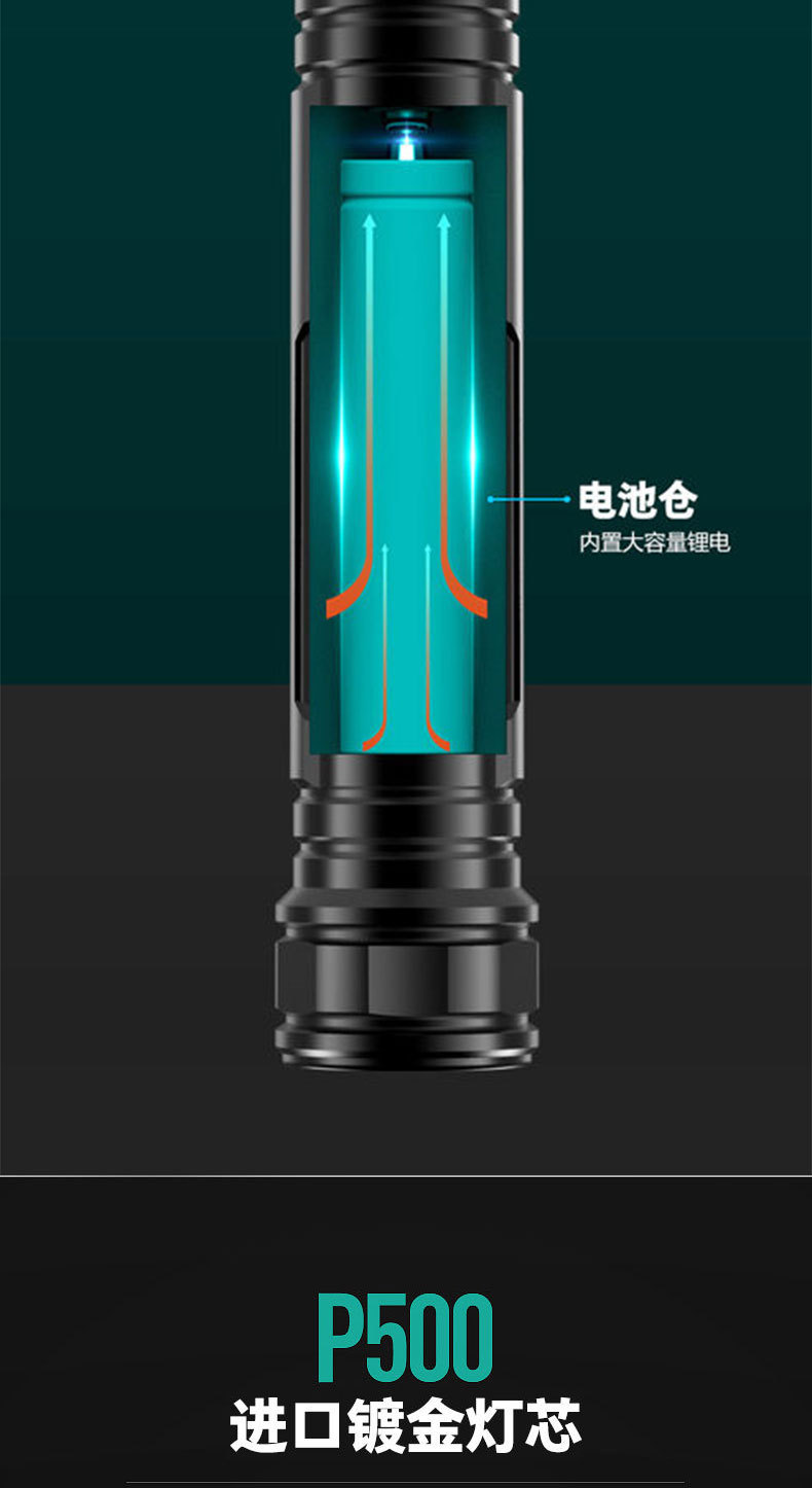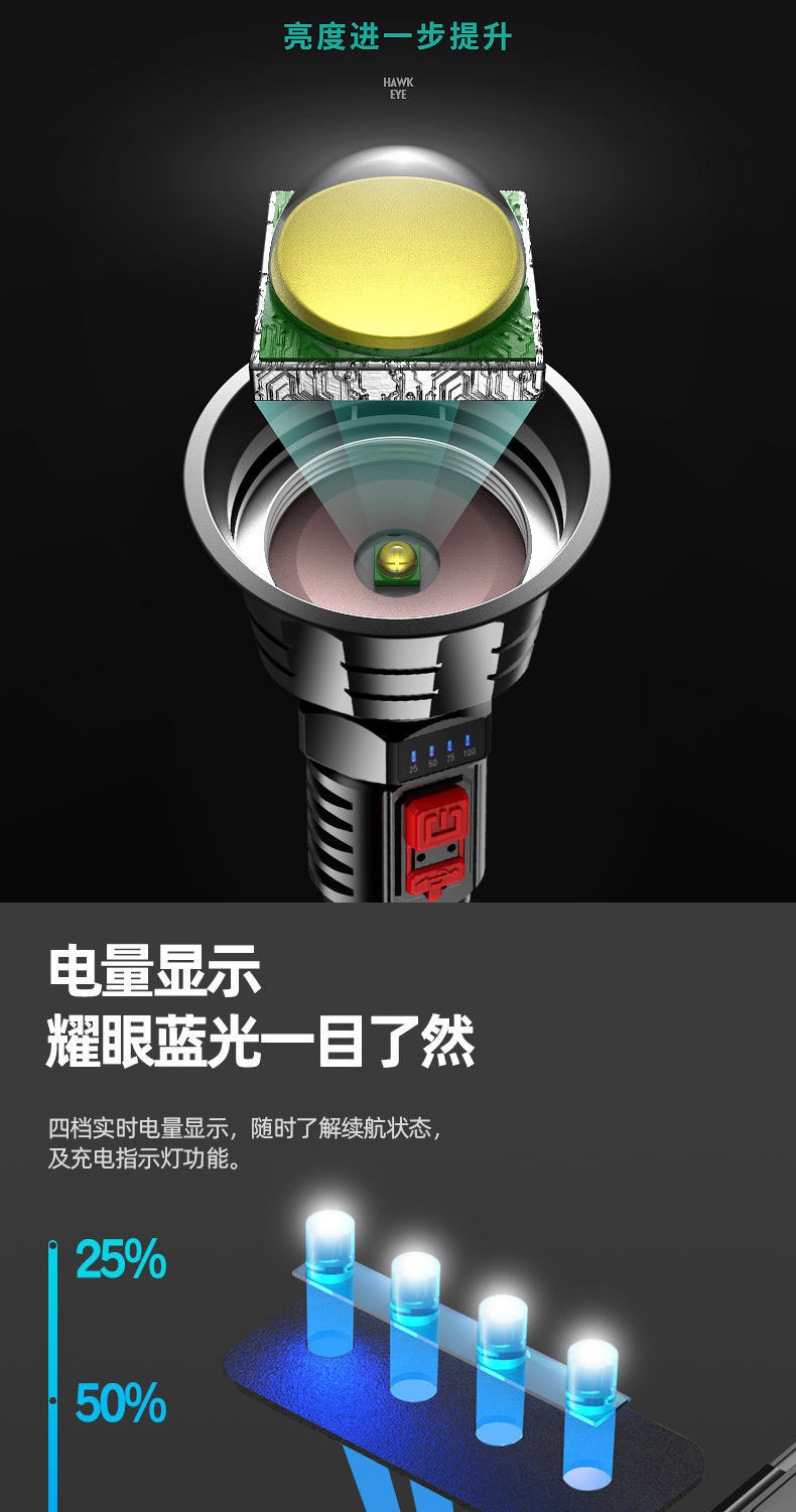 강력한 조명과 긴 배터리 수명을 갖춘 국경 간 LED 손전등, 야외 충전식 휴대용 가정용 작업등, 도매, 국경 간 인기 판매스토어 가기