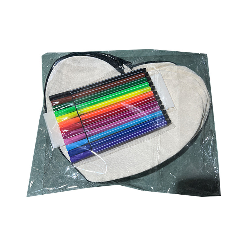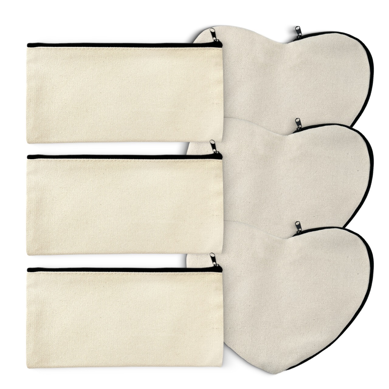 하트 모양의 빈 DIY 낙서 연필 케이스 지퍼 수제 가방 면화 가방 캔버스 가방 문구 보관 메이크업 세탁 가방